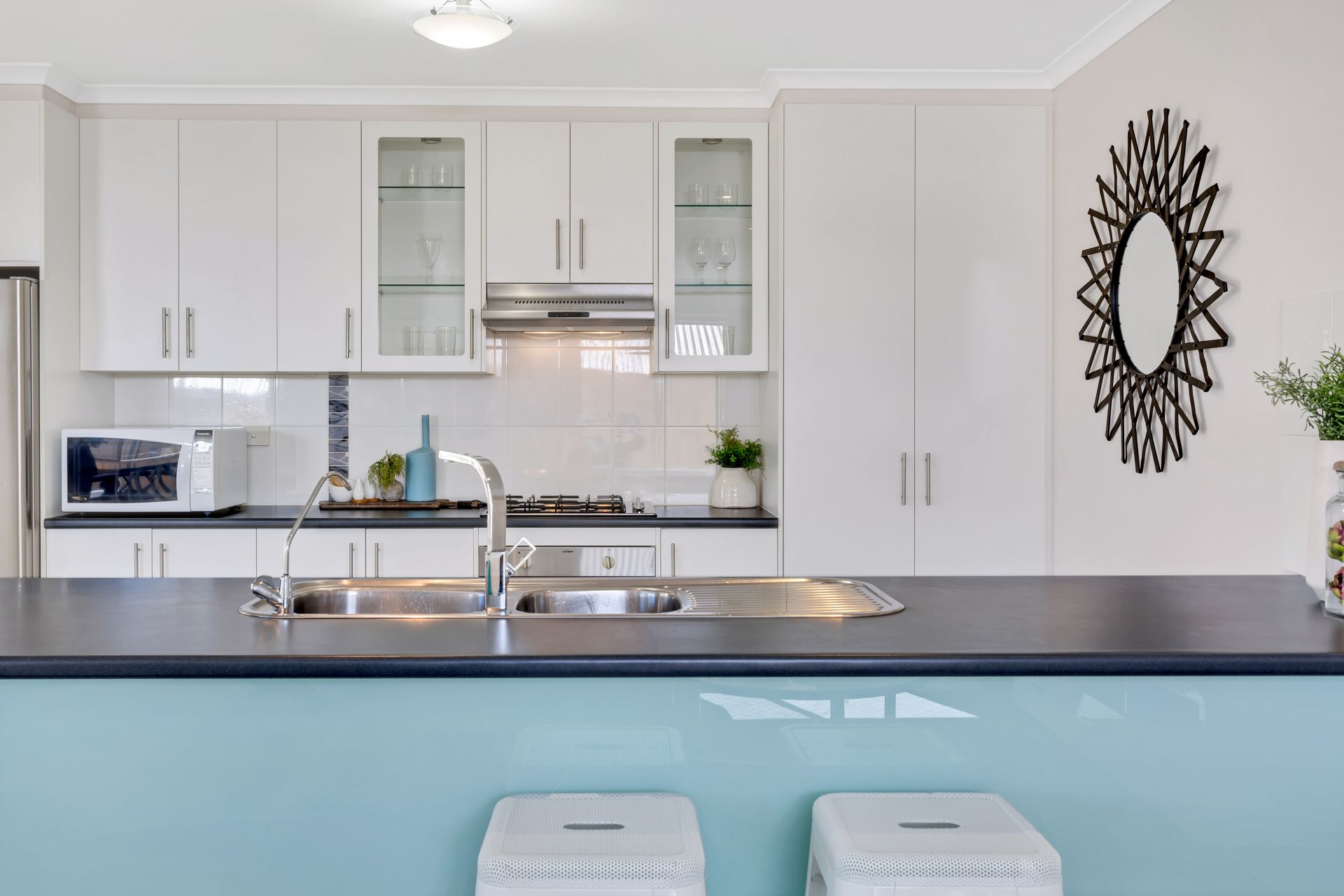 Moving through to the stunning open plan kitchen, living and dining area, with windows on every wall and serviced by a split system air conditioner. The large kitchen boasts an island bench and quality stainless steel appliances including Bosch dishwasher, with ample cupboard and bench space which is sure to excite the chef of the home.