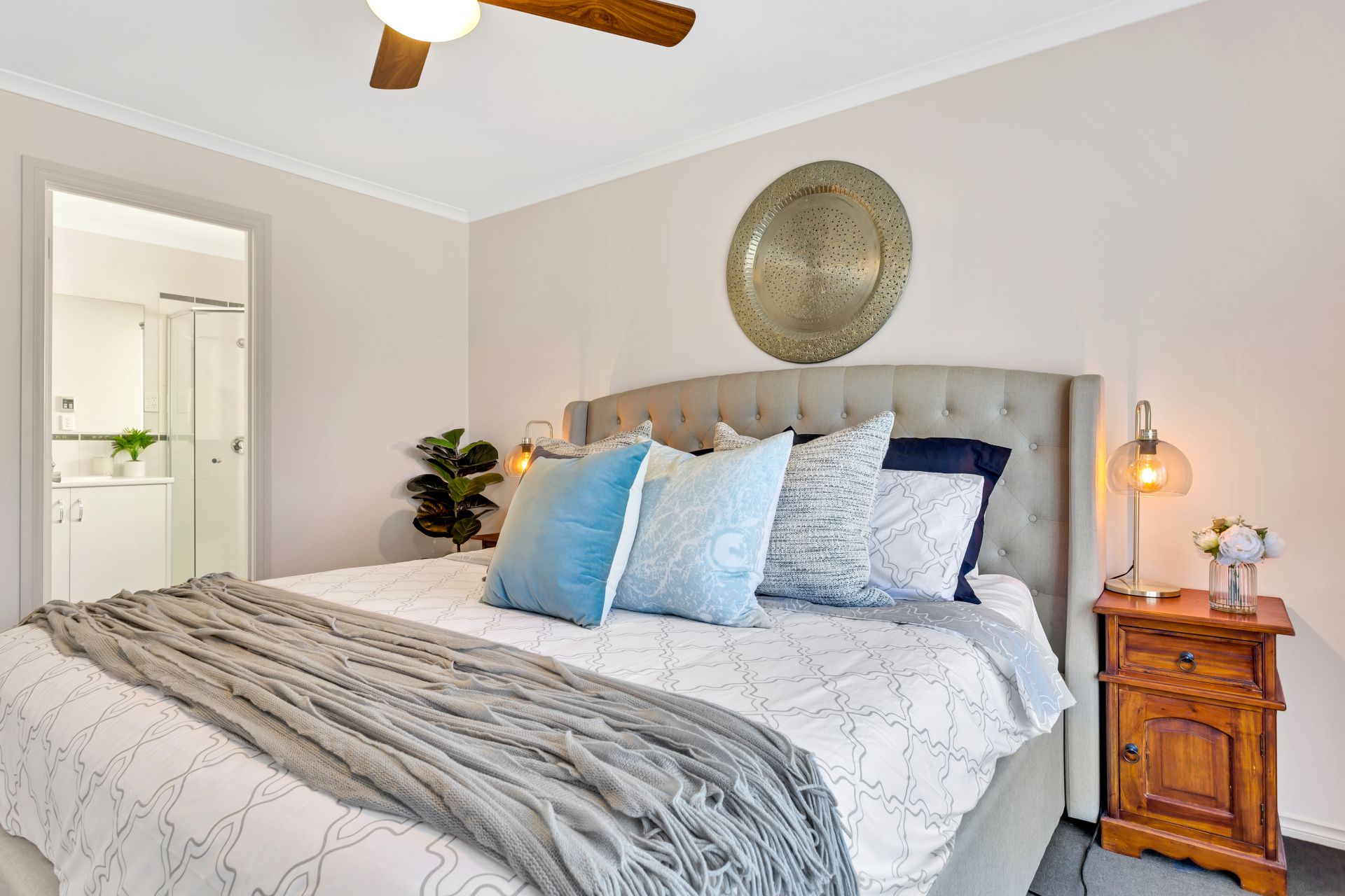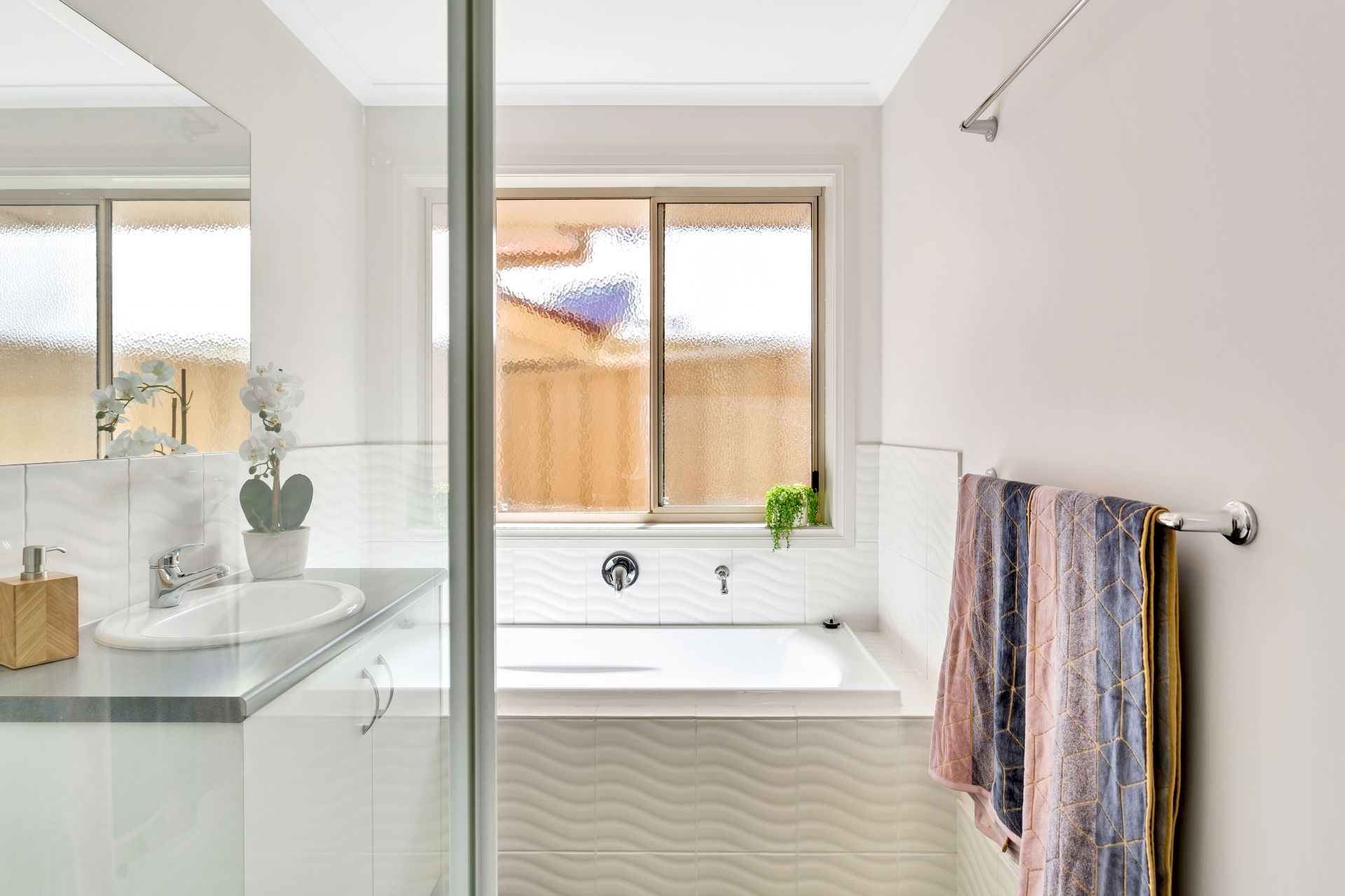 Down the hallway the natural light floods through the walk-through laundry which is opposite the stunning main bathroom with immaculate tiling work. Bedroom two is a great size, complete with built in mirrored wardrobe, ceiling fan and electric roller shutters on the window. Bedroom 3 is also of generous size with a large window overlooking a private courtyard area.