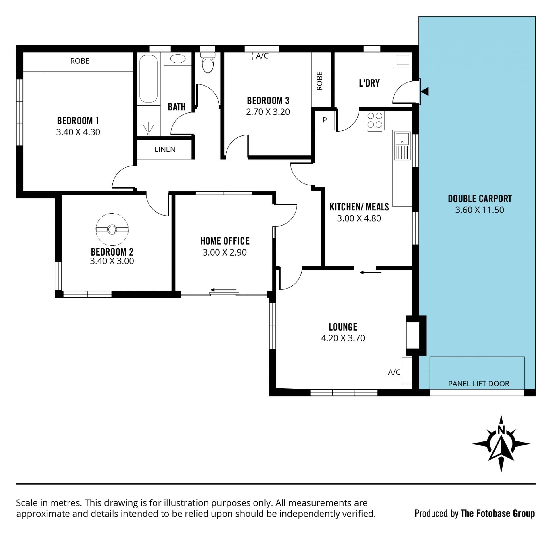 - Electric roller door parks two cars undercover