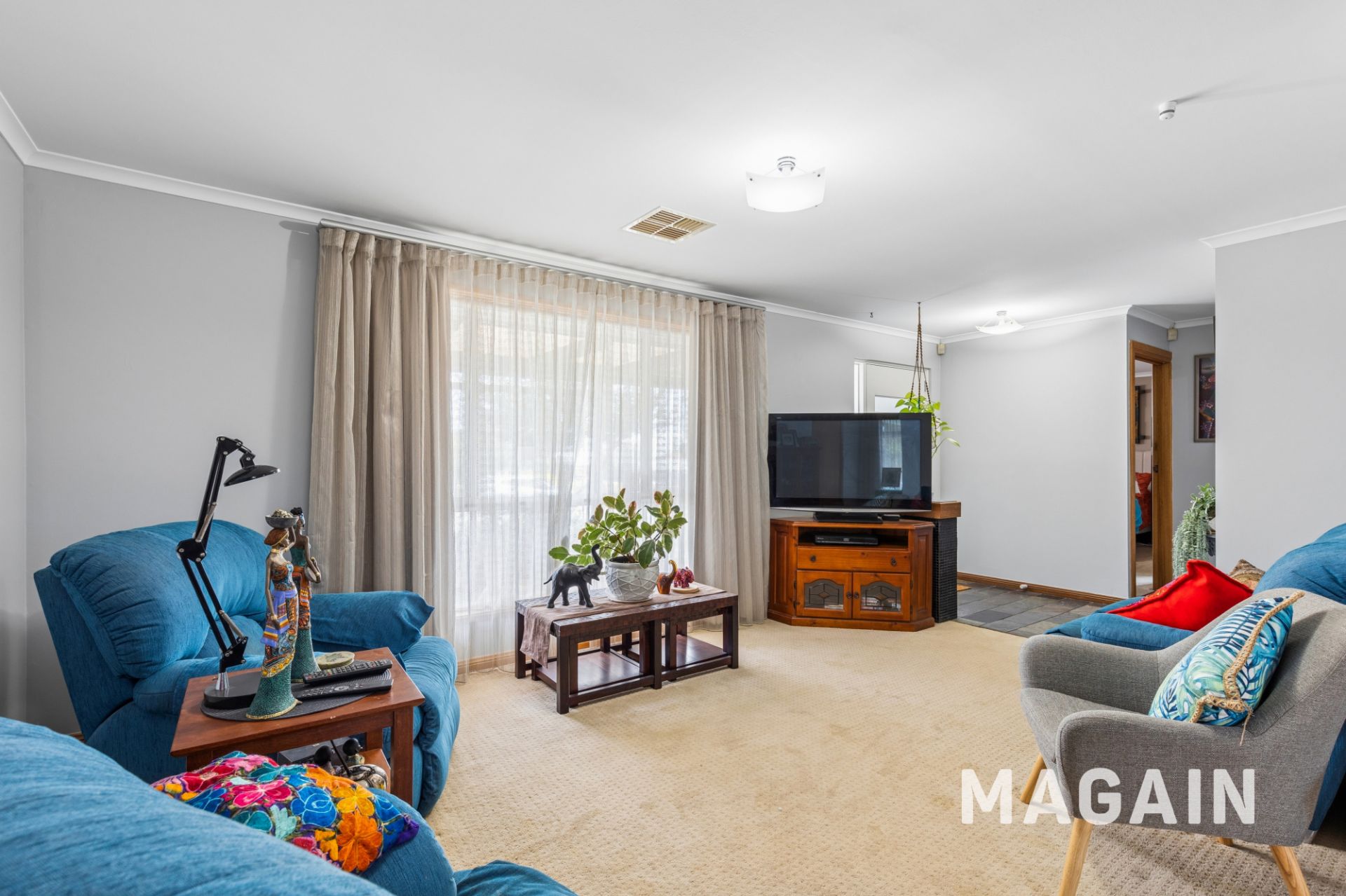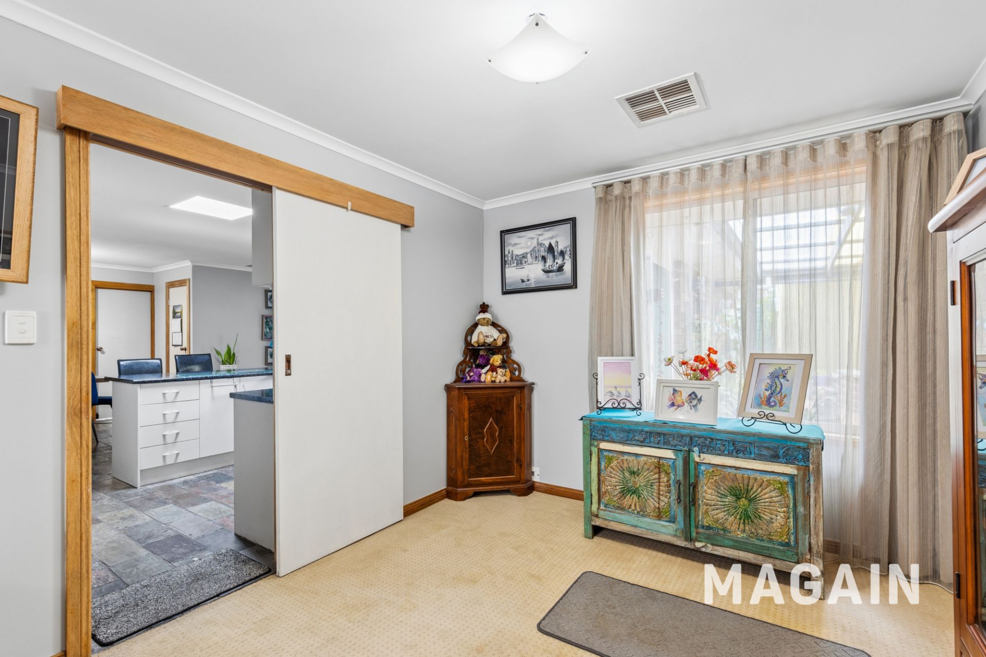 Step inside to a bright, front-facing family room bathed in natural light from expansive picture windows. The neutral flooring provides a versatile foundation to suit any style of décor, while the warm and welcoming atmosphere creates an ideal space for relaxed family living. Complete with ducted reverse-cycle air conditioning throughout, the home ensures year-round comfort in every season.