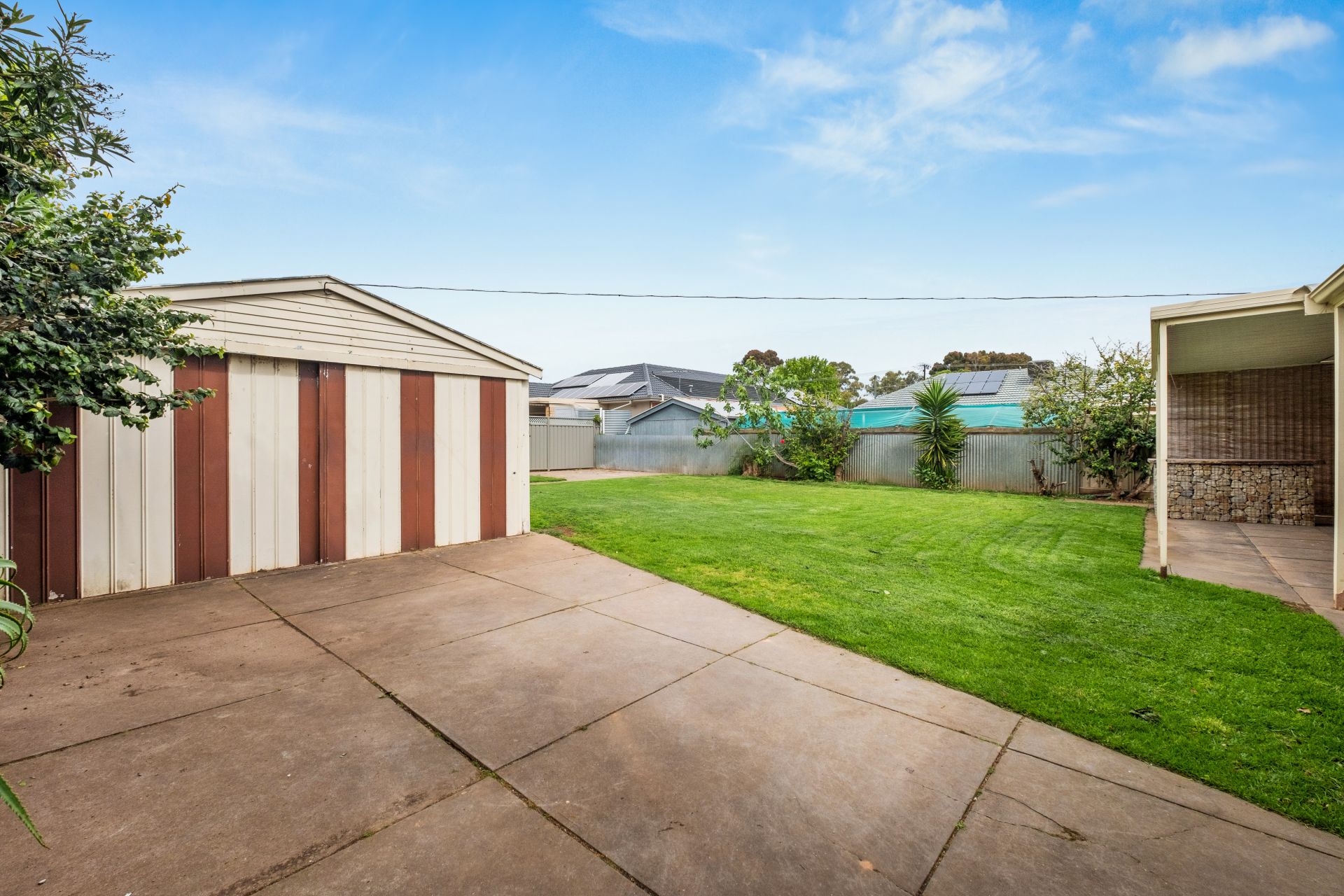 > large rear yard with shed and outdoor undercover entertaining