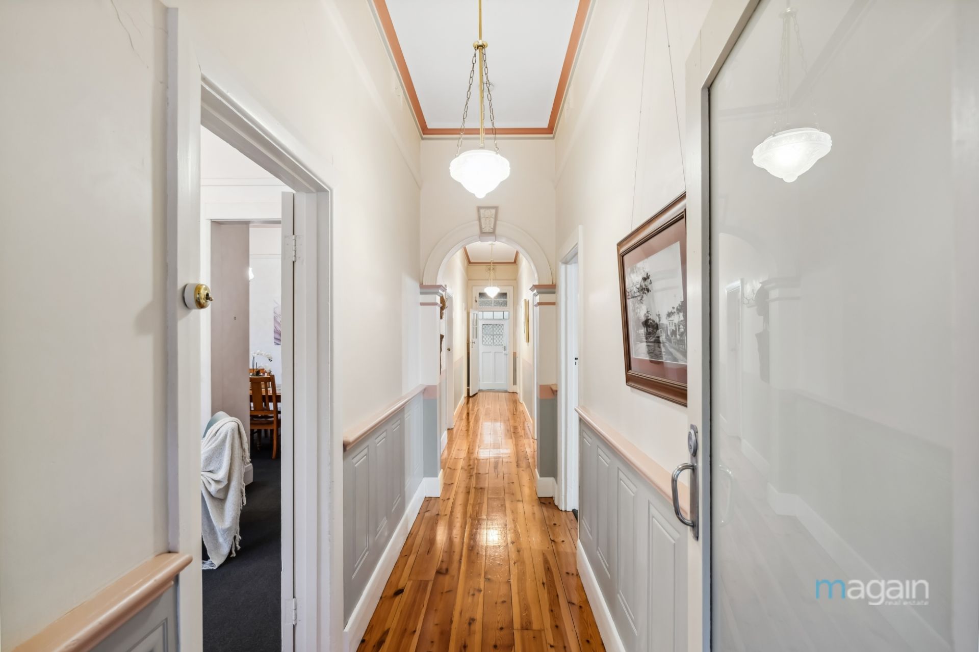 As you enter the home you are greeted by an array of character features that truly make this home special. A central hallway with polished timber floor boards, lofty raised ceilings with ornate cornicing and elegant ceiling roses and picture rails line most of the rooms.