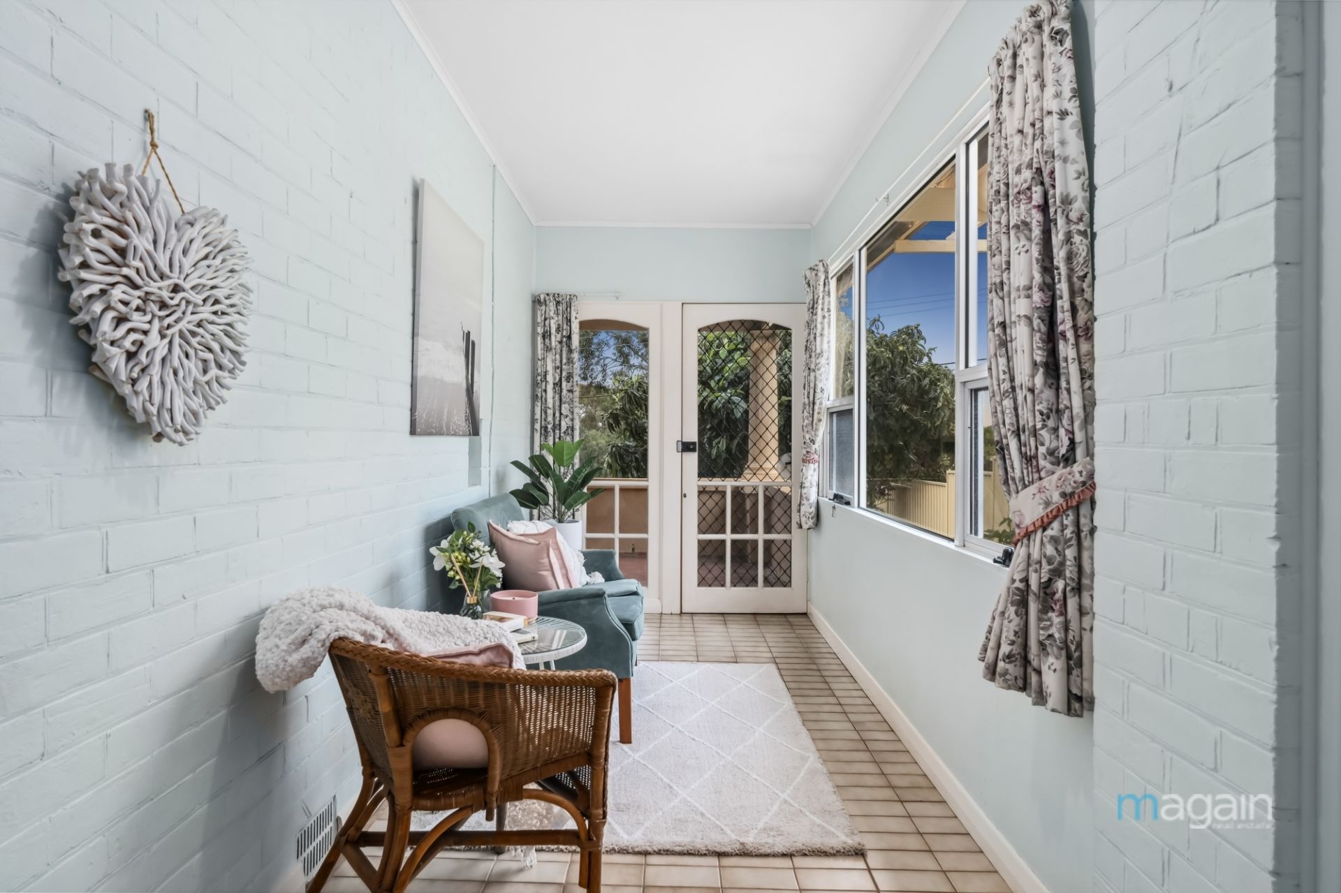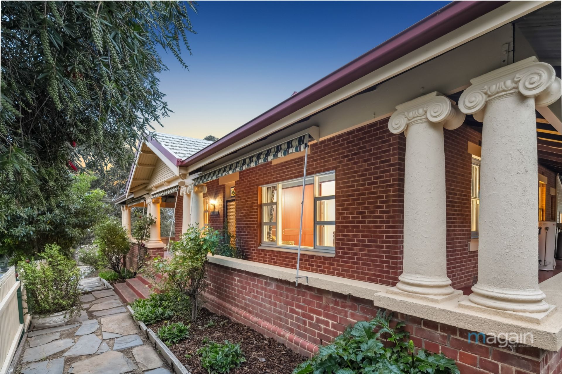 The white picket fence, locally sourced Willunga slate paths, solid red brick construction and rendered pillars provide a strong first impression when you arrive at the property.