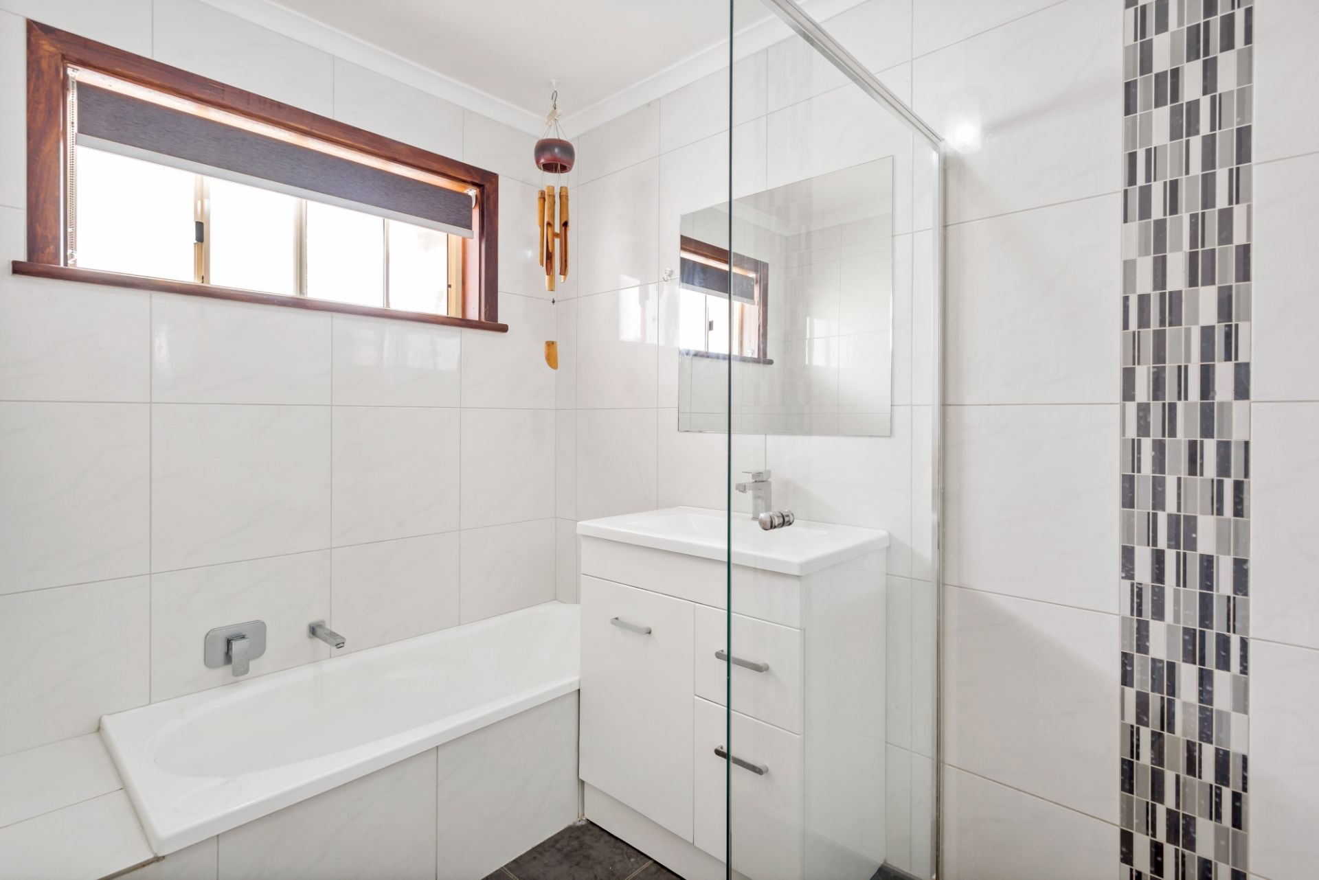 > servicing these three bedrooms is the recently renovated bathroom with separate toilet