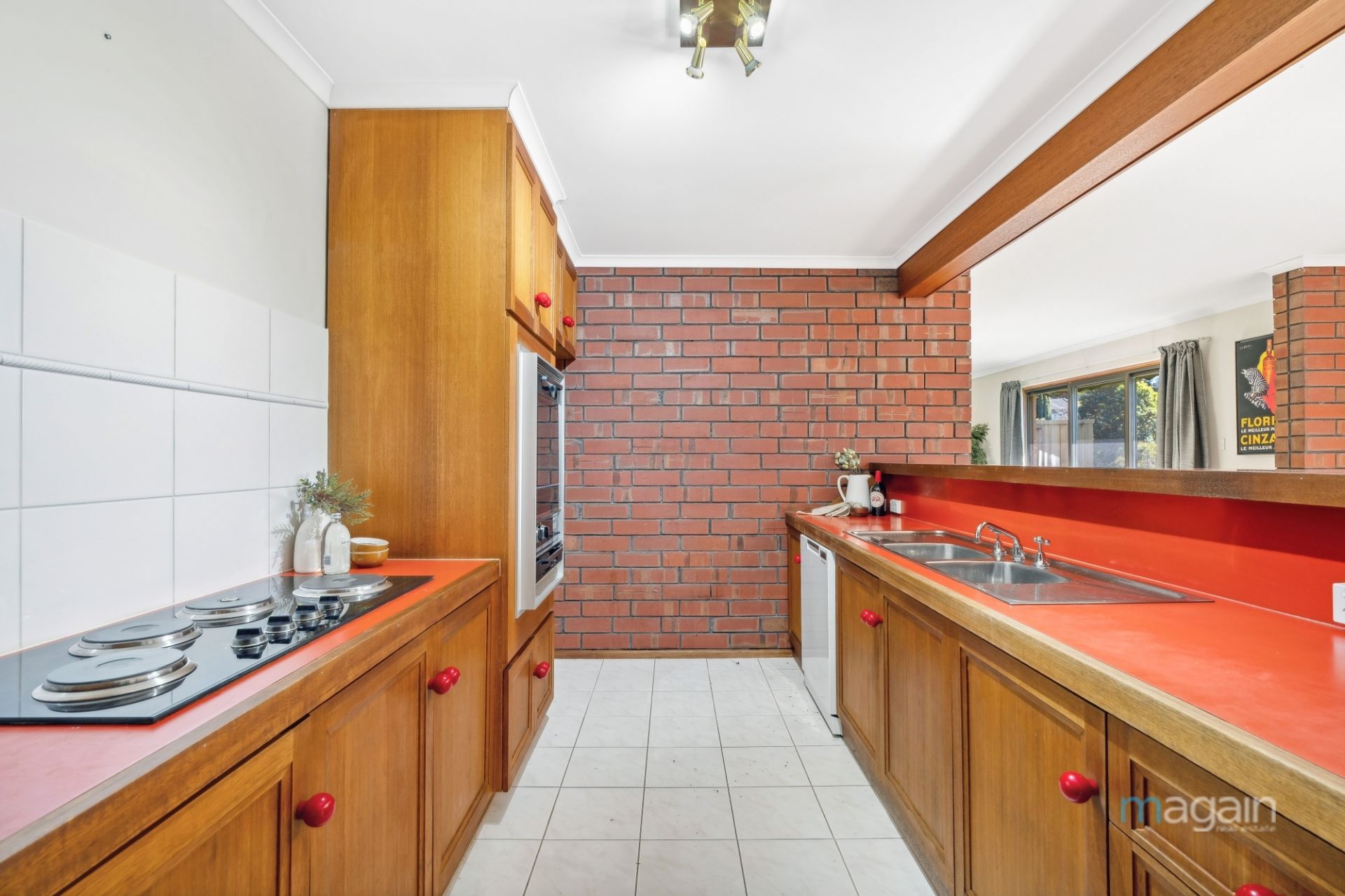 Adjacent to the living room is the formal dining area, also with sliding doors providing direct access to the rear yard. The spacious kitchen overlooks the dining area and comes fully equipped with dishwasher and electric cooktop. The servery style opening enhances the ease of entertaining, allowing for effortless interaction between the kitchen and dining spaces.