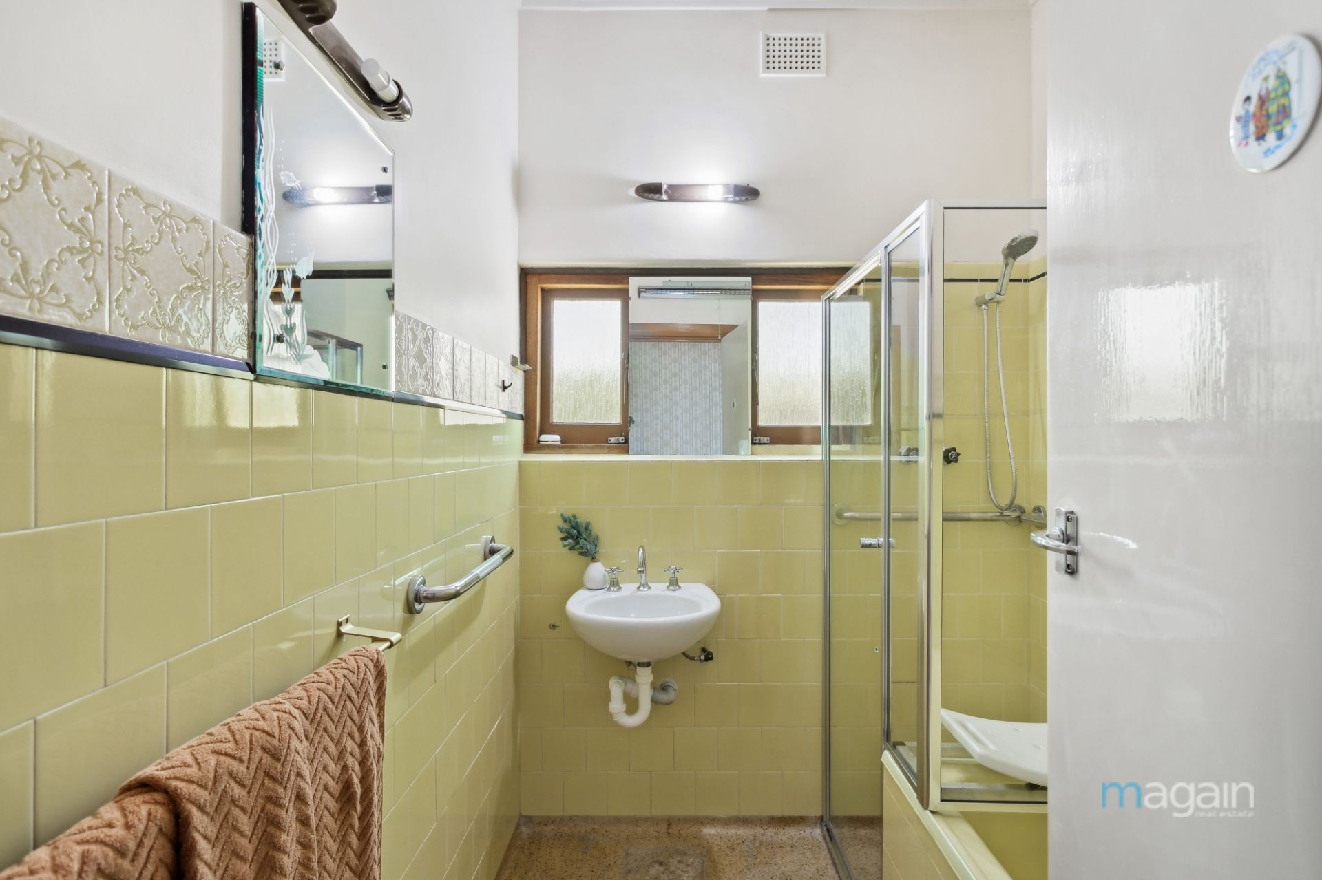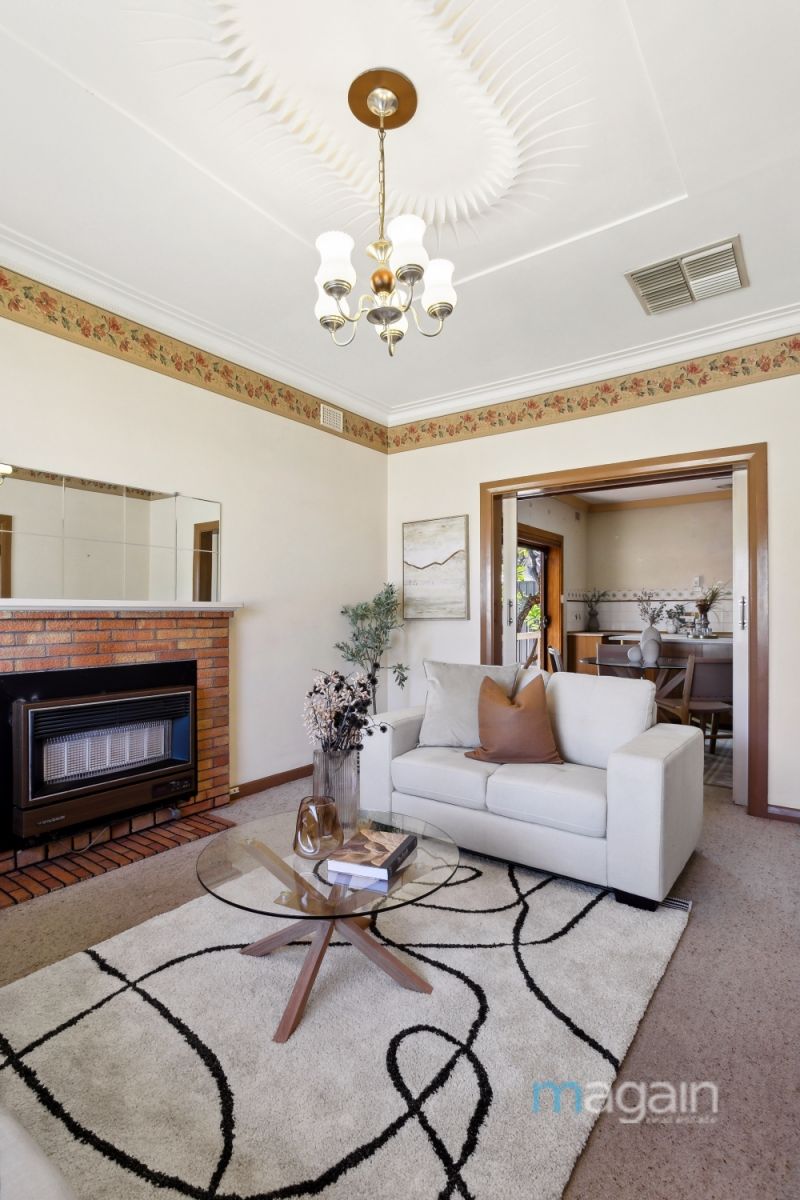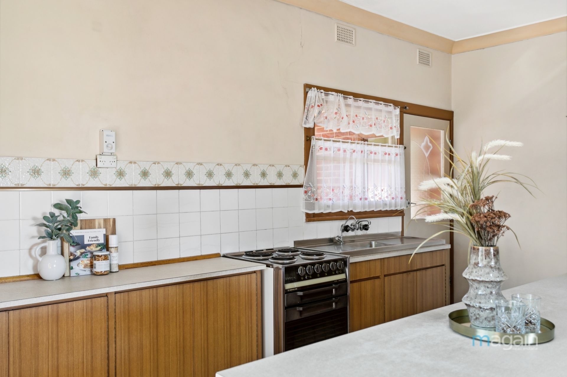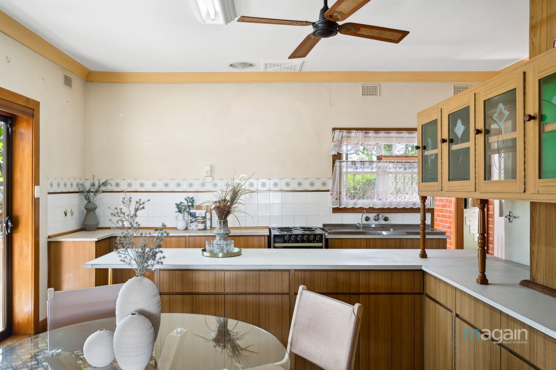 Upon entering, you're welcomed by a formal lounge bathed in natural light streaming through a generously proportioned window. This appealing space seamlessly connects to a casual meals area and an original kitchen boasting ample cupboard space. Glass sliding doors from the kitchen open up to the delightful rear yard.