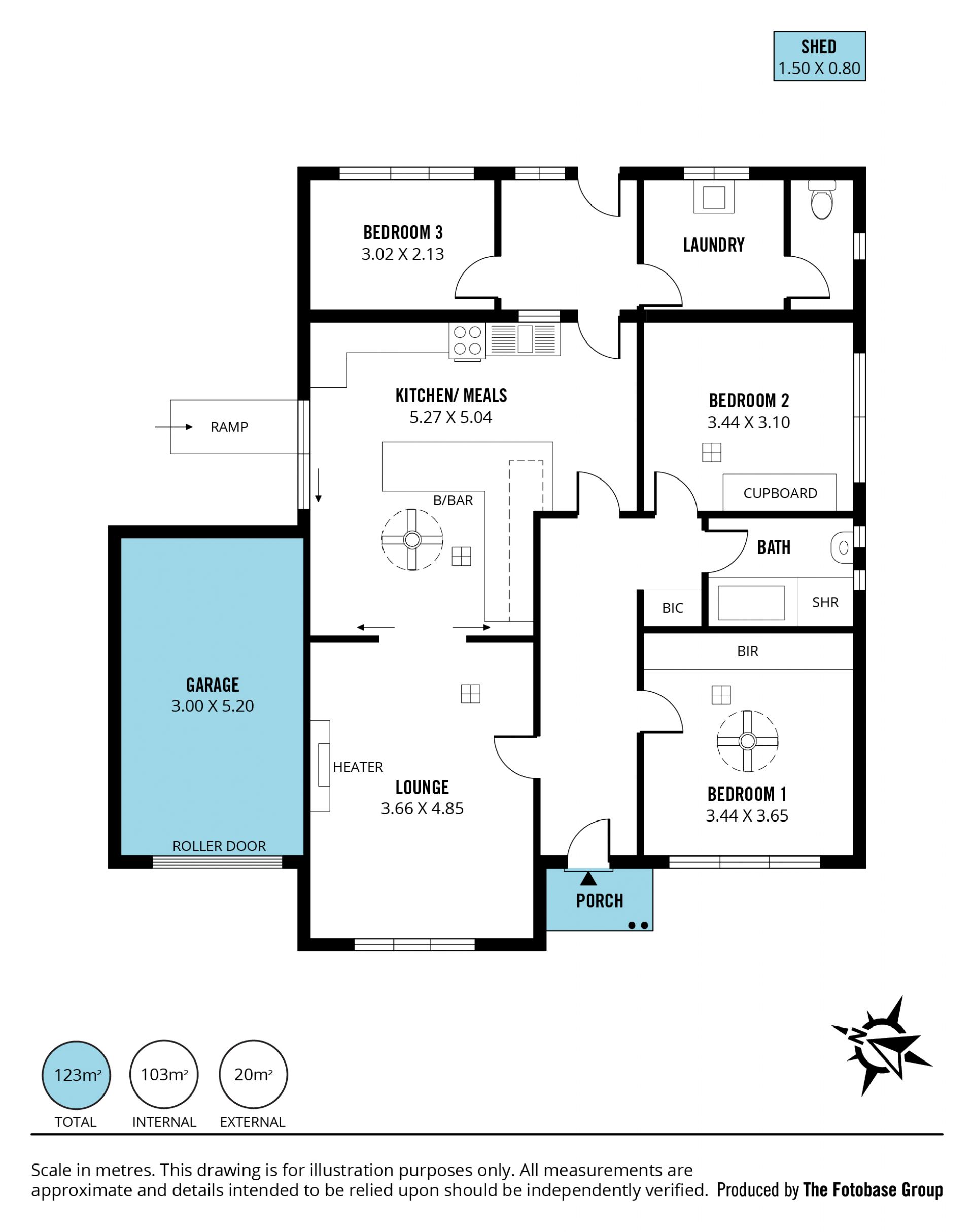 The master bedroom and bedroom two both feature built-in robes for added convenience, with easy access to the main bathroom. The toilet is conveniently situated at the rear of the home, adjacent to the laundry. A built-in cupboard in this area ensures additional storage space, promoting an organized and clutter-free living environment.
