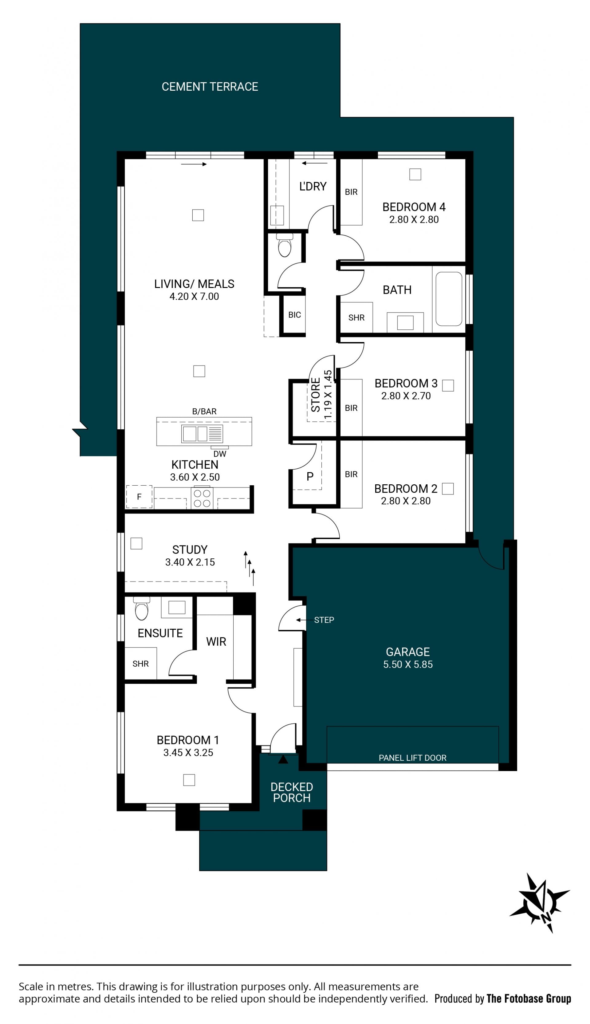 Behind the front portico you will find a classic entrance hall leading to the four well-proportioned bedrooms and the versatile study, a light and airy open plan lounge and dining room overlooked by a sleek kitchen and breakfast bar, the main bedroom with a walk-in robe and en-suite, the main bathroom with a luxurious soaking tub, a handy separate toilet, a separate laundry and a double garage with direct internal access into the home.