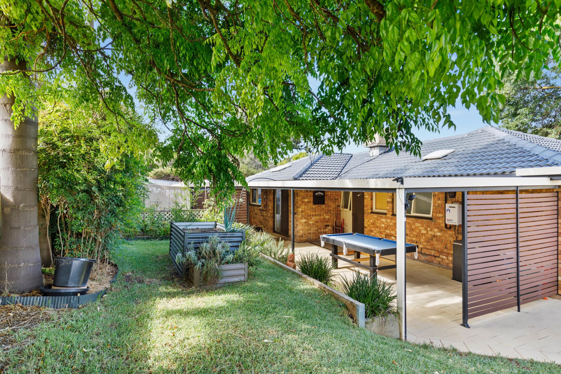 The home's great-sized and beautifully presented three bedrooms are found down a separate hallway to the left of the entrance, and are all complete with built-in robes and easy access to the updated main bathroom, its spacious design makes room for a vanity, shower, toilet, and bath, while the adjacent laundry feature a built-in cupboard providing valuable extra storage space to the home.