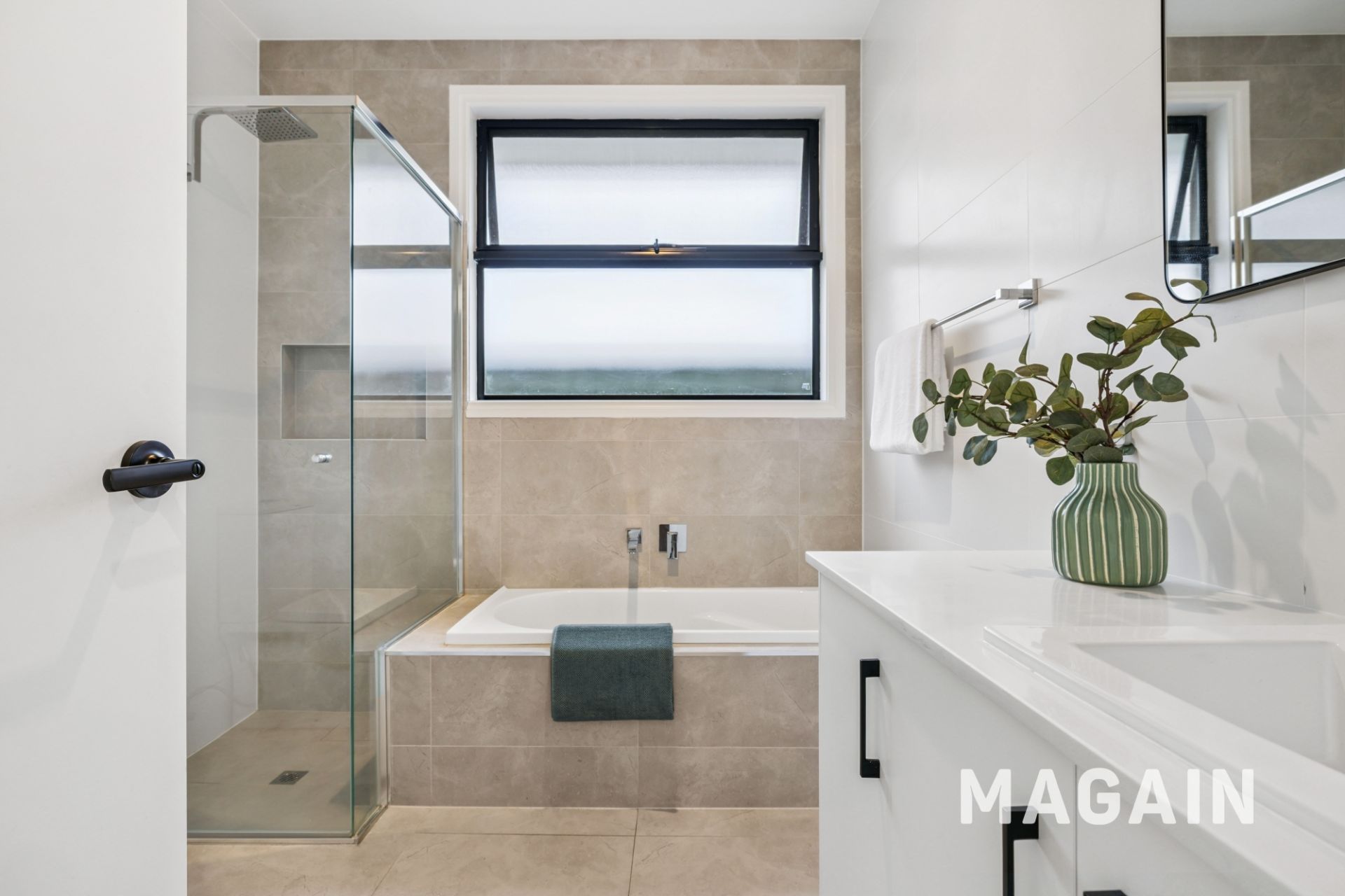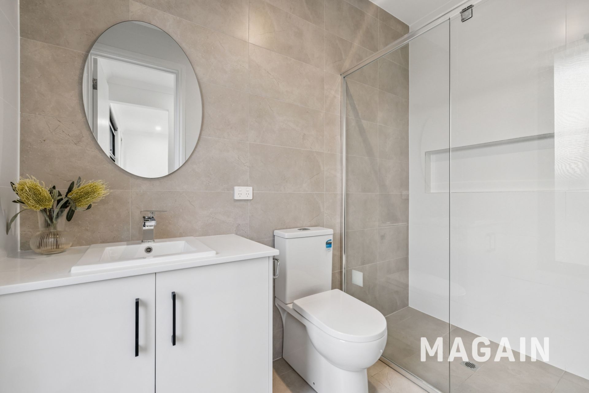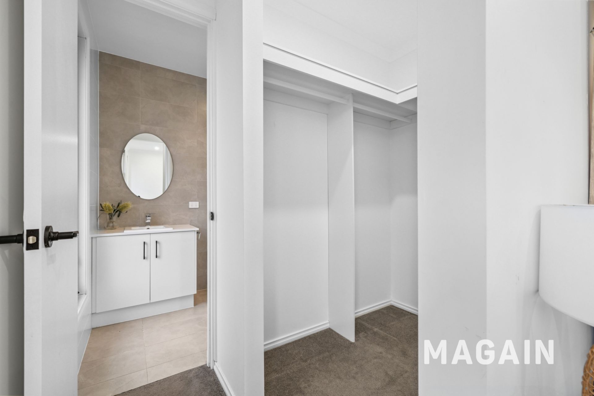 The main bedroom is thoughtfully placed at the front, featuring soft carpets, a generous walk-in robe, and a sleek ensuite boasting floor-to-ceiling tiles and quality fixtures.
