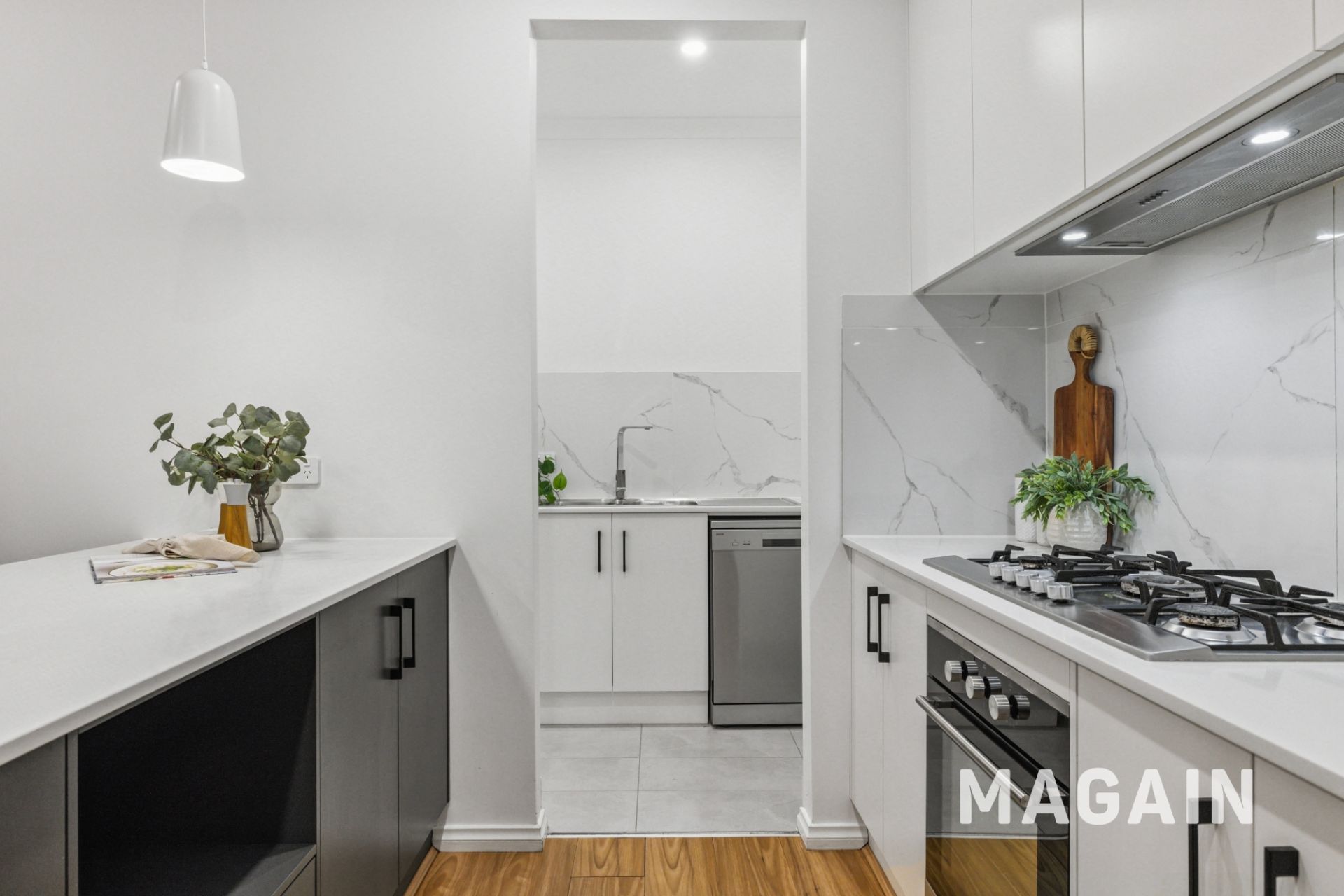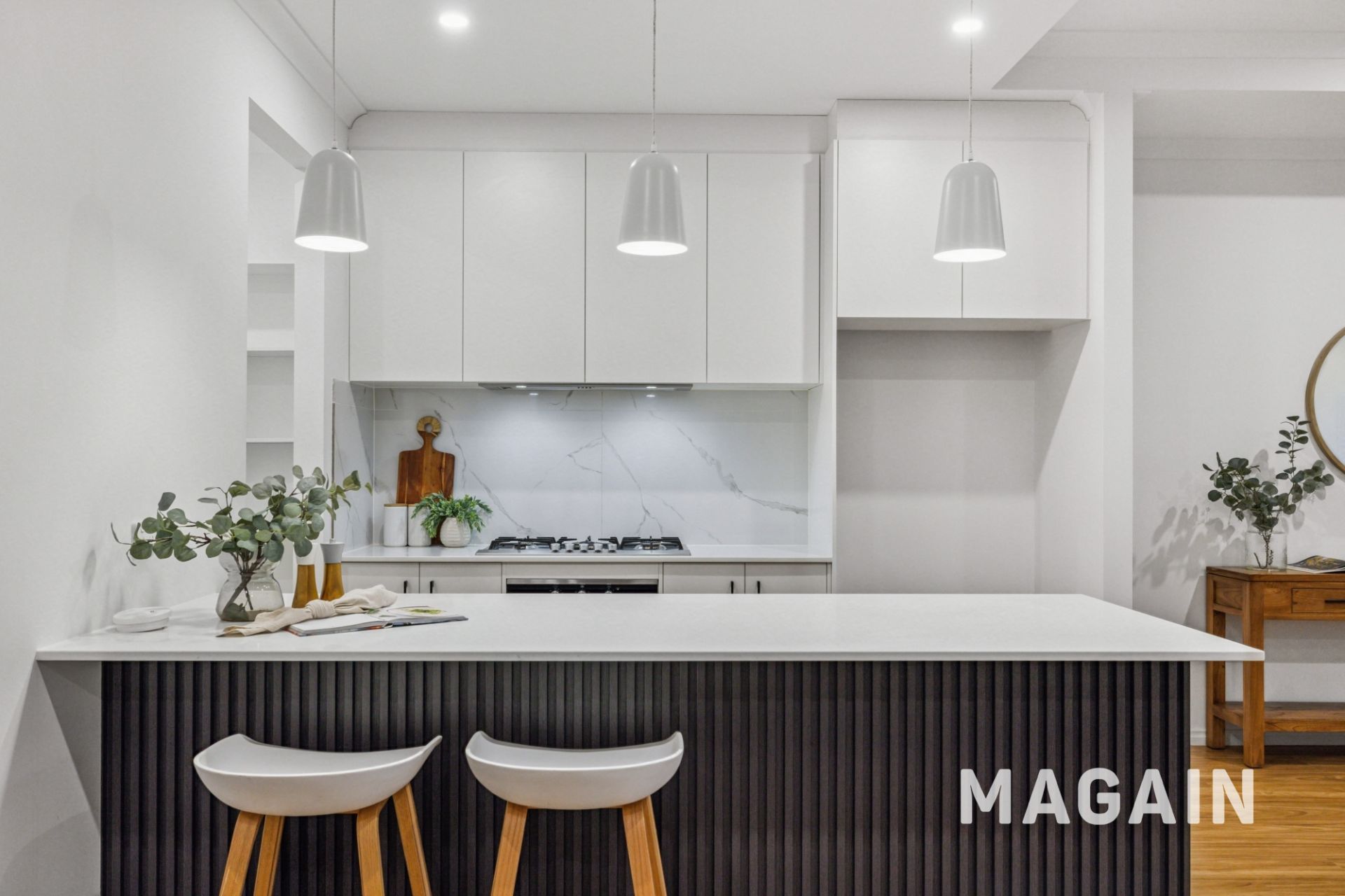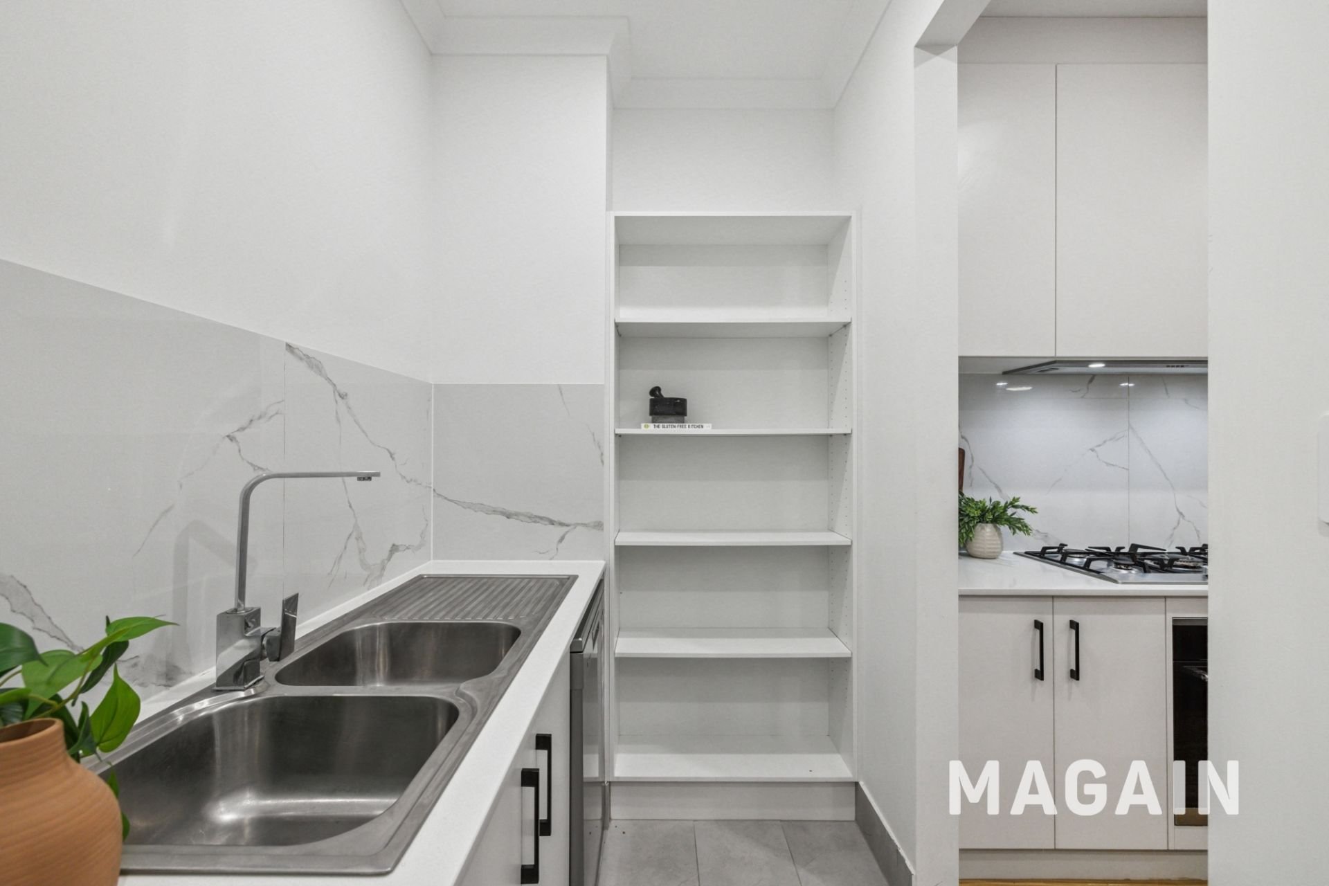At the heart of the home, the expansive open-plan kitchen, dining, and living area delivers the ideal hub for family life and entertaining. The galley-style kitchen offers a functional yet stylish layout, complete with gas cooktop, soft-close cabinetry, ample preparation space, and an inviting island bench with breakfast bar seating. A cleverly designed butler's pantry doubles as a laundry, offering a stainless-steel sink, dishwasher, additional storage, and practicality rarely found in homes of this design.