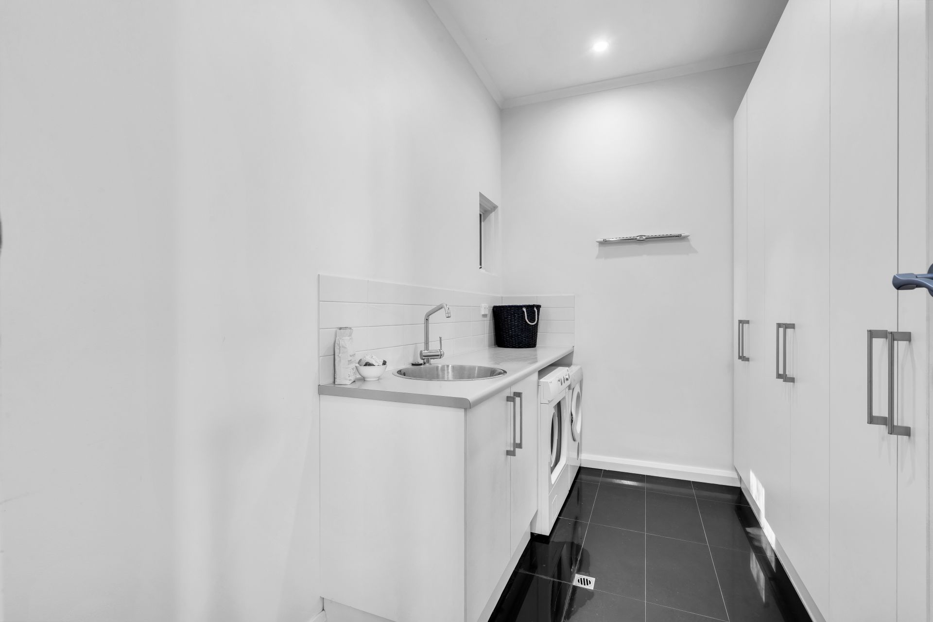 At the heart of the home, the gourmet kitchen is sure to impress the home cook. Featuring a Smeg 900mm oven with gas cooktop, dishwasher, stone benchtops, and an abundance of storage, it also includes a stainless-steel fridge for ultimate convenience. Whether it's family dinners or lively gatherings, this space is a true entertainer's haven.