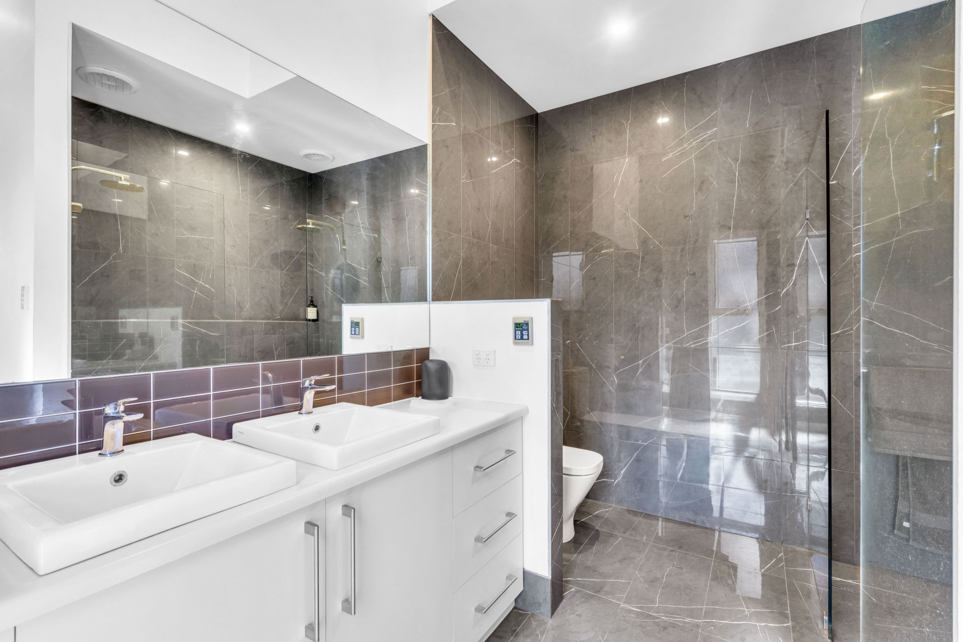 The opulent main bedroom serves as a luxurious retreat, featuring a generous walk-in robe and an impressive ensuite with double vanity, double shower, and floor to ceiling tiling.