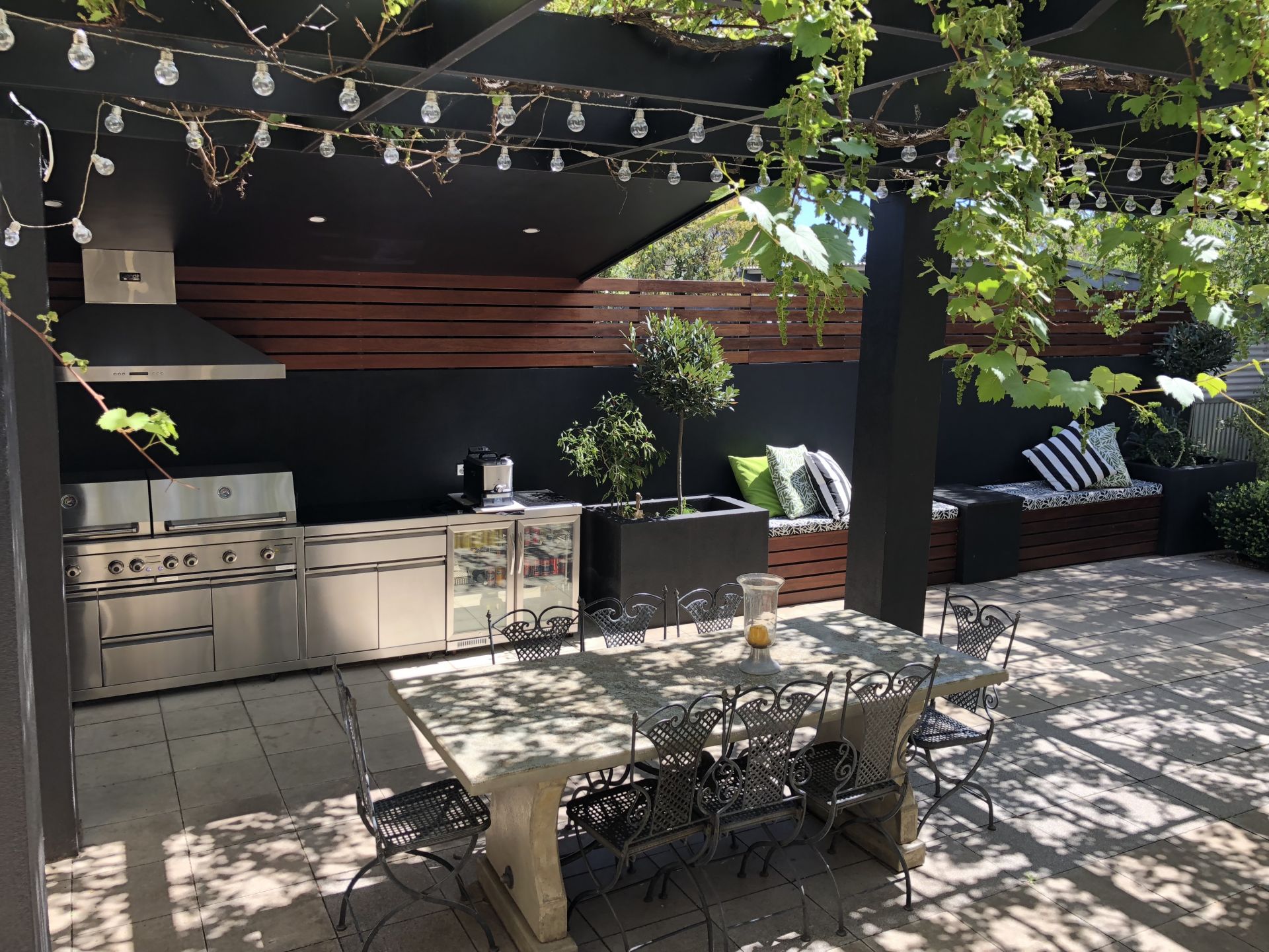 Also including the barbecue, outdoor drinks fridge and cement outdoor table and chairs.