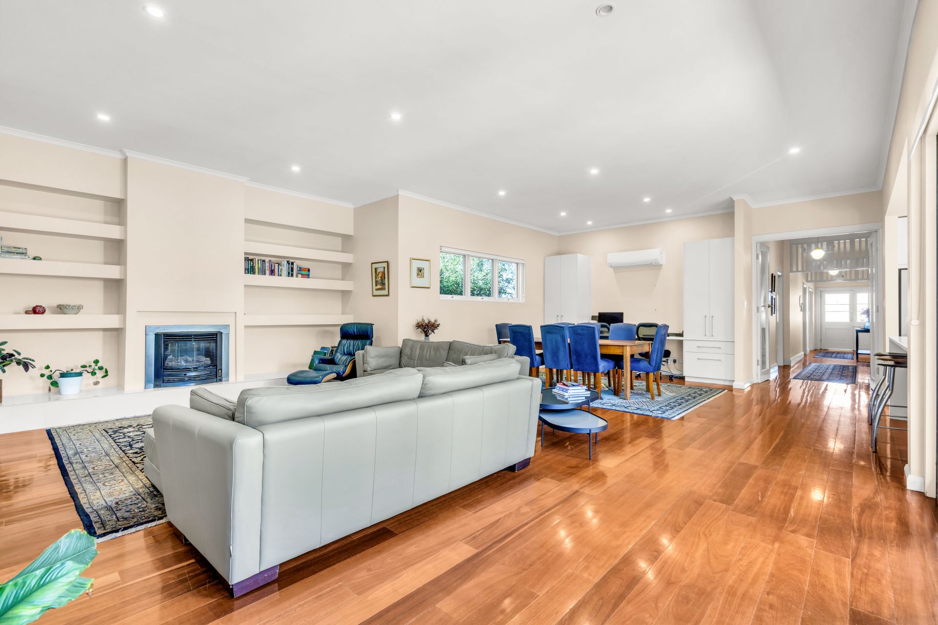 The expansive open-plan living and dining area, with floorboards throughout, offers both grandeur and comfort, centred around a striking gas fireplace & Ducted refrigerated cooling.