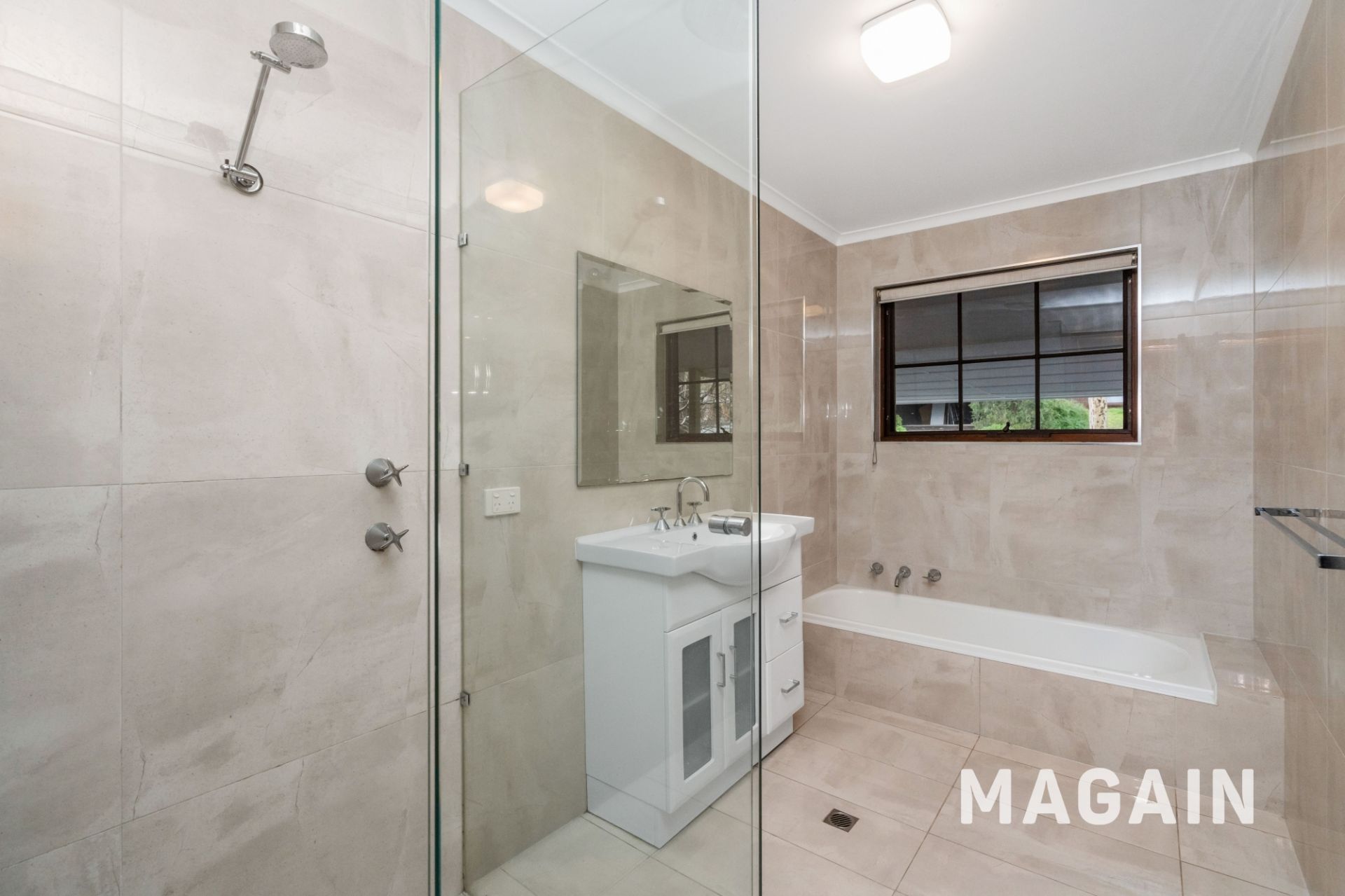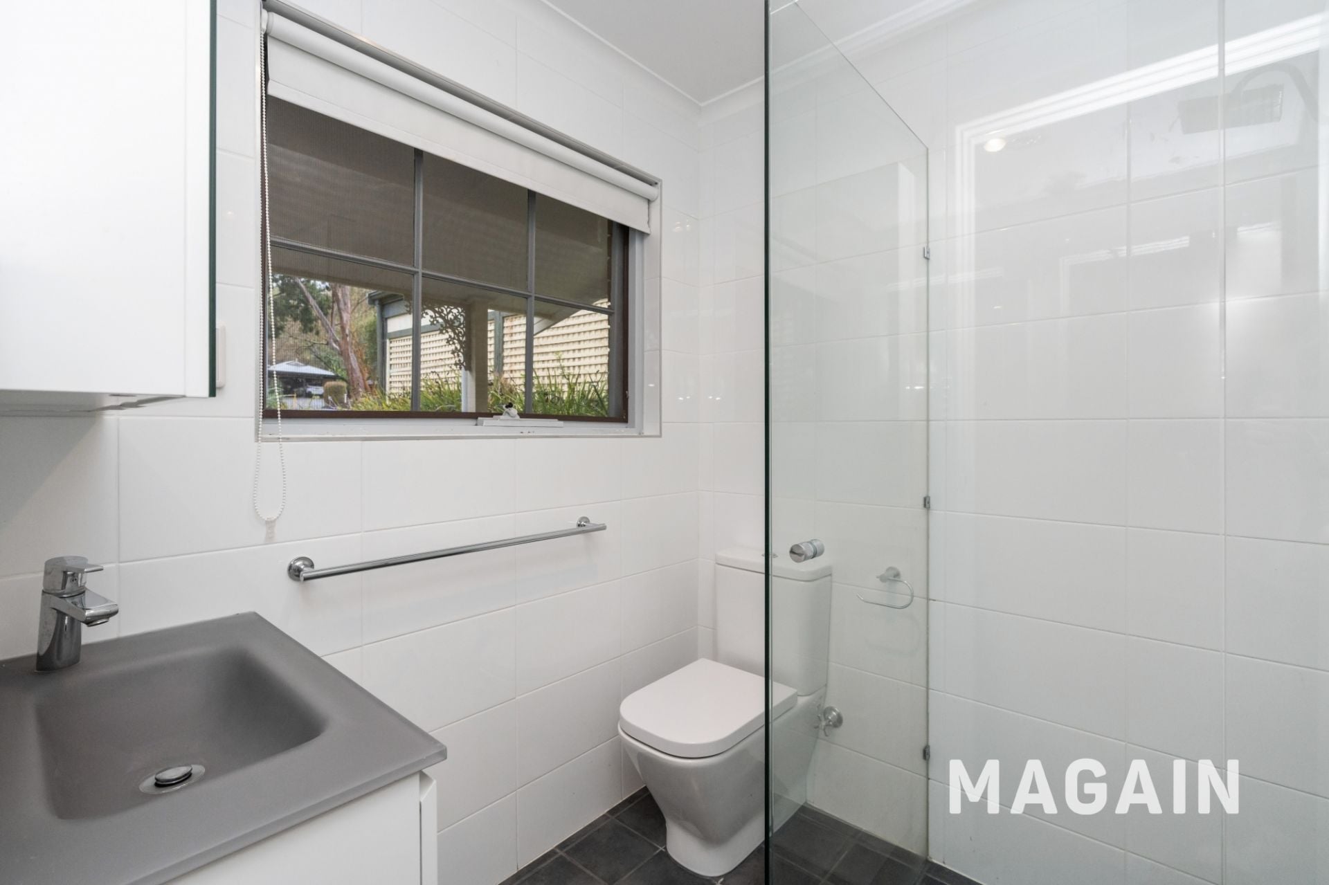 > neat and airy bathroom with separate toilet