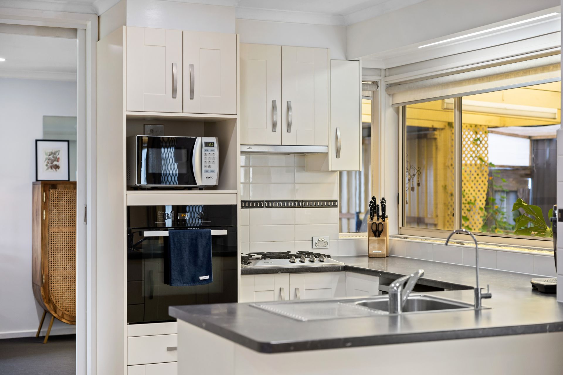 The front-positioned master bedroom and bedroom two are both complete with built-in robes, while all three bedrooms have easy access to the beautifully renovated and ultra-modern main bathroom, with underfloor heating, a heated towel rack, and a handy second toilet found just outside.