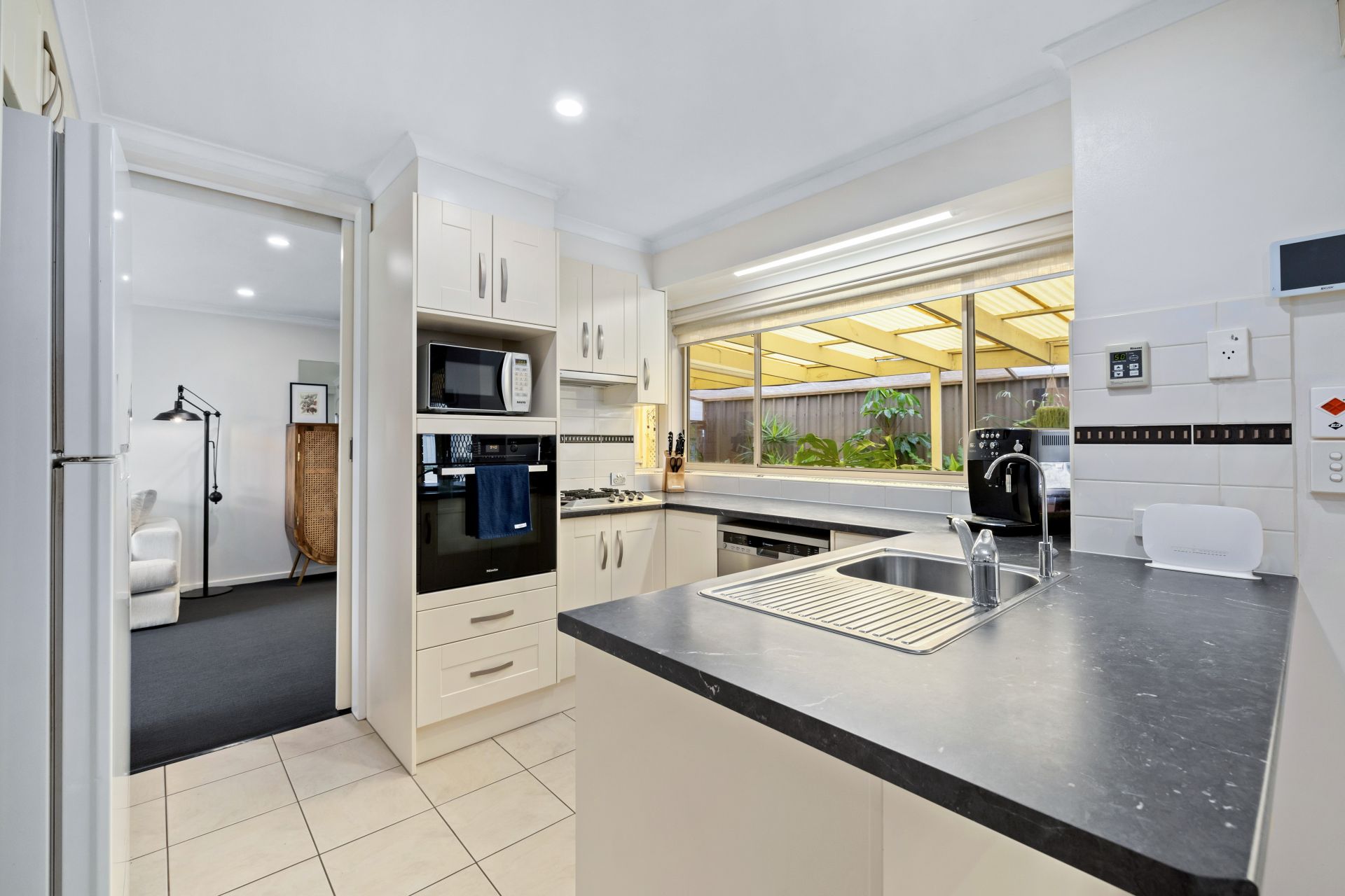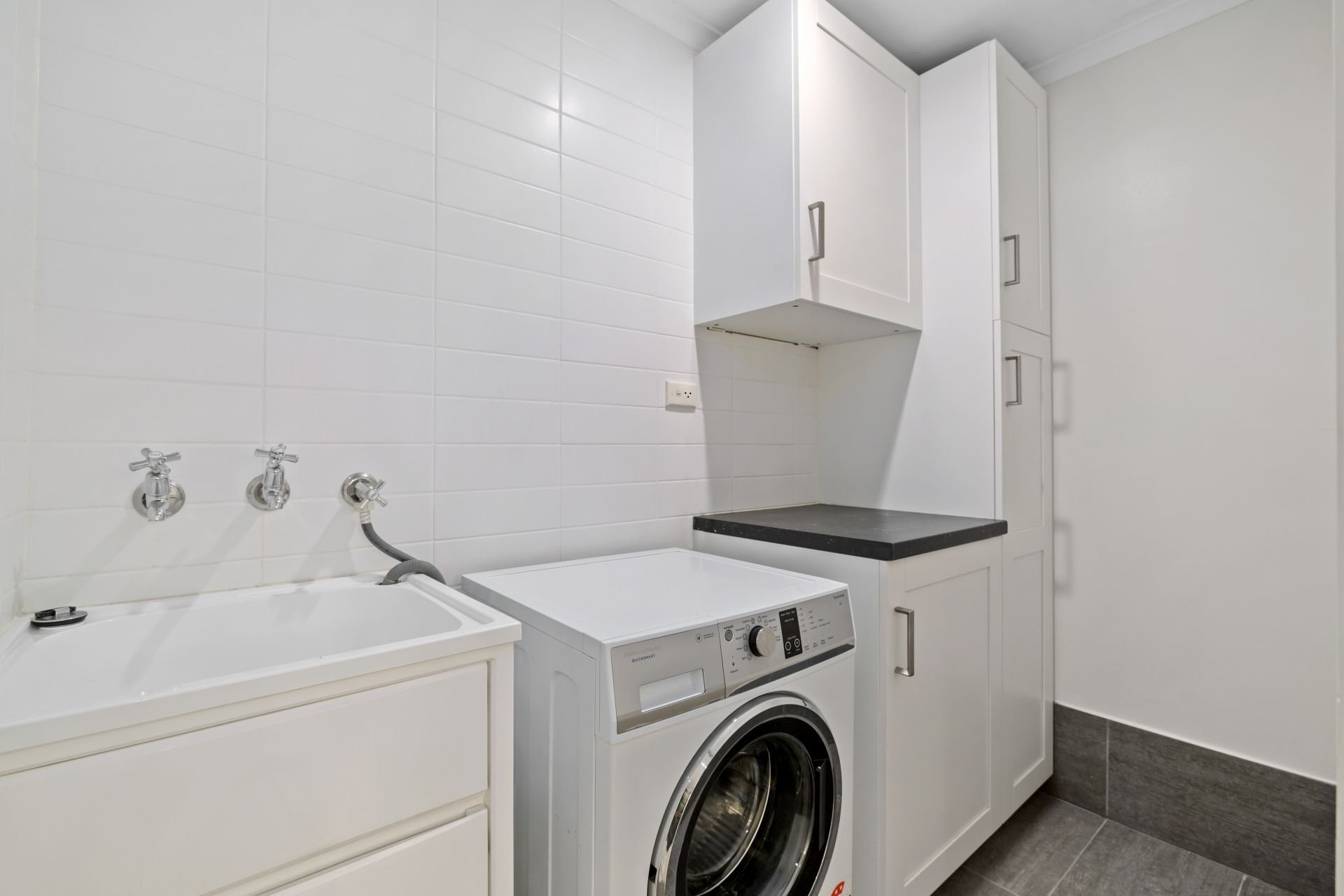 Glass sliding doors from the kitchen/meals area allow a view and seamless access to a paved entertaining area covered by a Skillion roof pergola which is sure to get plenty of use as we welcome the warmer weather, while the spacious and level lawn area surrounded by a beautifully landscaped garden is perfect for the kids and pets to run around with fabulous privacy.