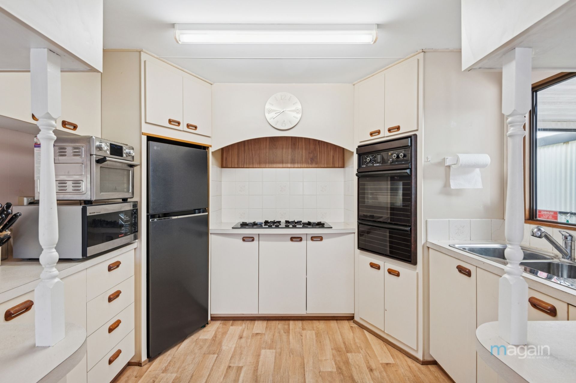 The well-sized kitchen features gas cooking and overlooks the open dining area, creating a practical and welcoming space. Bedrooms include overhead ceiling fans for year-round comfort. The master bedroom is carpeted and boasts built-in wardrobes.