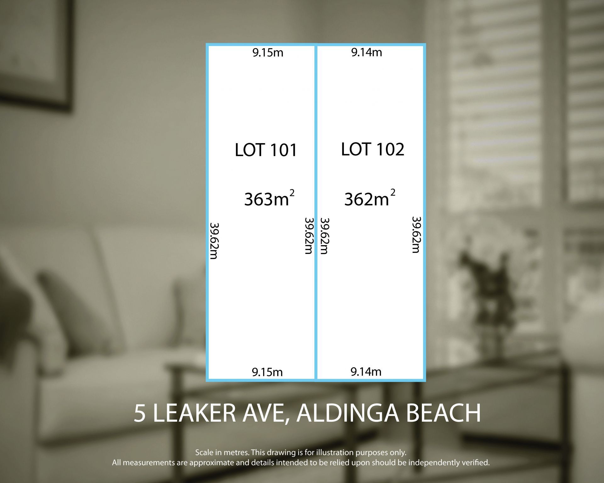 Introducing Lot 101 and Lot 102 / 5 Leaker Avenue, Aldinga Beach. Two prime blocks of land offering an unparalleled opportunity to build your ideal coastal home or investment. Lot 101 offers 363 sqm, while Lot 102 offers 362 sqm (approx.), both perfectly situated in one of Adelaide's most sought-after seaside suburbs.