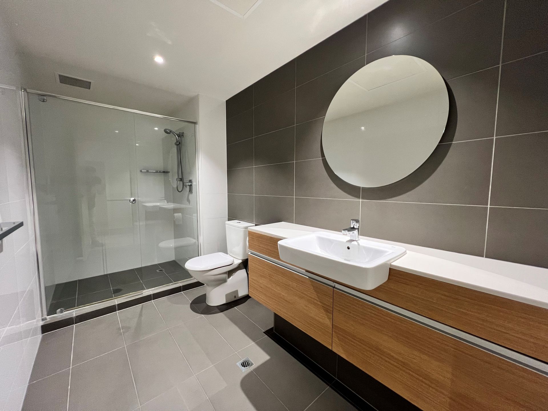 • Spacious and modern bathroom with plenty of cupboard space.