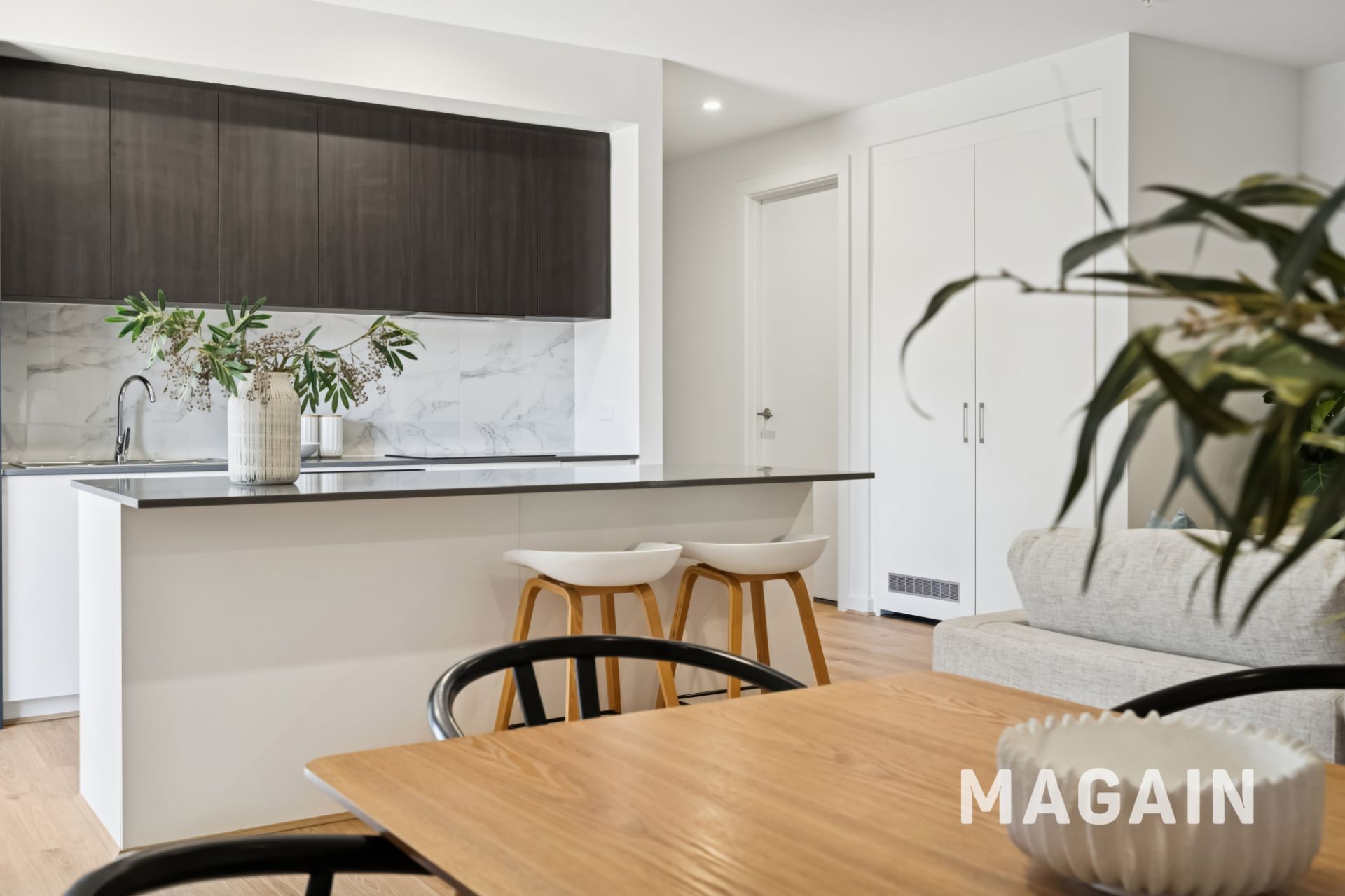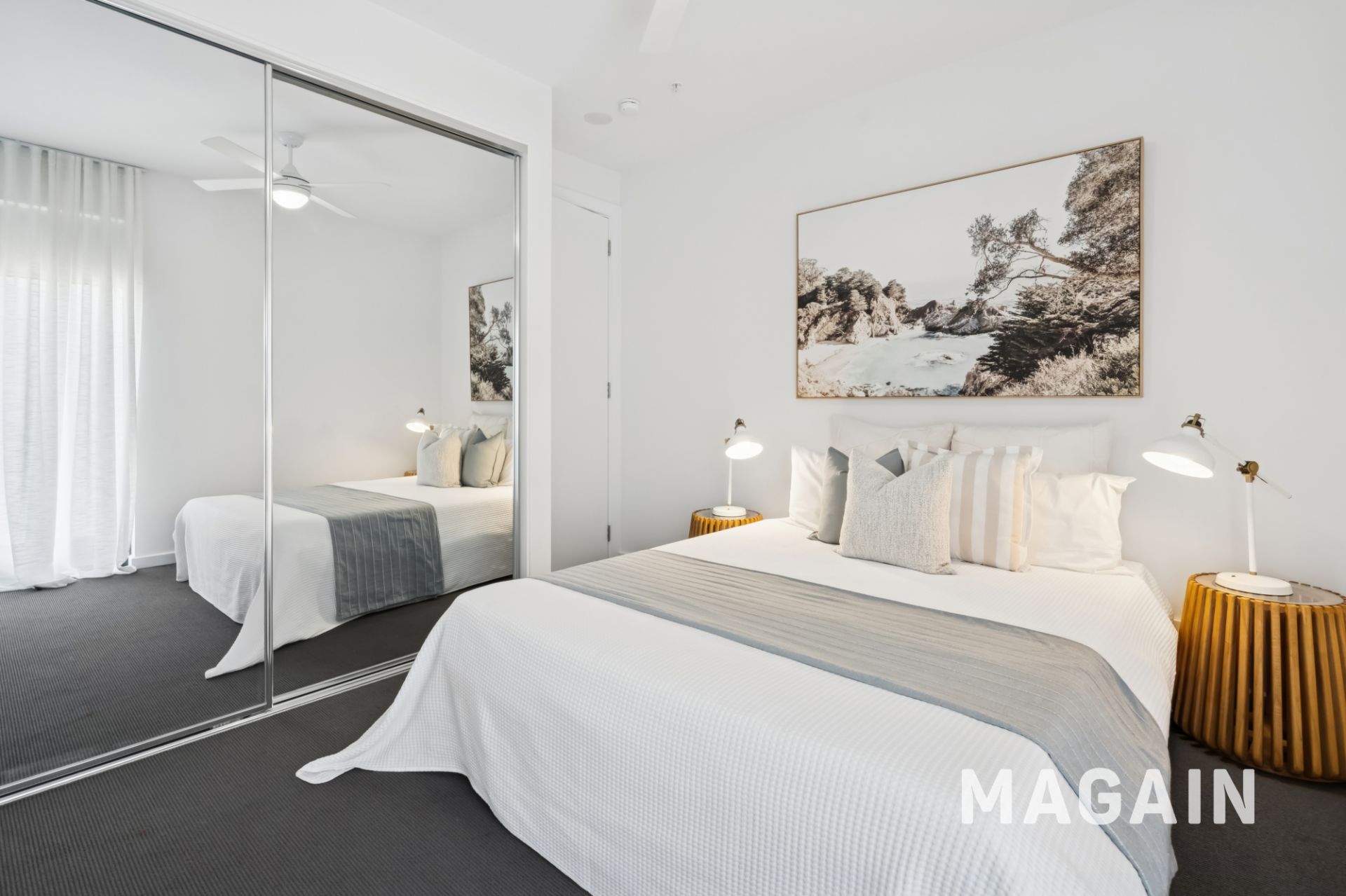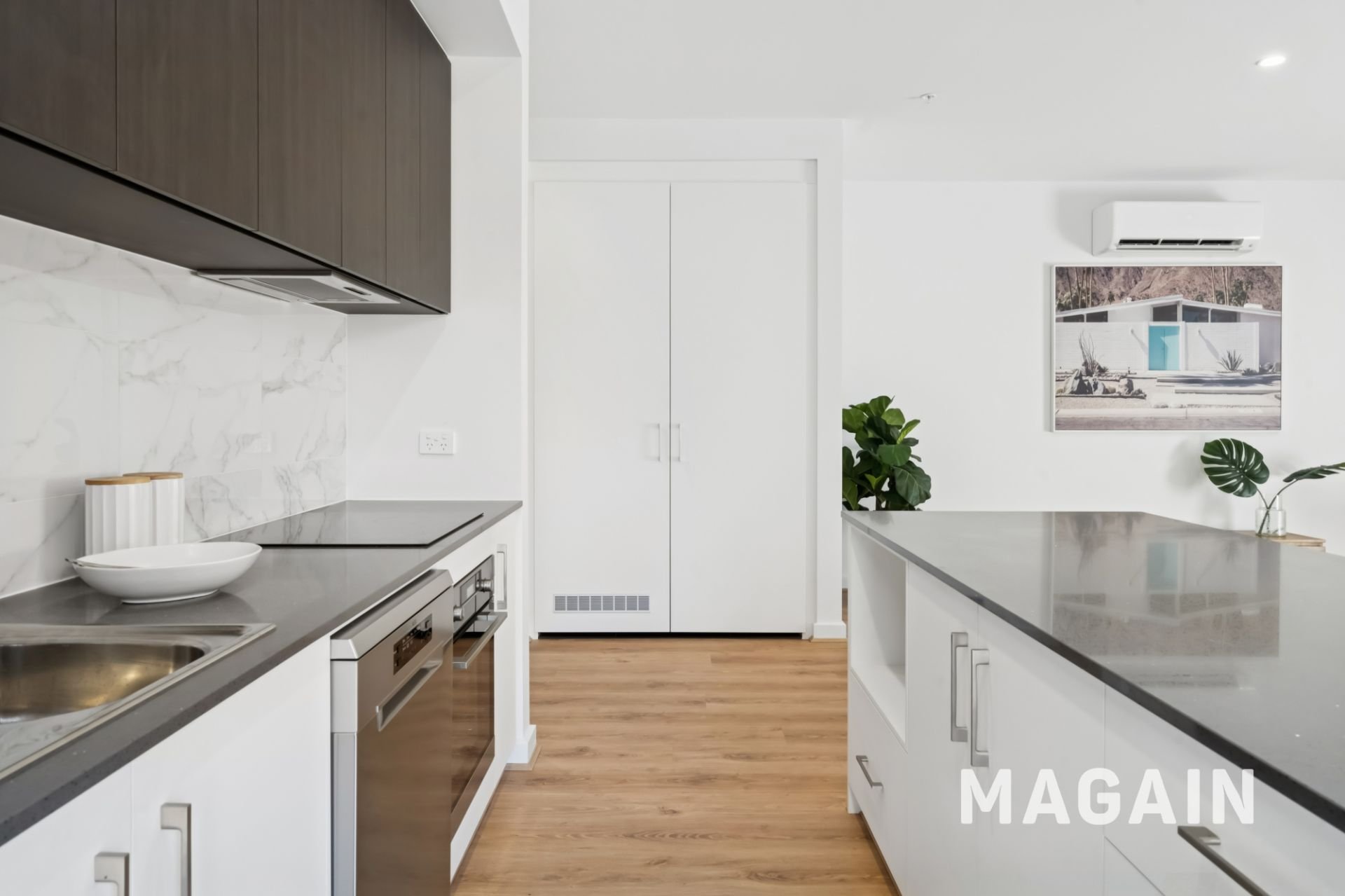 This unique first floor apartment at 104 is rare and the envy of the building when it comes to it's floorplan size. Boasting a wide entrance and hallway, three bedrooms and two bathrooms, open-plan living, 2.7m ceilings, balcony living, modern kitchen with smart-stone benchtops, soft close draws and cabinetry, quality appliances and more!