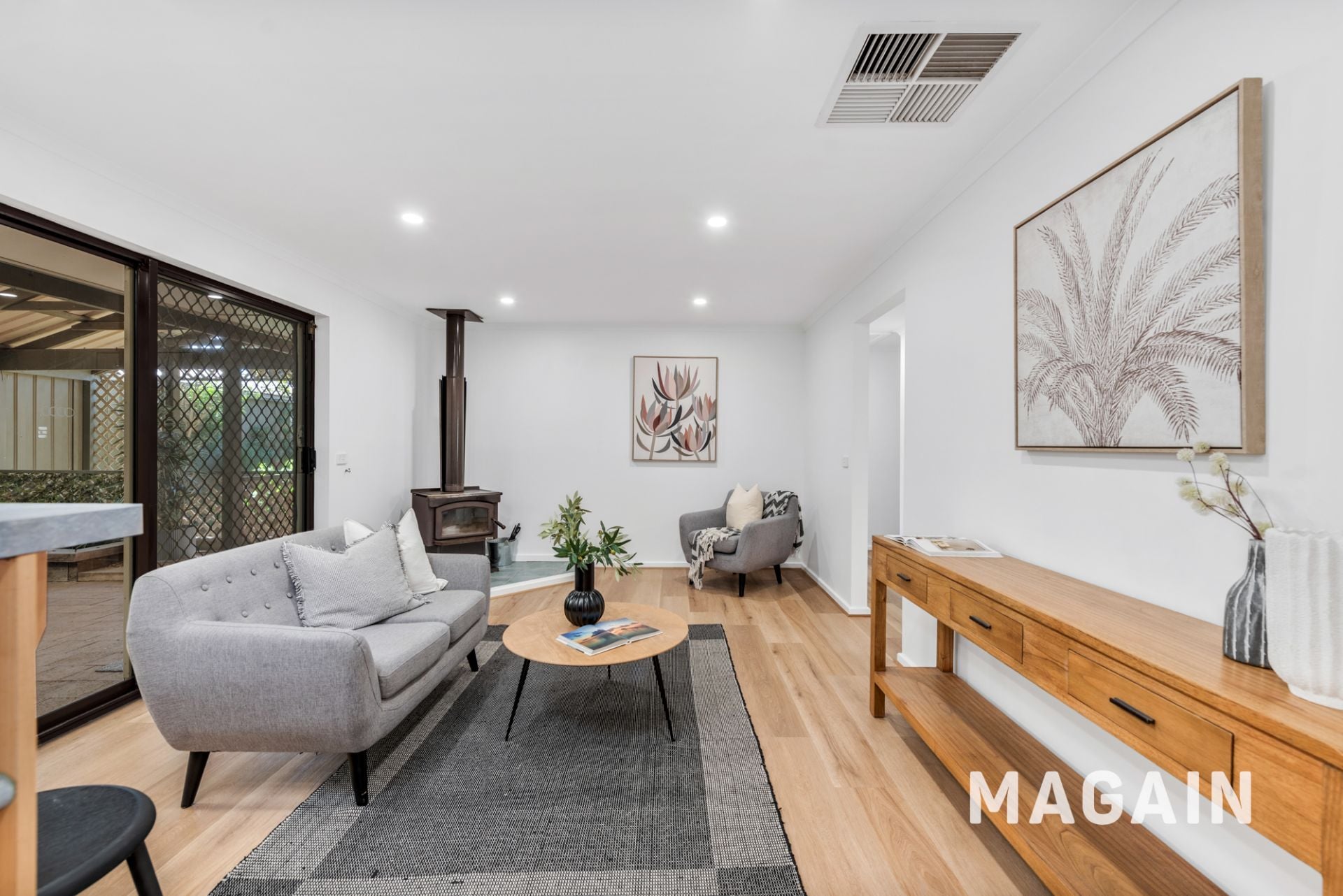 The central kitchen is well-appointed with a dishwasher, gas cooktop and walk-in pantry, overlooking the main living space. A formal dining space off the kitchen could also be ideal as a study or home office. Additional features include downlights, ceiling fans in the bedrooms, ducted evaporative air conditioning, and a cosy real wood heater. A spacious laundry offers plenty of room to add built-in cabinetry if desired.