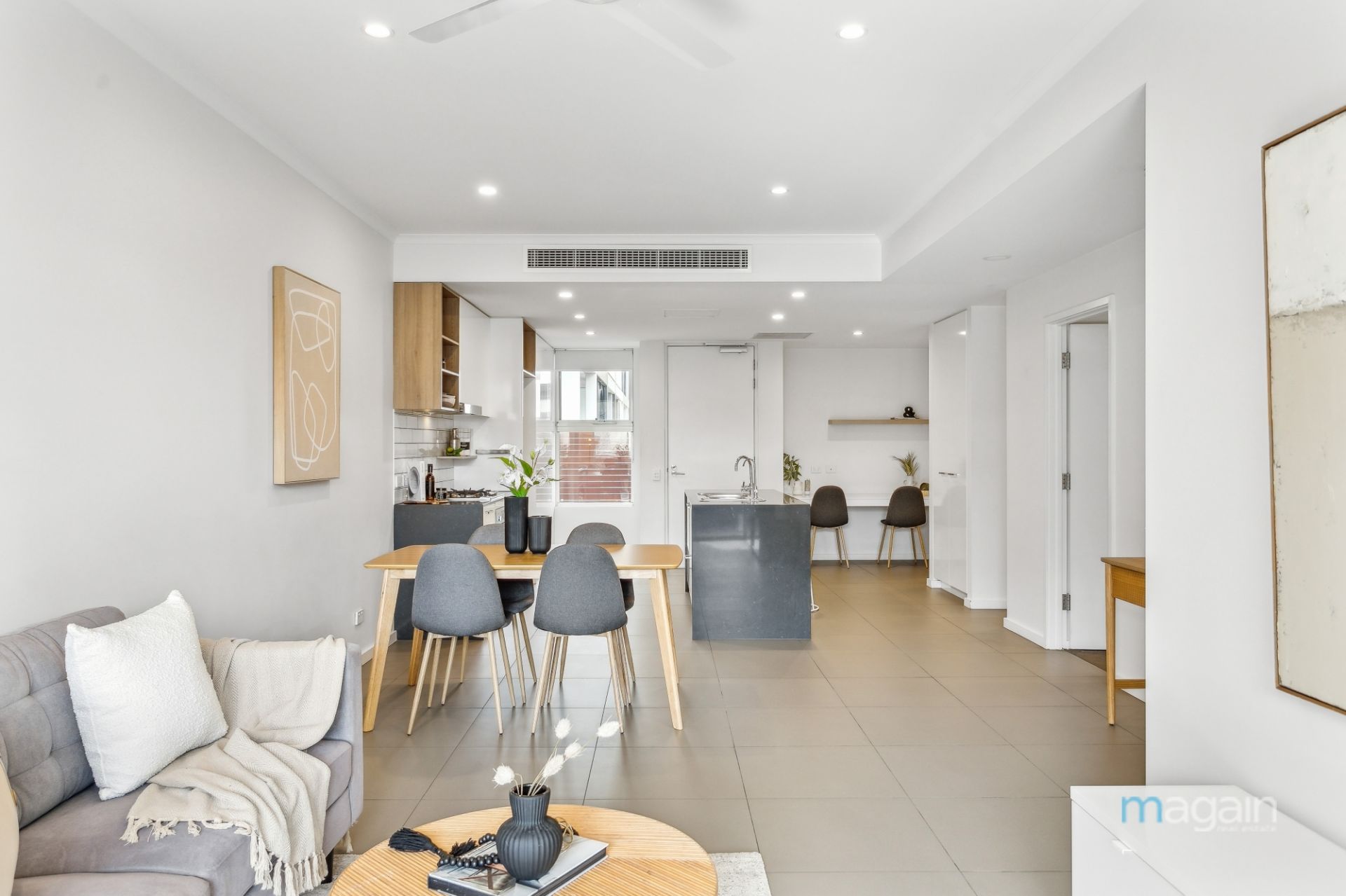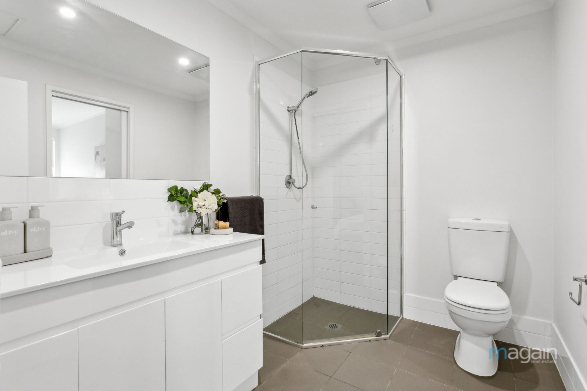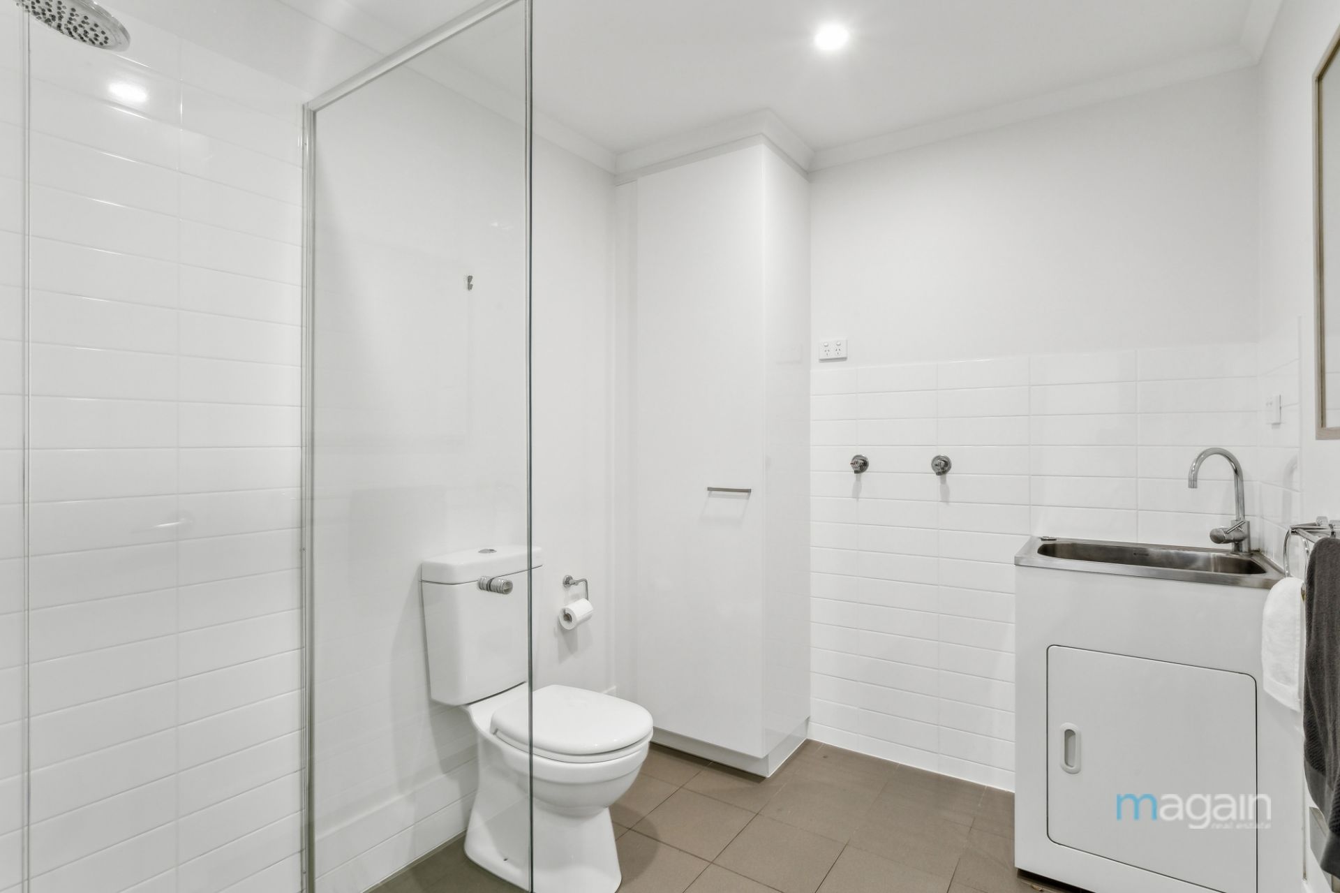 The modern interior features two elegantly appointed bedrooms, each equipped with built-in robes and ceiling fans for added comfort. The master bedroom enjoys the luxury of a private ensuite, while the second bedroom offers the added charm of glass sliding doors that open out to the balcony. A cleverly designed second bathroom, combined with the laundry, provides a space-saving solution with an additional shower and toilet, making your morning routines seamless and enjoyable.