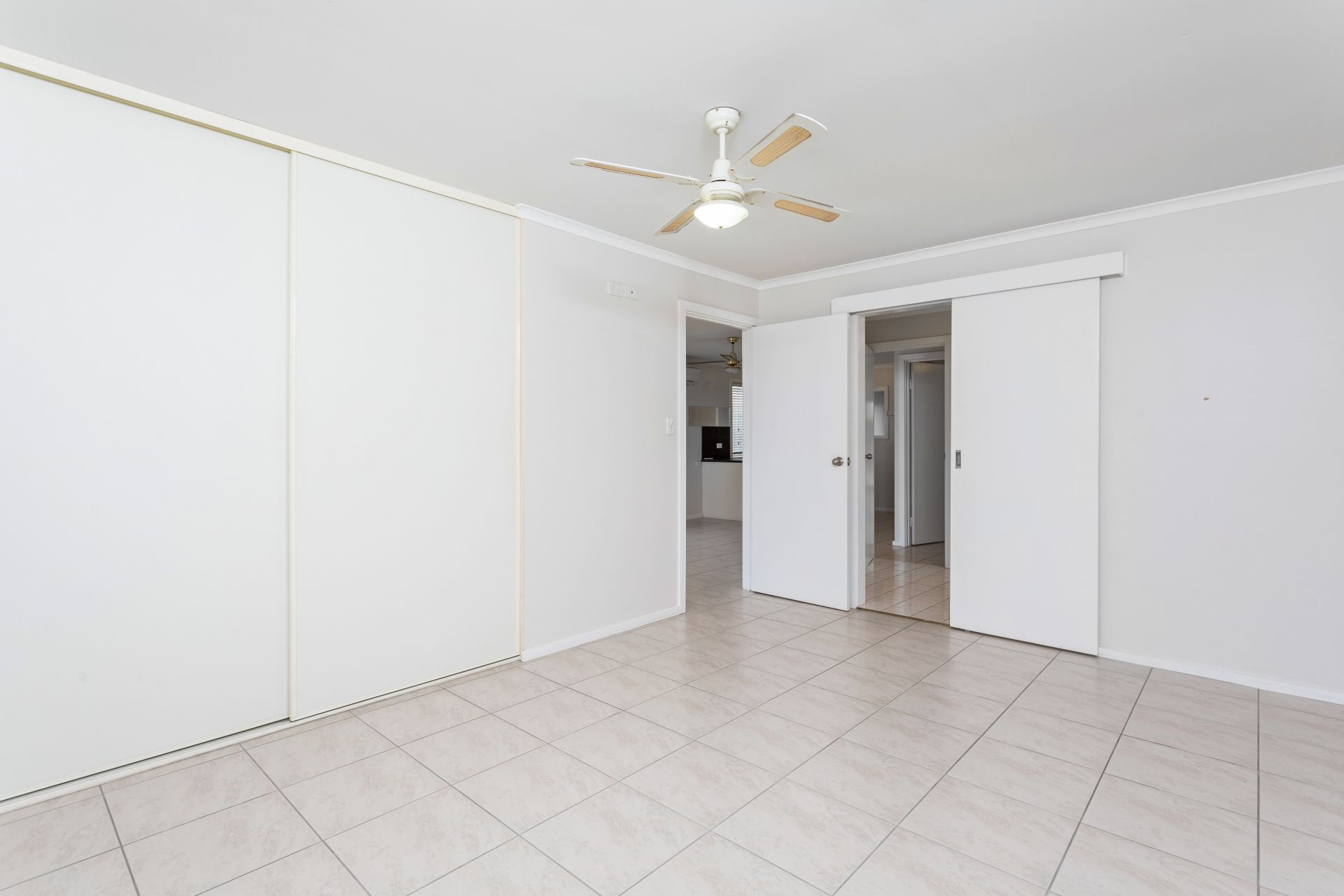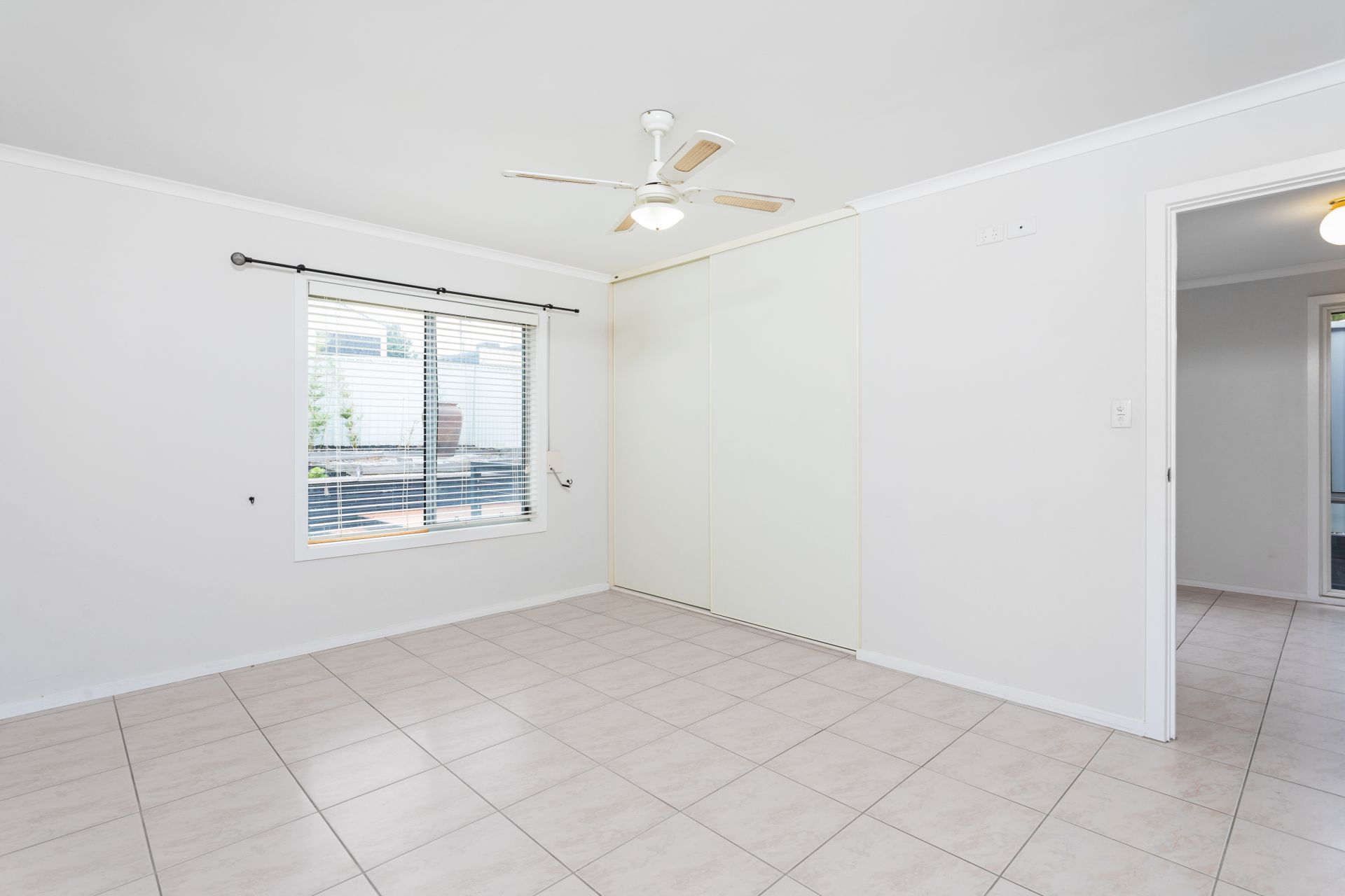 > bedroom 1 with ceiling fan and built in robe
