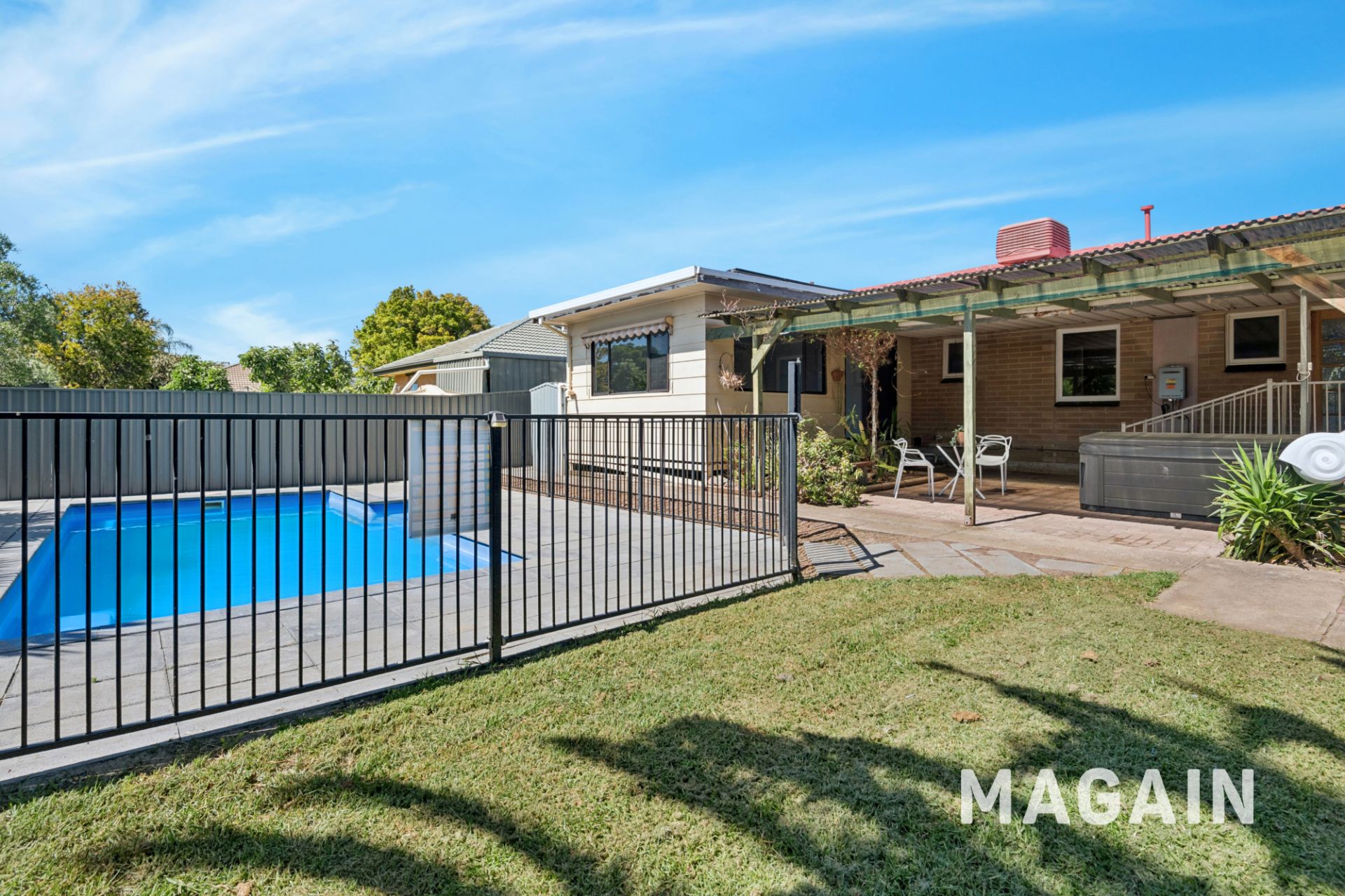 Step outside to a fantastic outdoor entertaining area overlooking the sparkling swimming pool, complete with new fencing and a new pool chlorinator. The backyard also includes a lawn area for kids and pets, a handy garden shed, and undercover parking for two cars.
