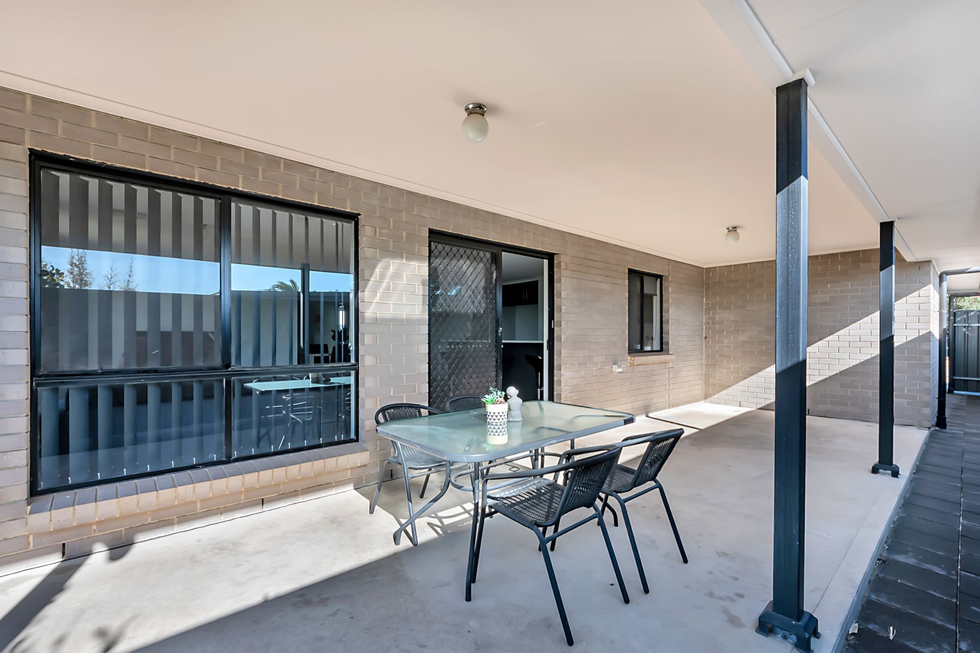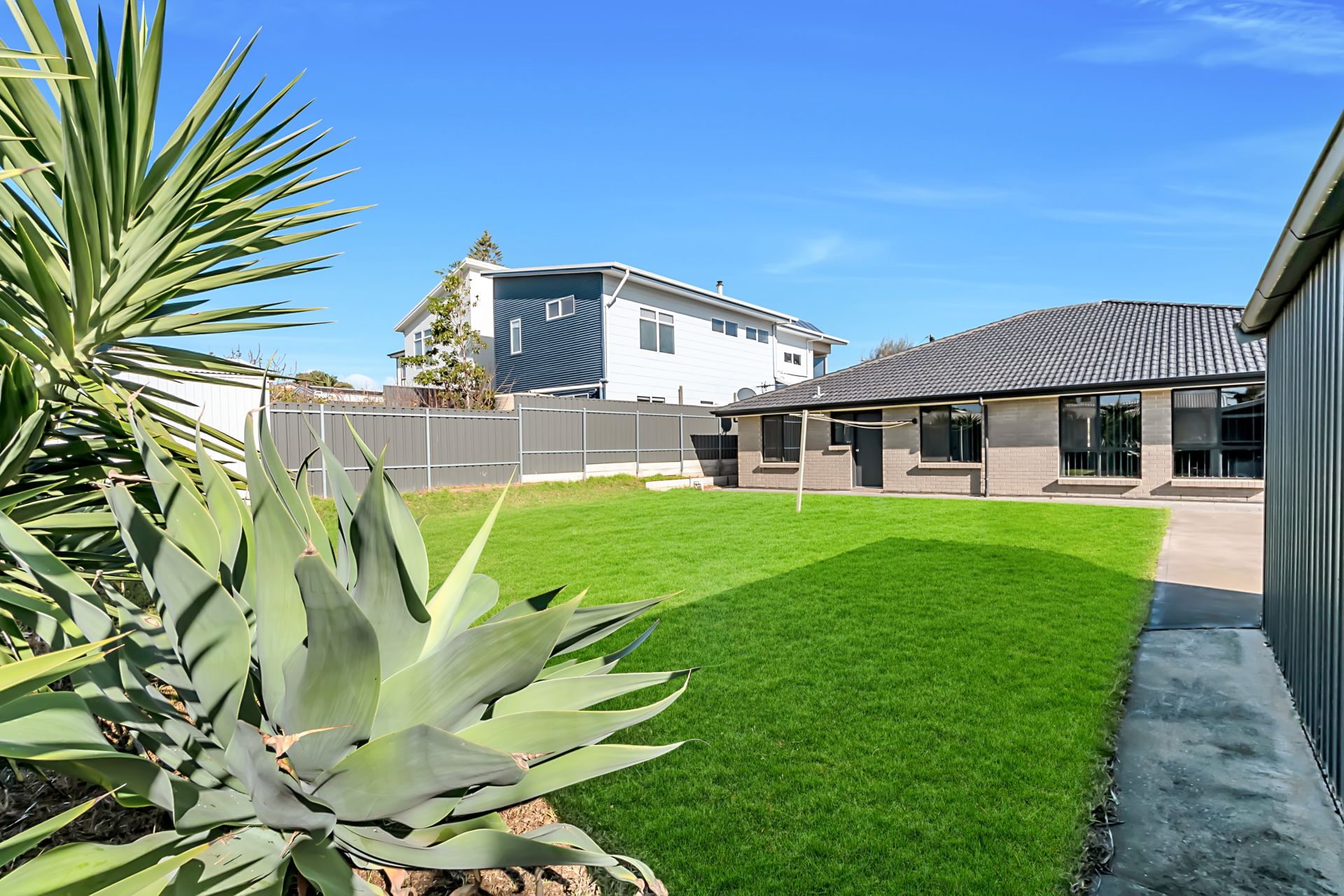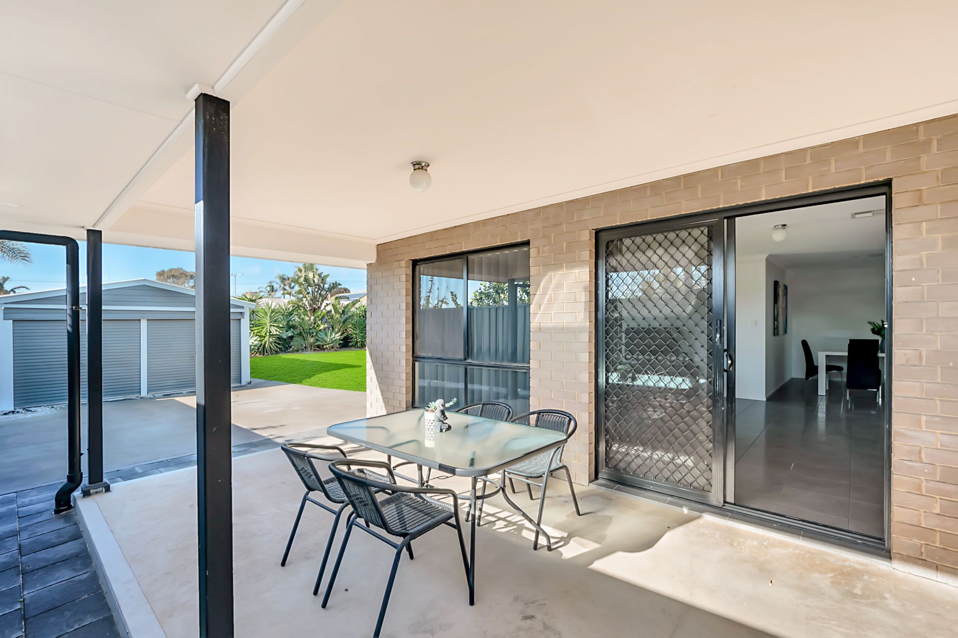 Stepping outside, the main courtyard space is perfect for entertaining with the proximity to the open plan living it makes for a smooth transition from inside to outside and offers enough room for an outdoor setting. A large double garage shed offers plenty of storage for all the toys and tools and a large grassed area provides plenty of space for the kids and family pet to run around and play. Between the grassed area out the back, the park just across the road and the beach a short stroll away you can expect to see the kids home for dinner!