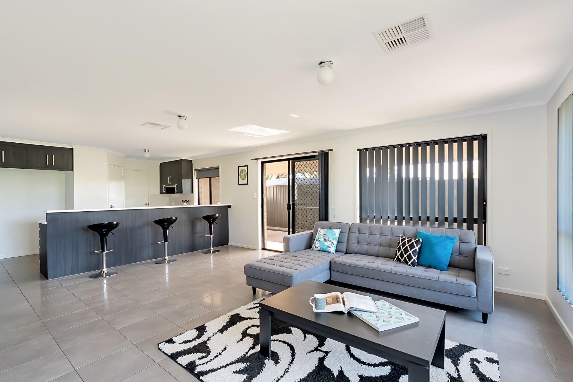 Open plan living is at the heart of the home with a separate lounge offering a private play space for the kids away from the hustle and bustle of the kitchen. The communal areas of the home are beautifully tiled whilst the sleeping quarters are nicely carpeted. The kitchen offers plenty of bench, cupboard and fridge space and a gas cooktop. With ducted reverse cycle air conditioning throughout you will have year-round comfort.
