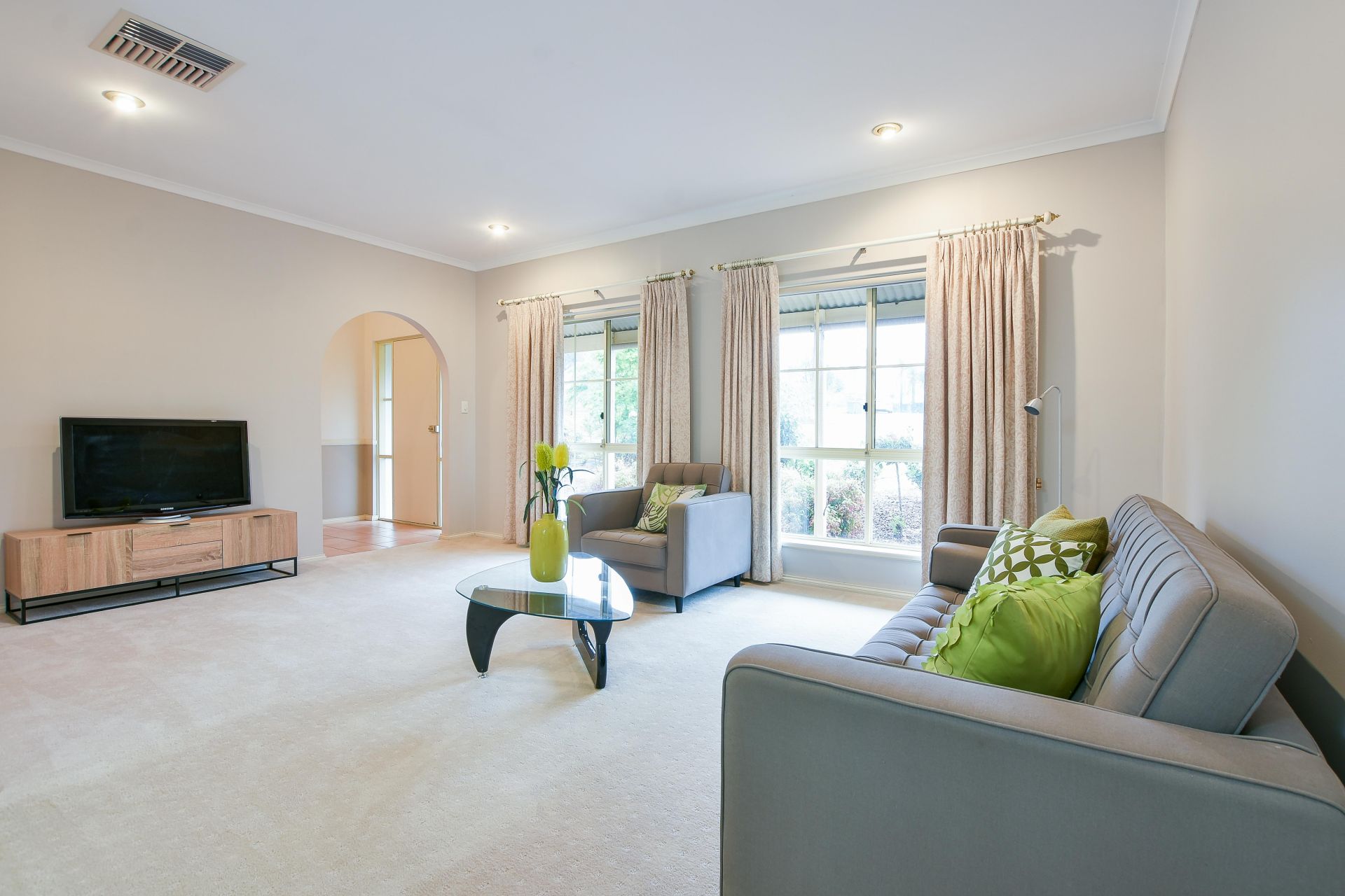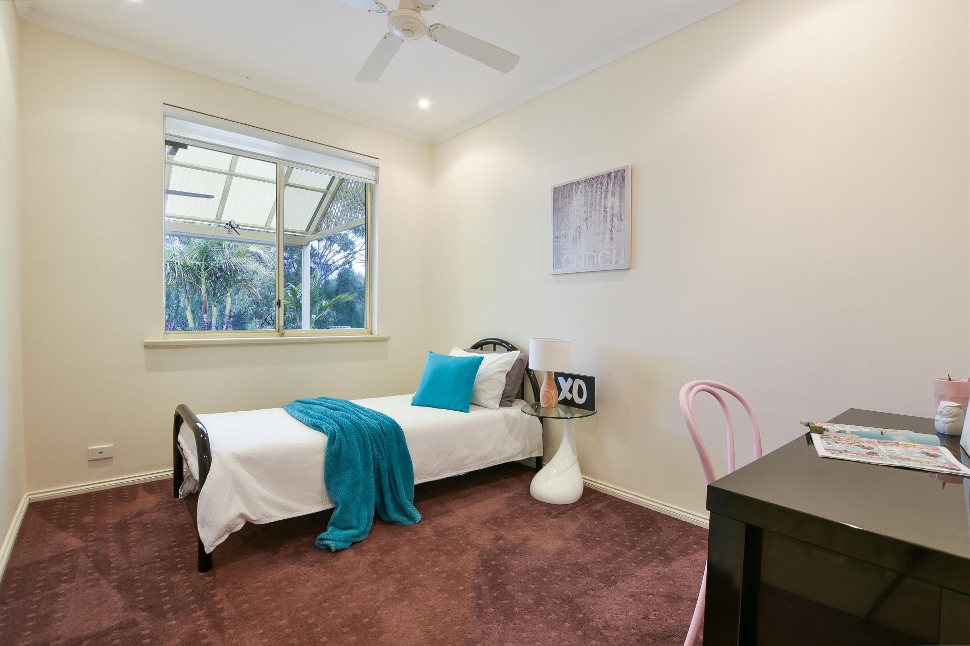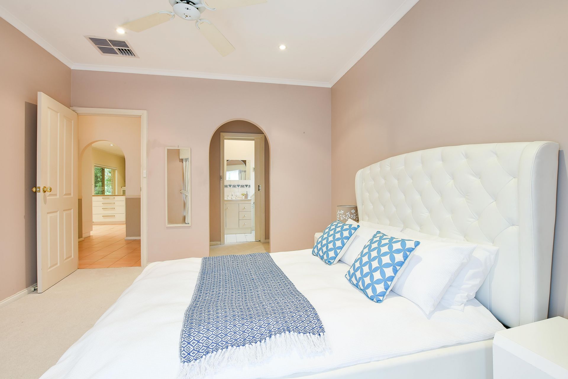 Moving inside, the master bedroom is a great size with bay window allowing loads of natural light to flood in, complete with a ceiling fan for comfort on those warm summer nights. Walk through his and her robe provides plenty of hanging space and leads into the private ensuite. Bedroom two and three are a good size, bedroom two with built in robe and bedroom three big enough for a standalone wardrobe. The main bathroom offers a separate toilet for the busy household.