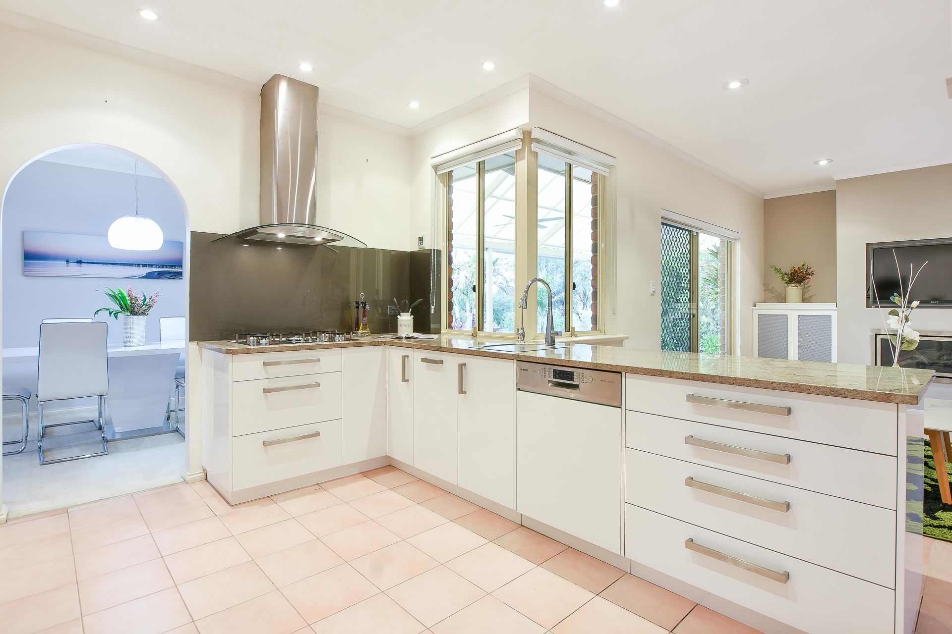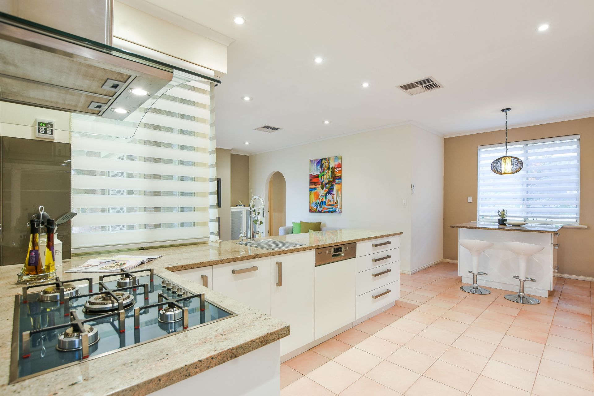 At the heart of the home is a stunning kitchen, the chef of the home will be excited to use these smeg appliances and the whole family can gather for a meal over the large island bench. Cupboard and bench space are ample, you won't know how to fill all these cupboards! The open plan living has a gas heater as the centrepiece, you will be drawn to this space to unwind after a long day. Away from the hustle and bustle of the kitchen is a formal lounge and formal dining, a great place for the kids to play after school while dinner is being prepared and a private place for the parents once the kids have gone to bed.