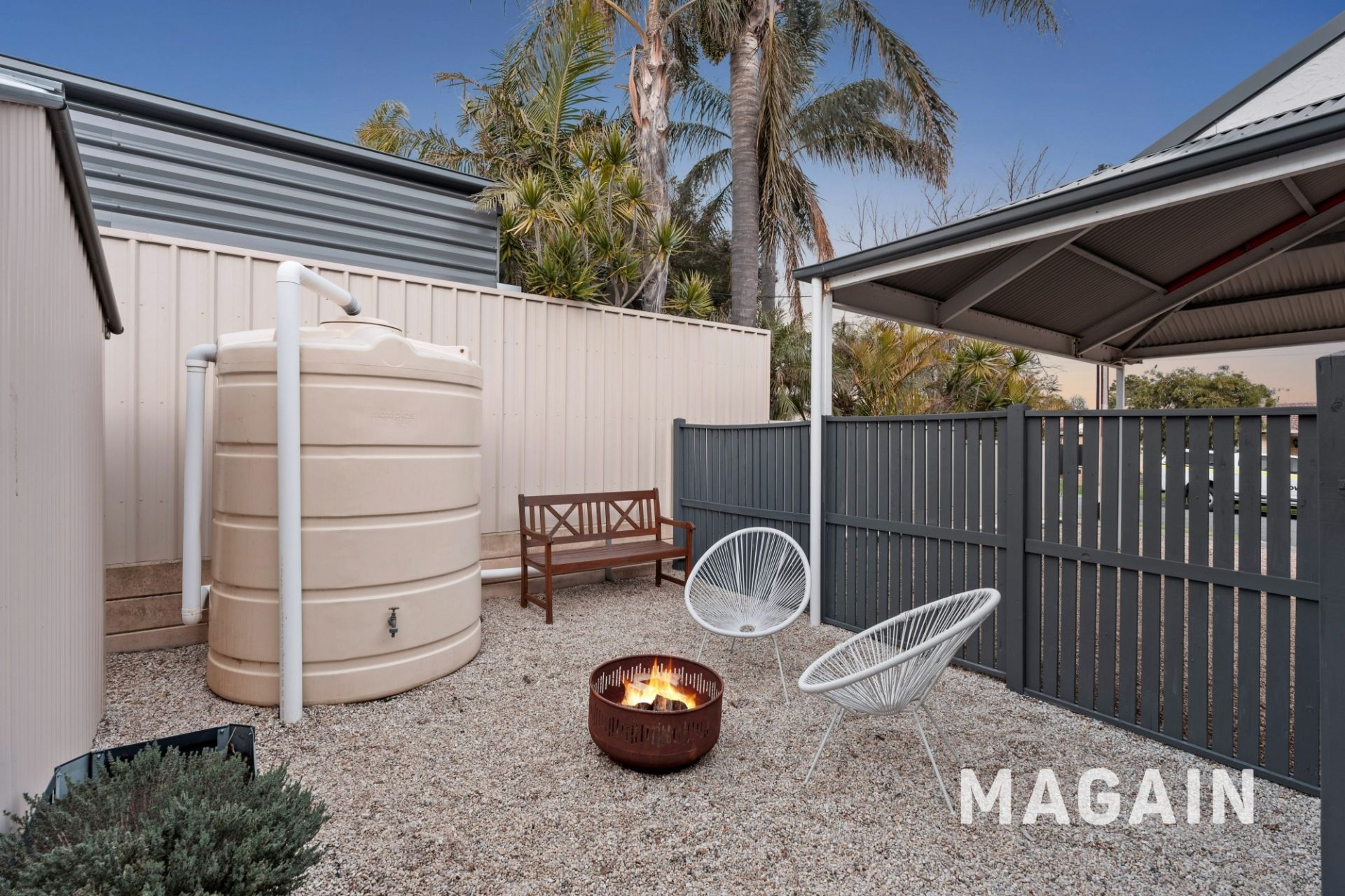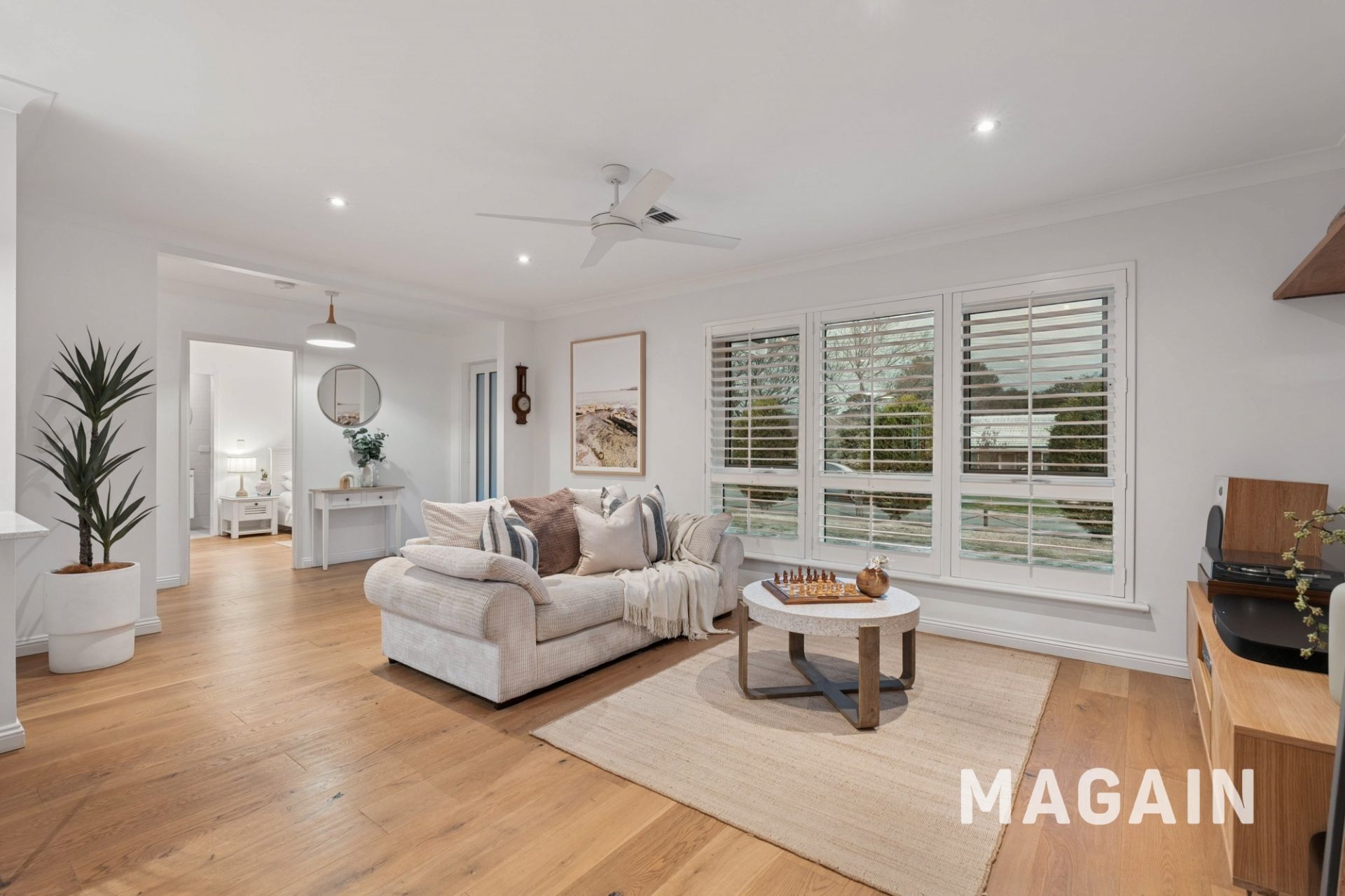 Year-round comfort is assured with a classy gas heater in the lounge, zoned ducted reverse-cycle heating and cooling, UPVC double-glazed windows, plantation shutters, and a near-new solar panel system