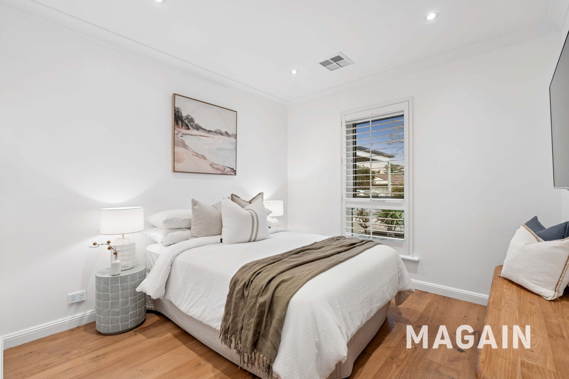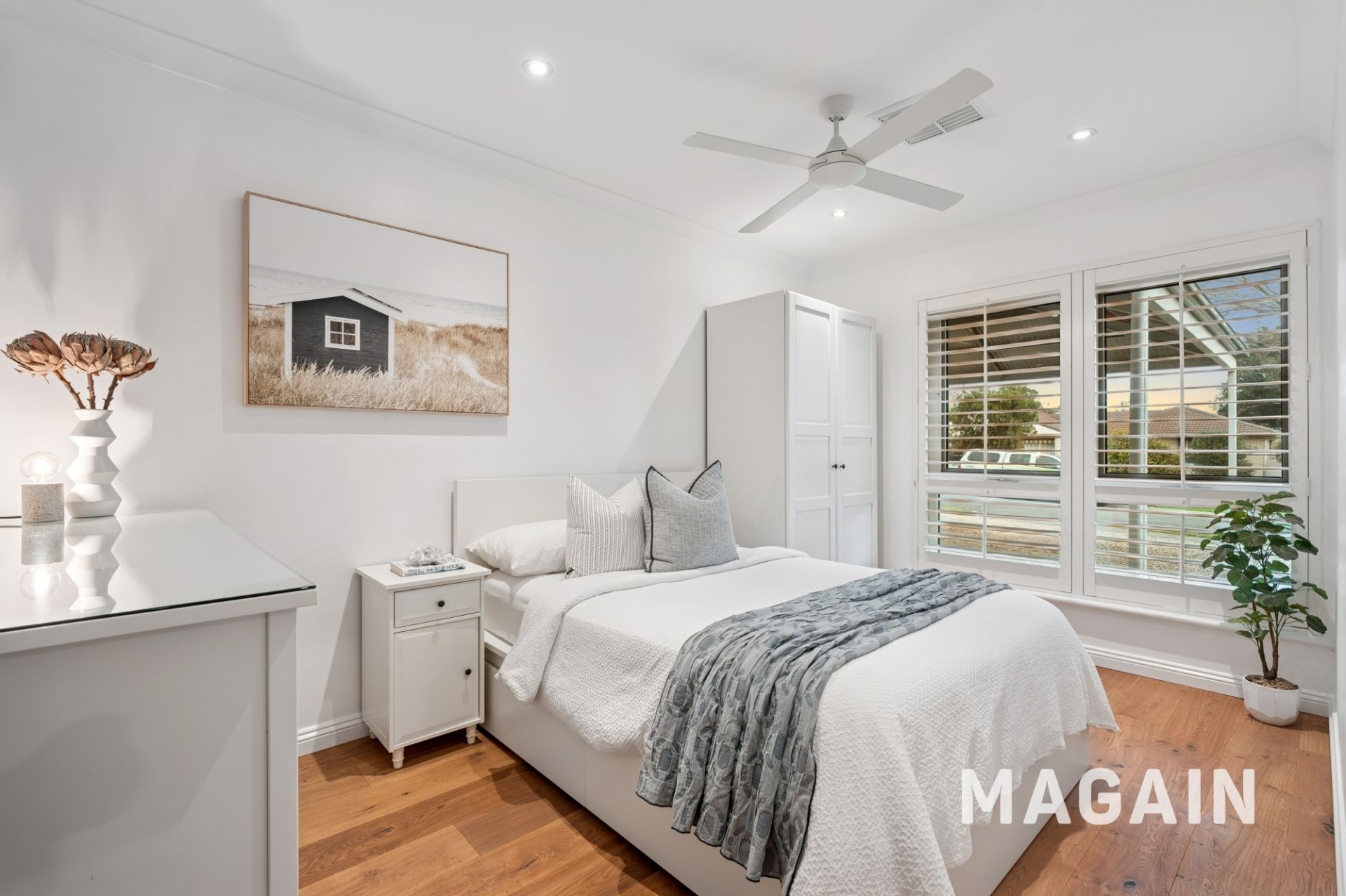 The main bedroom at the front of the home features a large built-in robe, ceiling fan, and a modern ensuite. Three additional bedrooms are serviced by an updated central bathroom, separate toilet, and a well-appointed laundry with rear access. This wing of the home can be conveniently closed off, offering privacy for family or guests alike.
