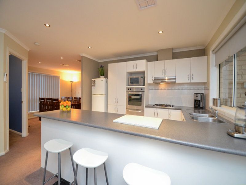 Multiple living areas include formal and informal living, dining and family rooms. At the hub of the home the delightful kitchen includes stainless steel appliances, gas cooktop and dishwasher. Ducted gas heating and ducted evaporative cooling are a feature throughout.