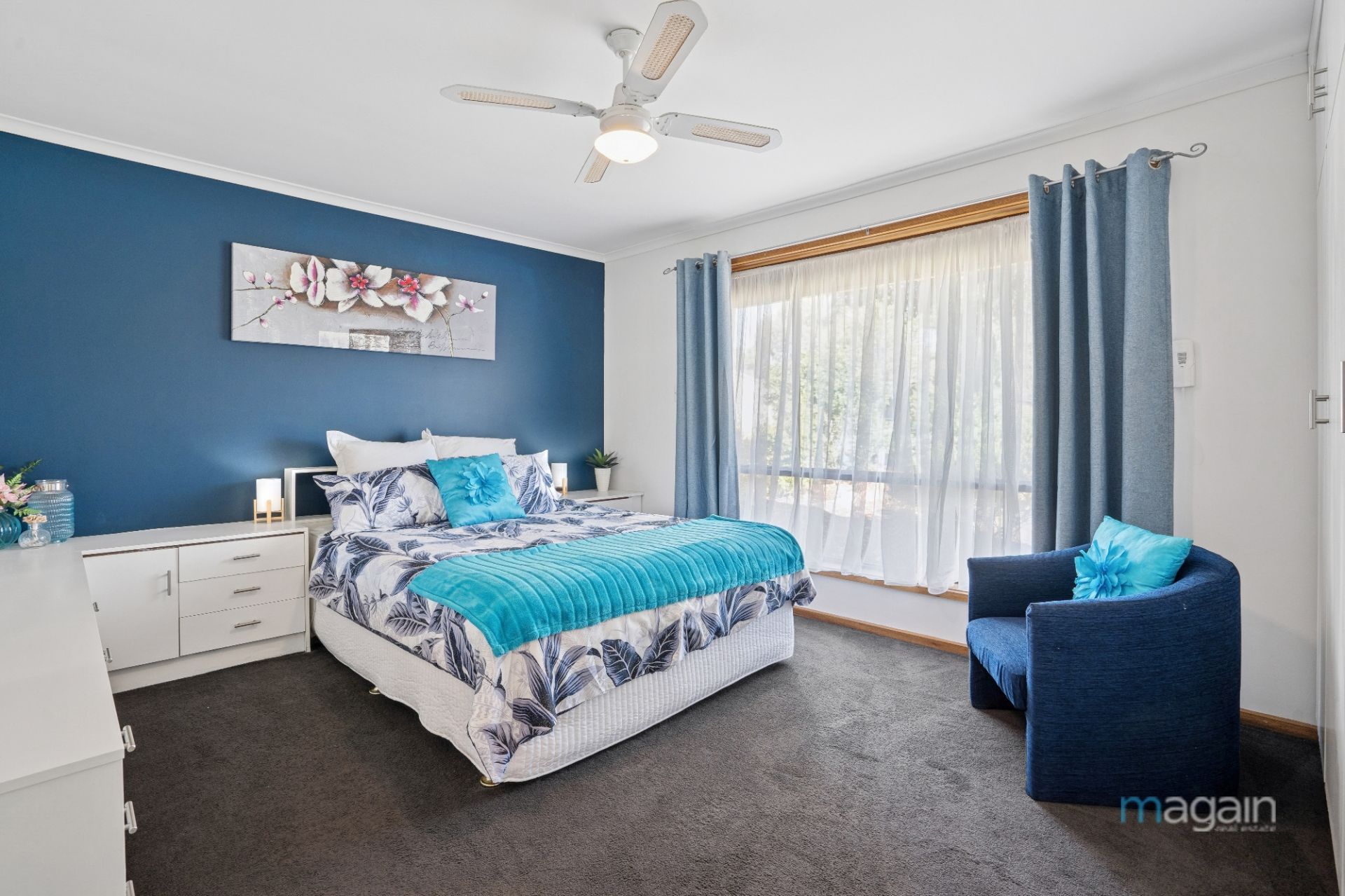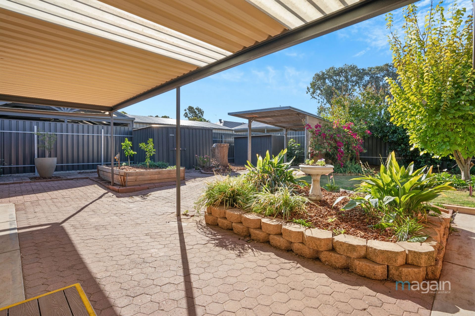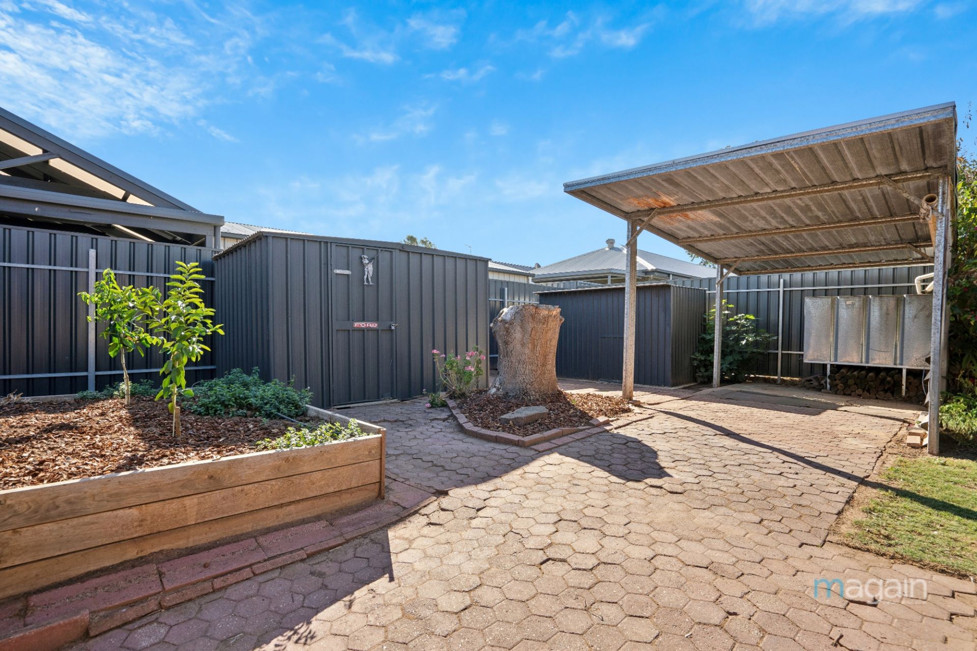 Step outside to discover a large undercover entertaining area that overlooks beautifully established gardens, perfect for hosting family and friends. A second patio at the rear of the property offers an additional space for outdoor dining or quiet relaxation. The property also features two lock-up carports, one with drive-through access to a third undercover area, ideal for storing a boat, trailer, or caravan. Three garden sheds provide ample storage or workshop potential, while two rainwater tanks help maintain the lush gardens. The front yard has also been attractively landscaped, and the wide driveway offers generous off-street parking.