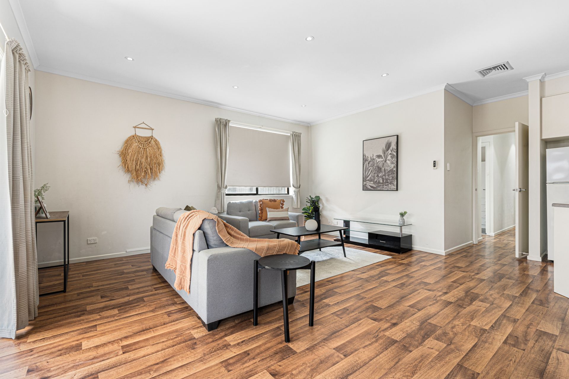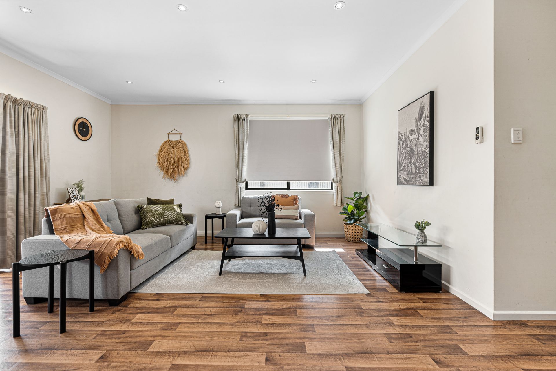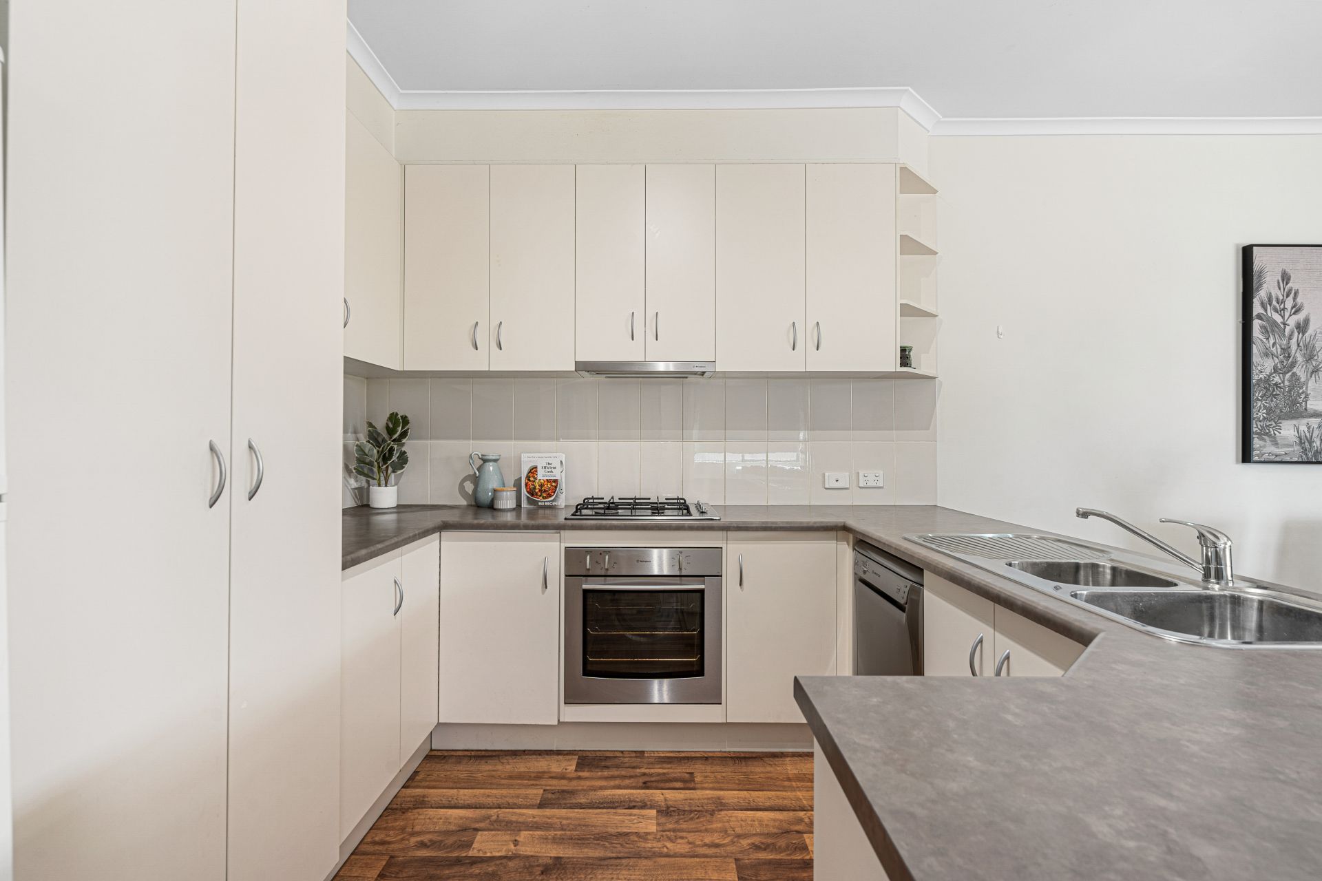Down the hall to the true heart of the home is the spacious open plan living and dining area with a tidy, spacious kitchen complete with gas cooktop, oven and ample amount of bench and cupboard space. The kitchen overlooks the family/dining area and living room that flows seamlessly outside through the panel glass doors to the undercover entertainment area.