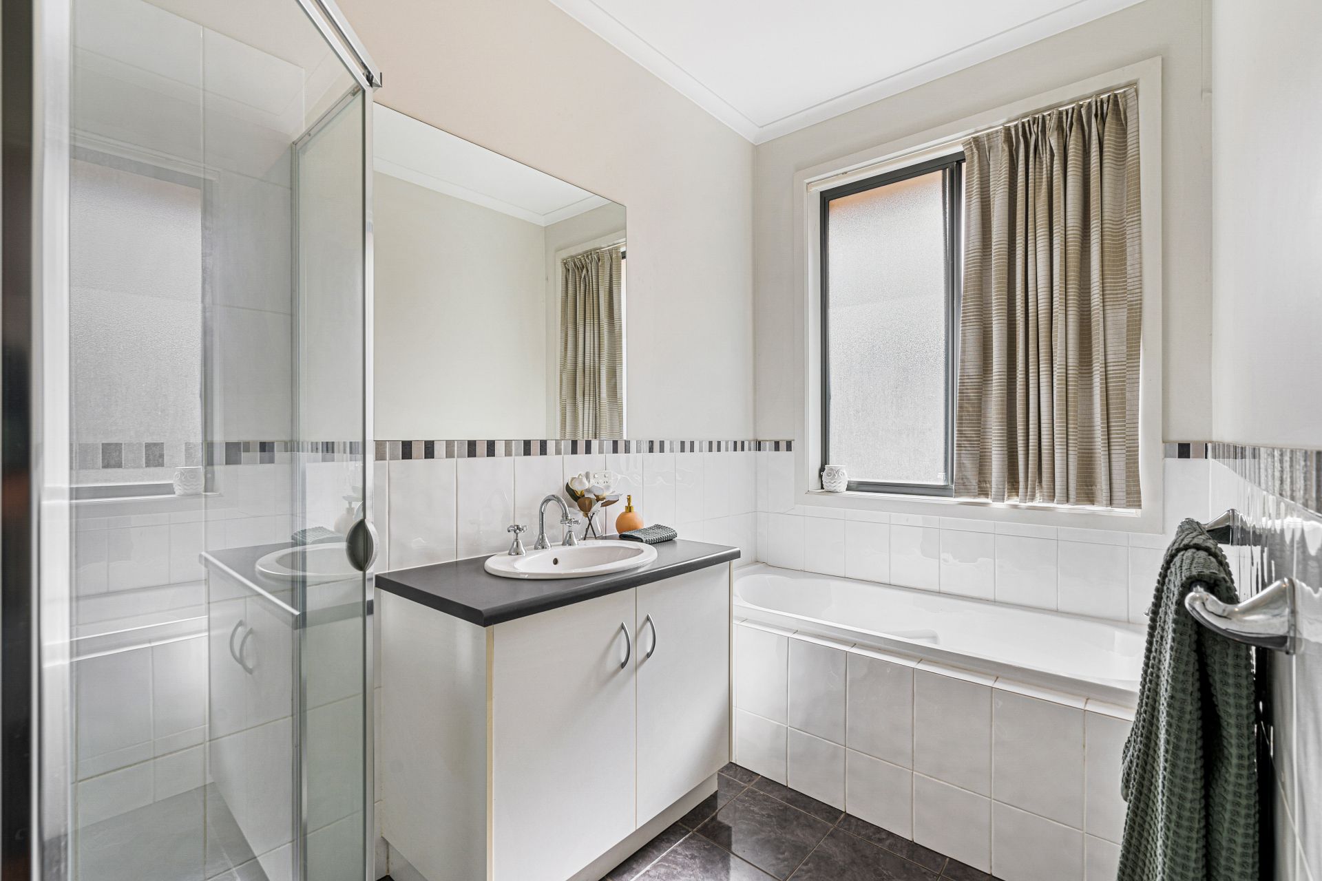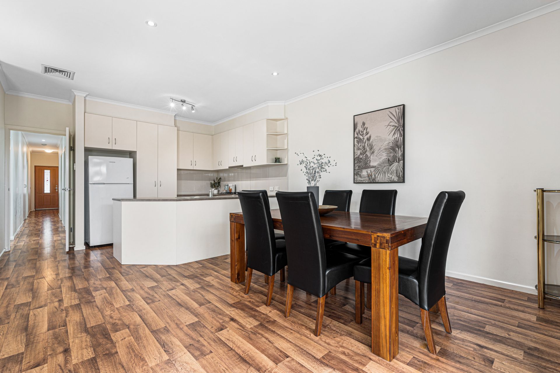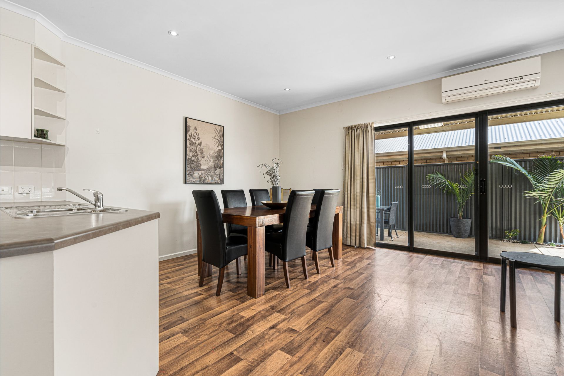 Down the hall to the true heart of the home is the spacious open plan living and dining area with a tidy, spacious kitchen complete with gas cooktop, oven and ample amount of bench and cupboard space. The kitchen overlooks the family/dining area and living room that flows seamlessly outside through the panel glass doors to the undercover entertainment area.