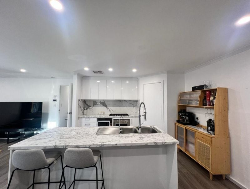 - Modern Kitchen with Island Bench and Chrome spring Mixer Tap