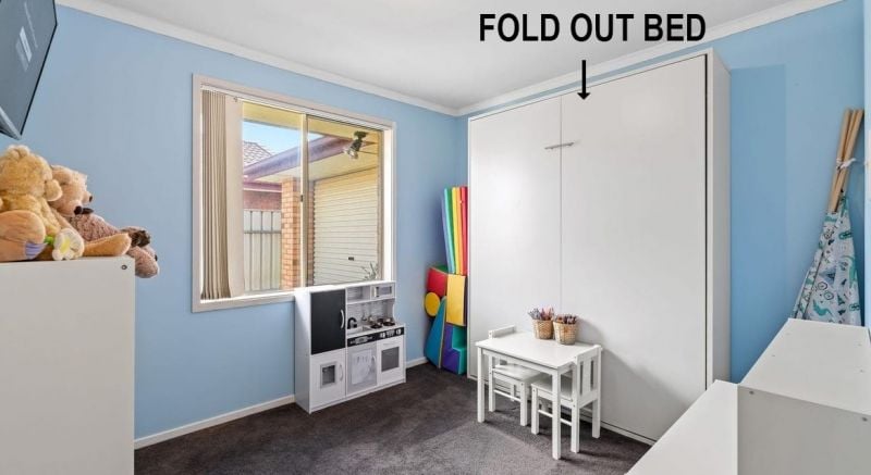 This beautiful home features 4 spacious bedrooms, or the option of a second living area, creating options for a growing family. The main bedroom features a walk-in robe and an updated ensuite bathroom, The second bedroom is a unique and versatile space, featuring a built-in robe and a built-in "murphy" bed that looks like a cupboard until you pull it down to reveal a comfortable bed. This feature provides a perfect solution for accommodating guests without sacrificing the functionality of the room as a daily living space. With its clever design, this room offers practicality and style, making it a wonderful addition to this already impressive family home.