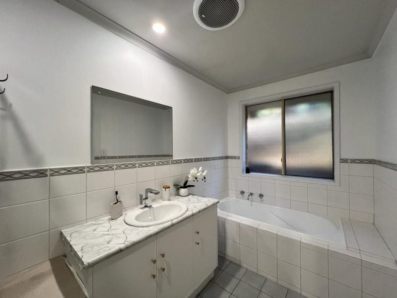 The kitchen is positioned overlooking the living and dining spaces, featuring updated appliances including gas stove top and electric oven, with plenty of bench space, this kitchen is ideal for meal preparation and entertaining guests. The kitchen also features a good-sized pantry and ample cupboard space, providing storage options for all your cooking essentials, it is the perfect hub for hosting family and friends.