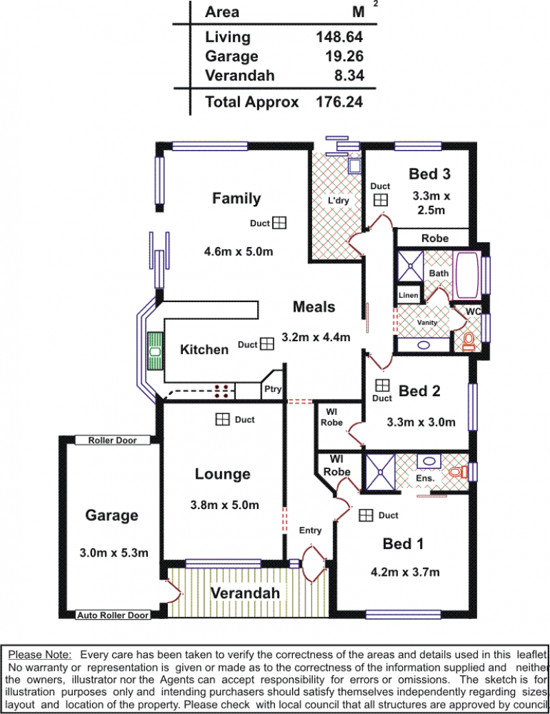 At the front of the home is the formal lounge or could be home theatre room with floating floors, and the main bedroom complete with walk in robe and ensuite. The other two bedrooms, one with a walk in robe and the third with a large built in robe are fully carpeted and access is from the family room area.