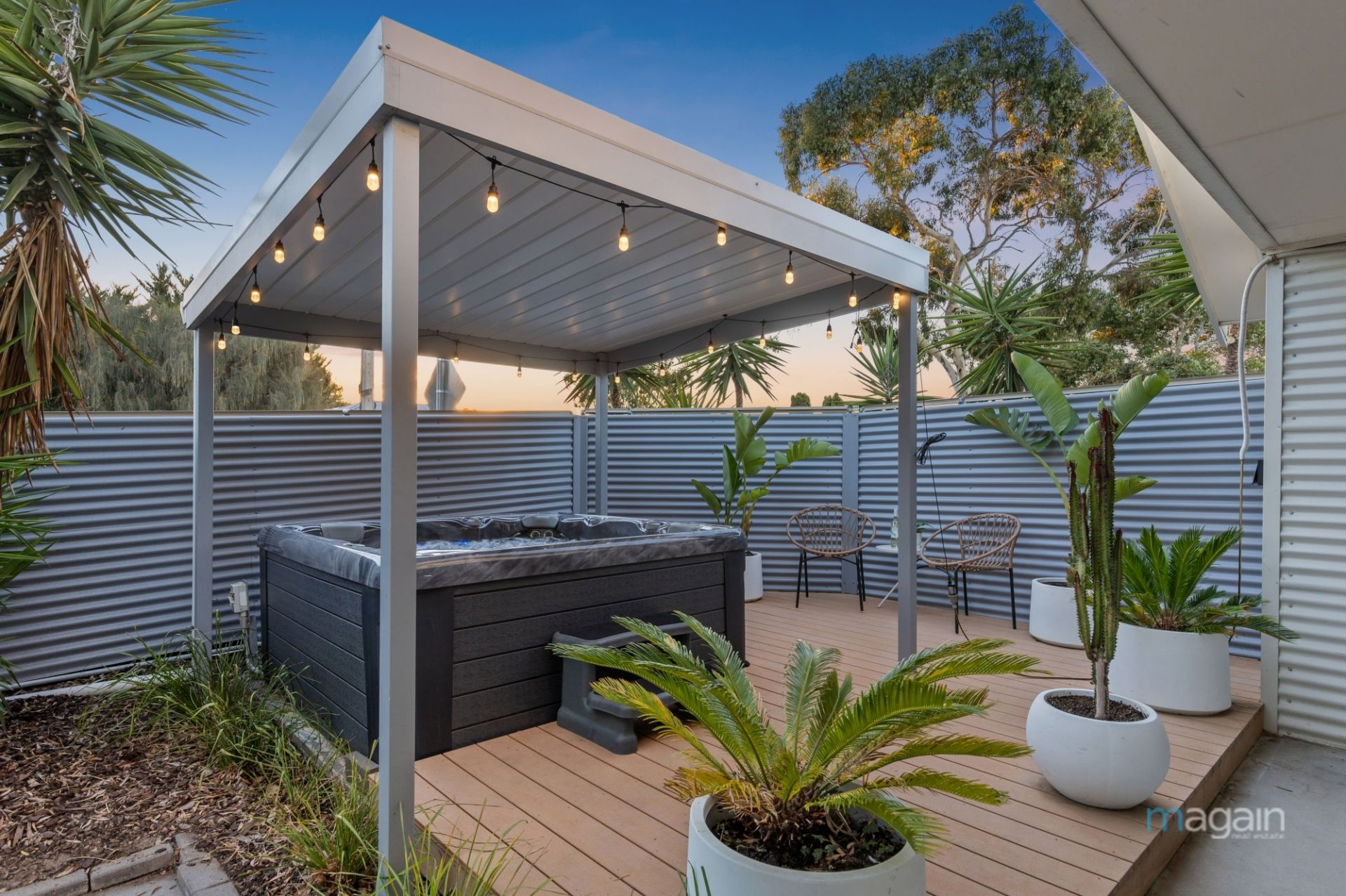 Outside, the established gardens are neat and low maintenance, with rear access to a double carport and an adjacent garden shed. A timber decked gazebo area with a spa offers a unique and private space to unwind and relax.
