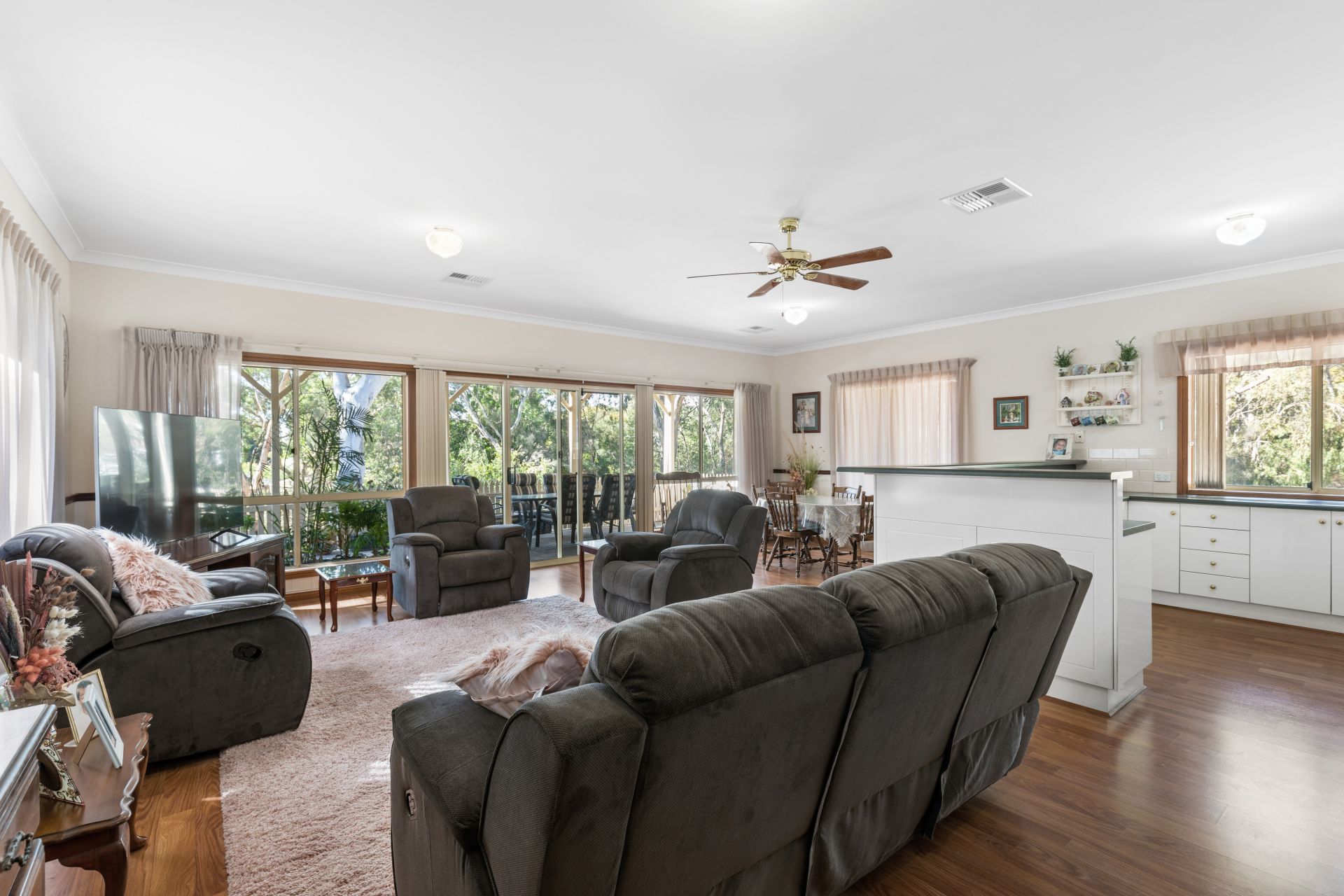 Beautifully maintained with a floorplan of over 200m2 on a 576m2 block, double garage with single garage drive through access for car/boat or second courtyard, ducted reverse cycle A/C, large open plan living and huge second living/formal dining room, outdoor entertaining with amazing views surrounded by nature.