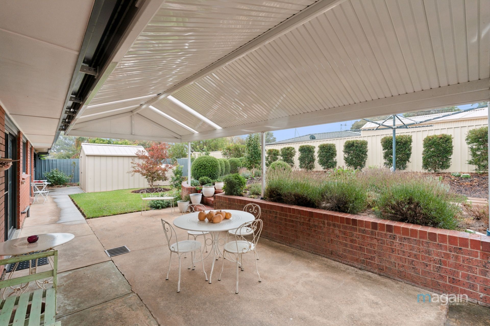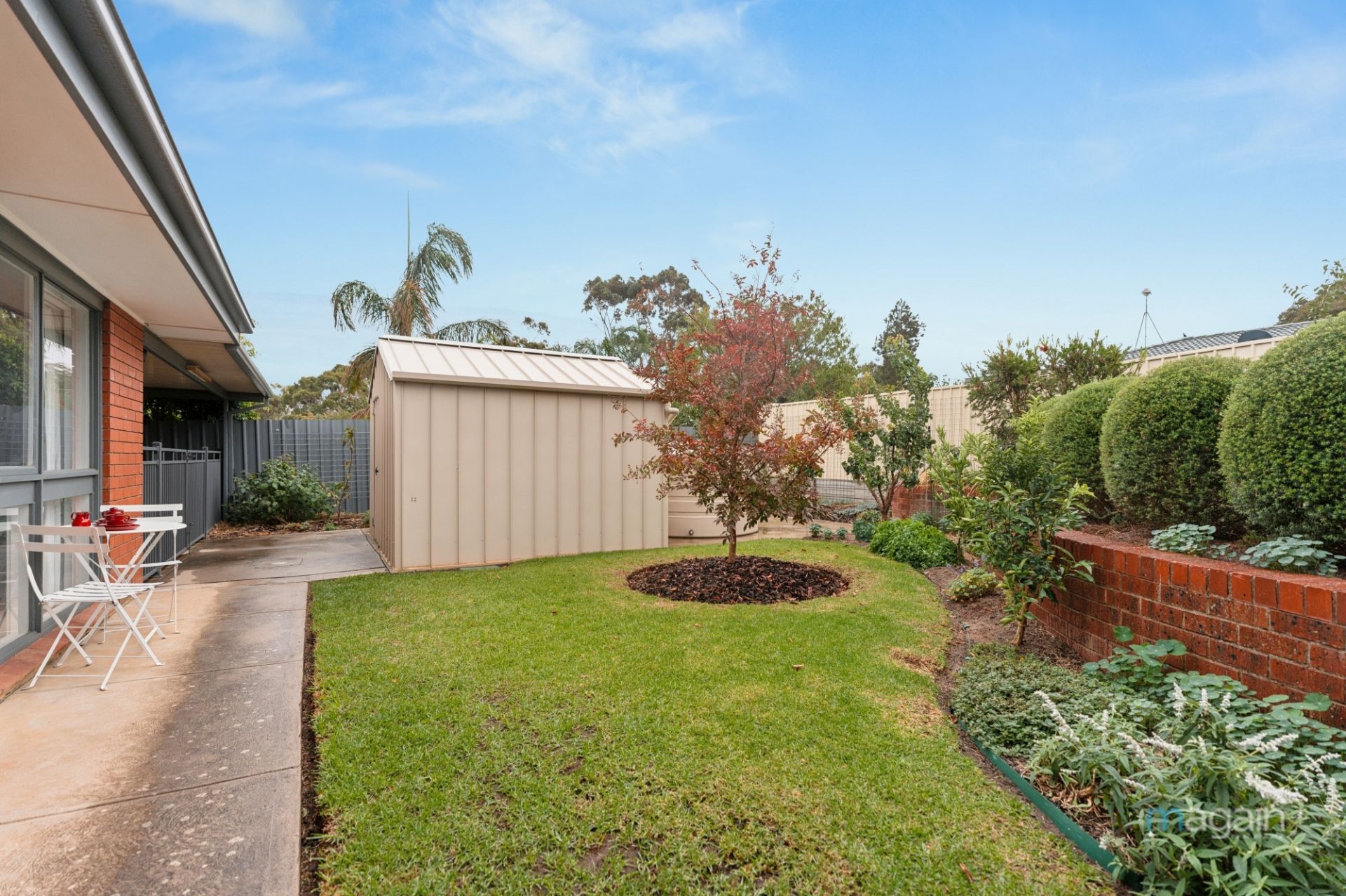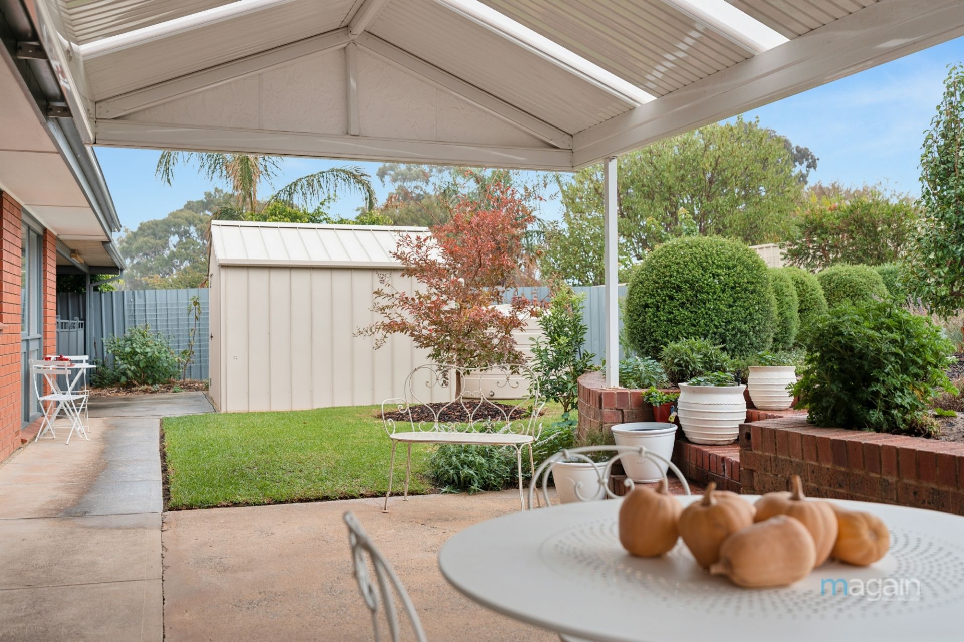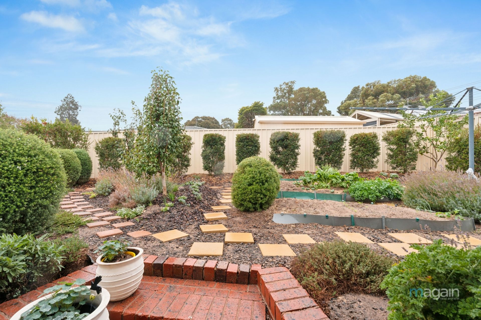 A thriving selection of fruit trees creates your edible oasis, with an impressive lineup including four apple trees, plus apricot, cherry, mandarin, nectarine, orange (two), lemon, cumquat, pear, and plum trees. A dedicated veggie and herb garden produces asparagus, oregano, rosemary, and more, so you can enjoy fresh homegrown ingredients straight from your yard. Two rainwater tanks help maintain this green paradise with ease, and a garden shed provides handy storage for all your tools and gardening supplies.
