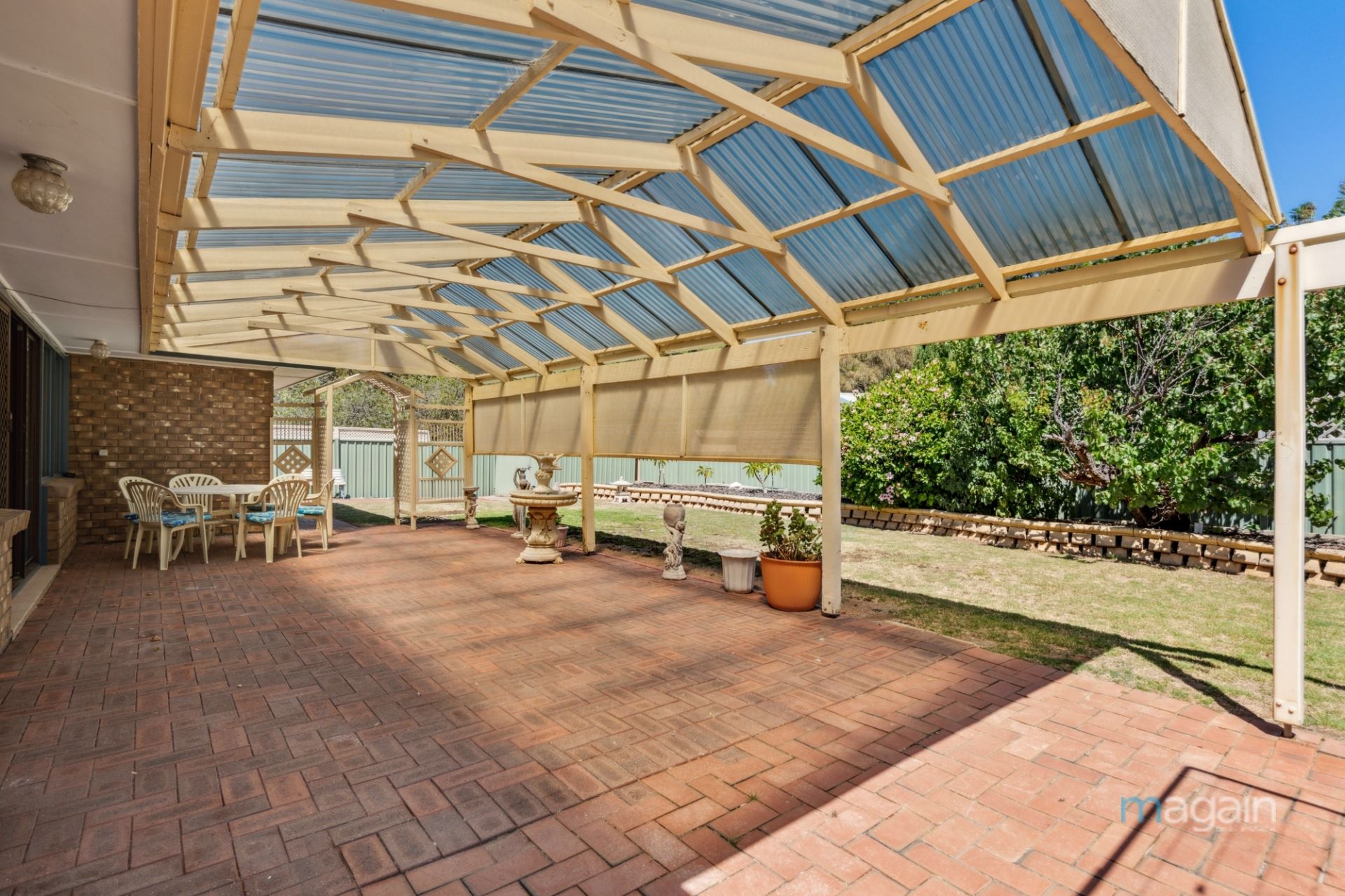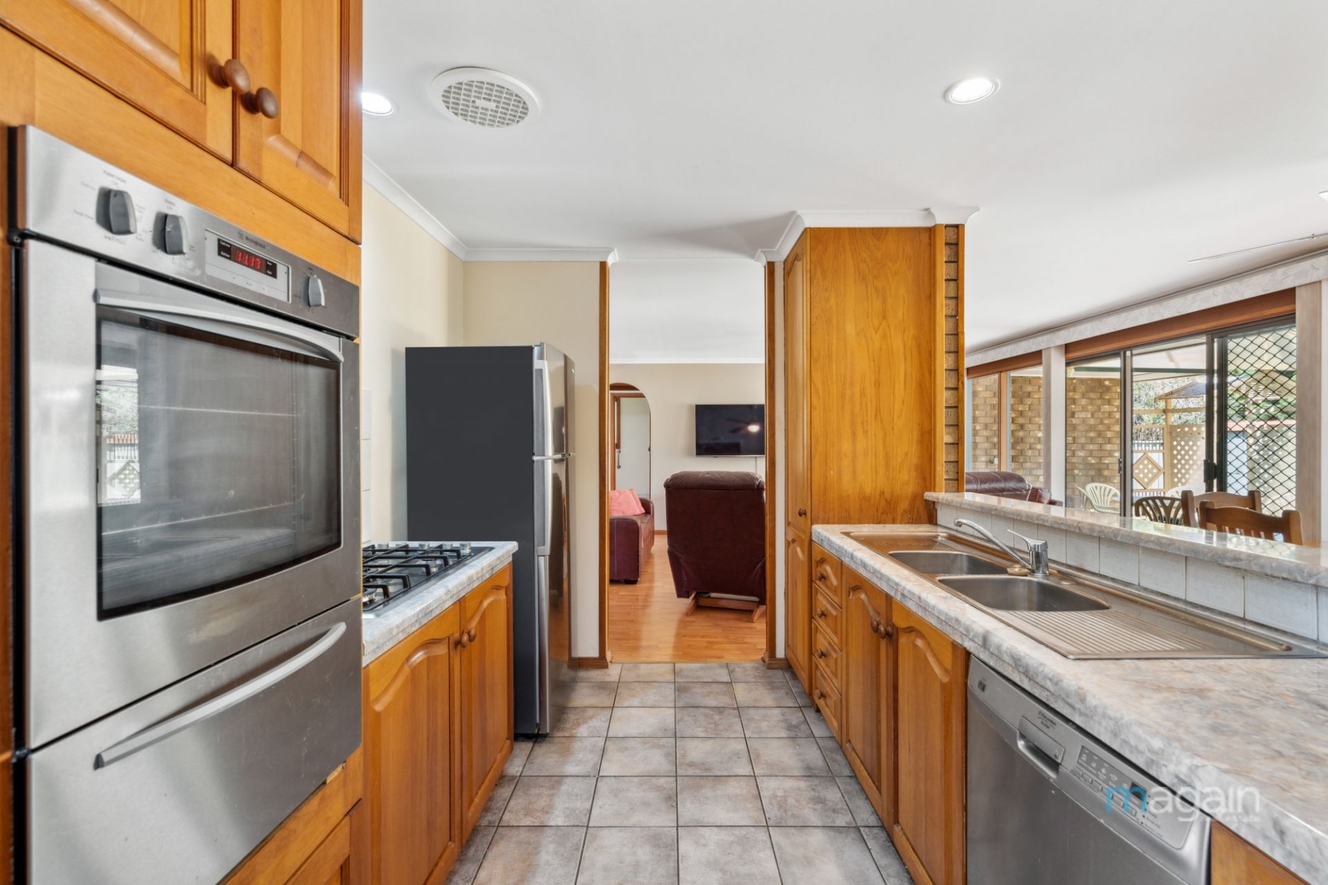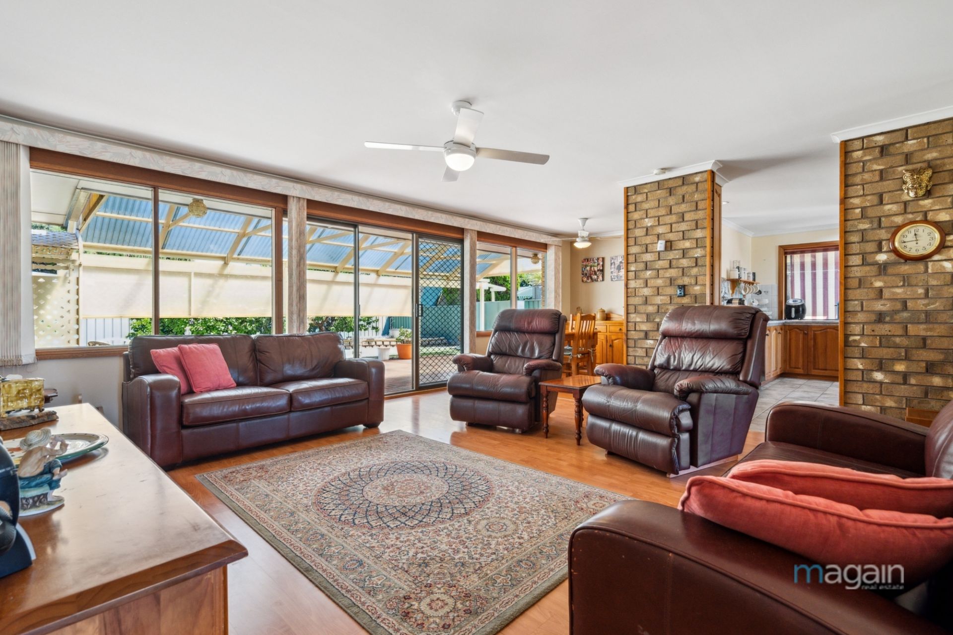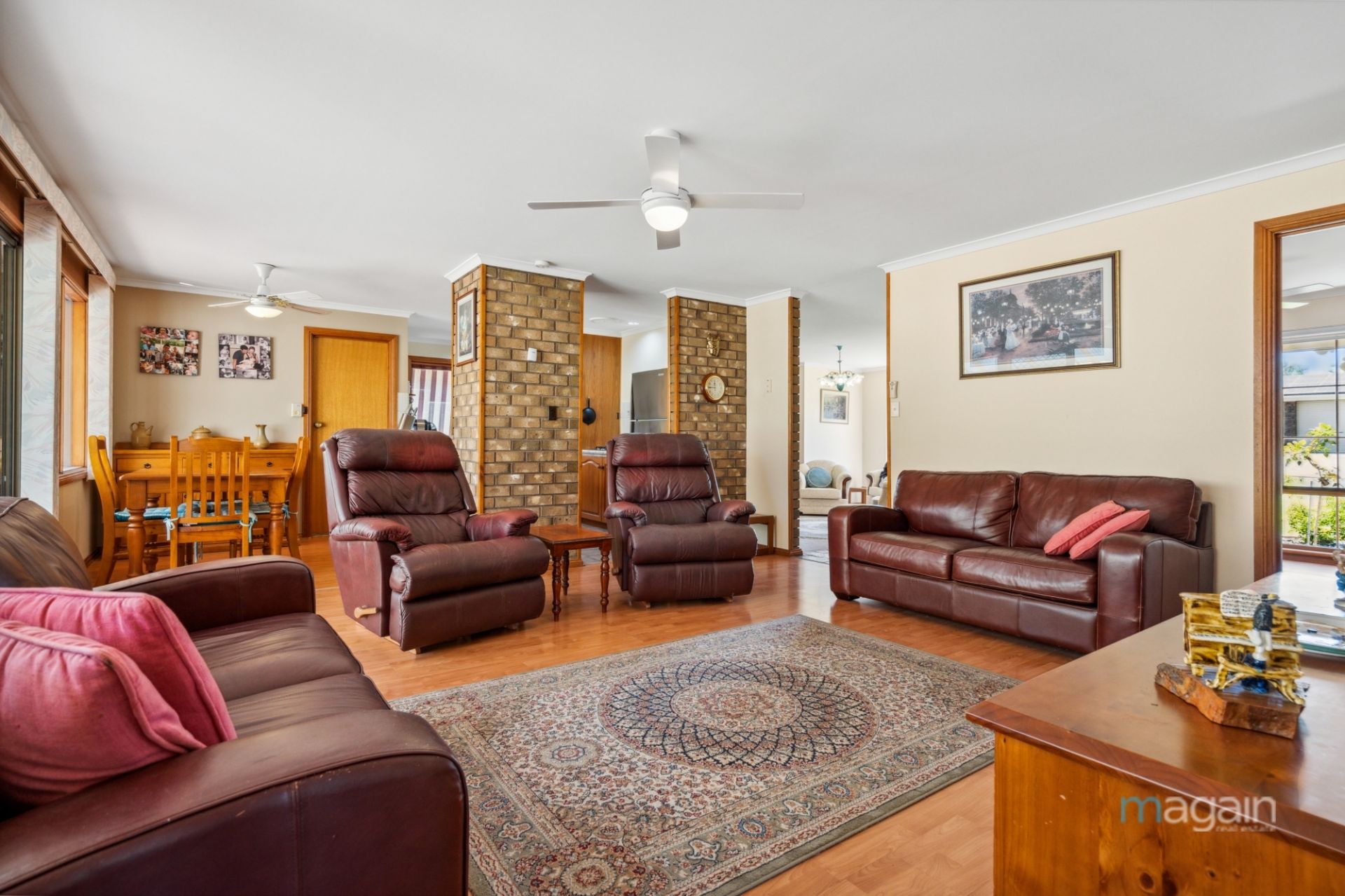 Step outside through glass sliding doors from the central living, and you'll discover an expansive entertaining area that stretches along the back of the home. This space features a pitched roof pergola making it a great place to entertain year round. You'll also find here a large grassed area and a convenient tool shed.