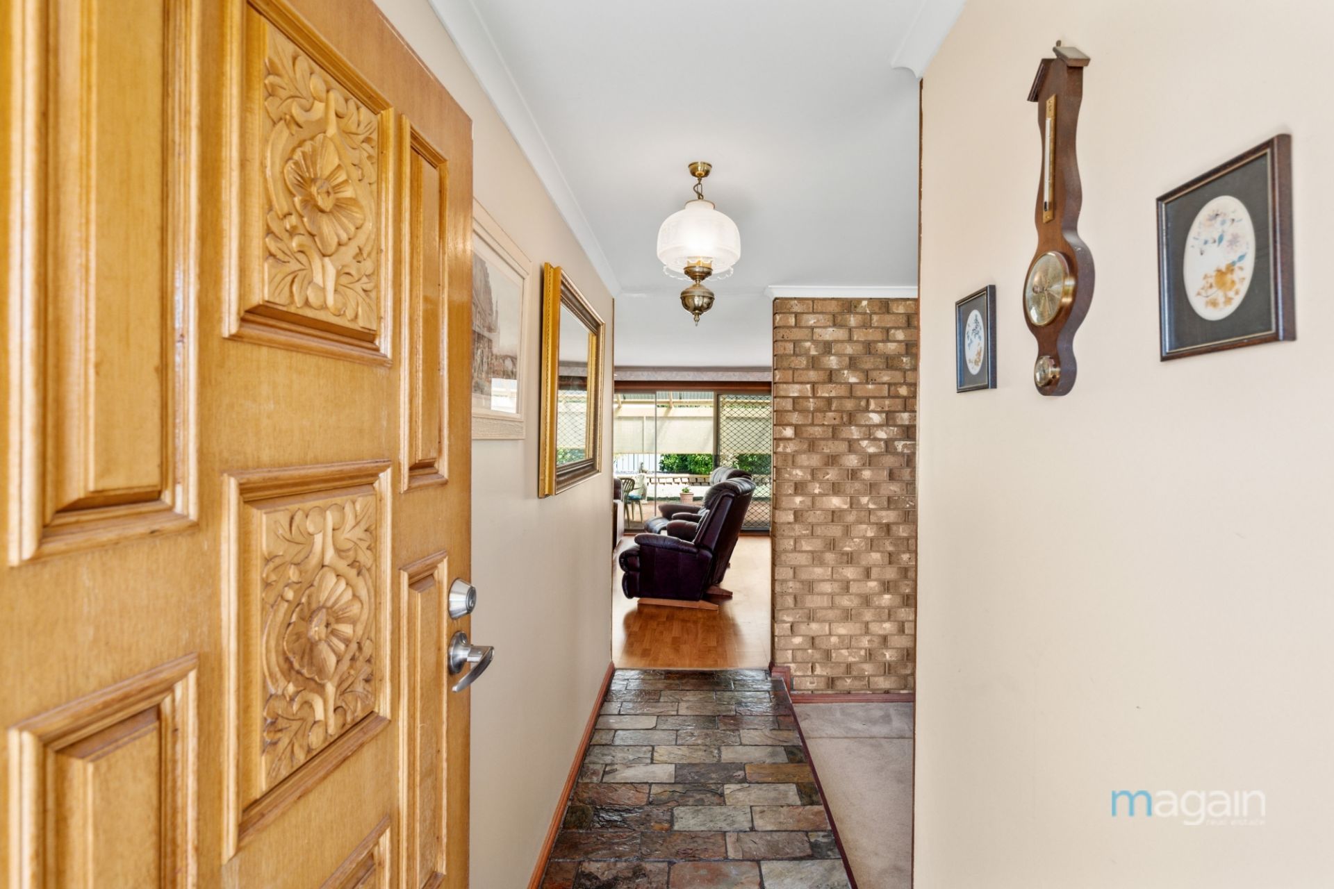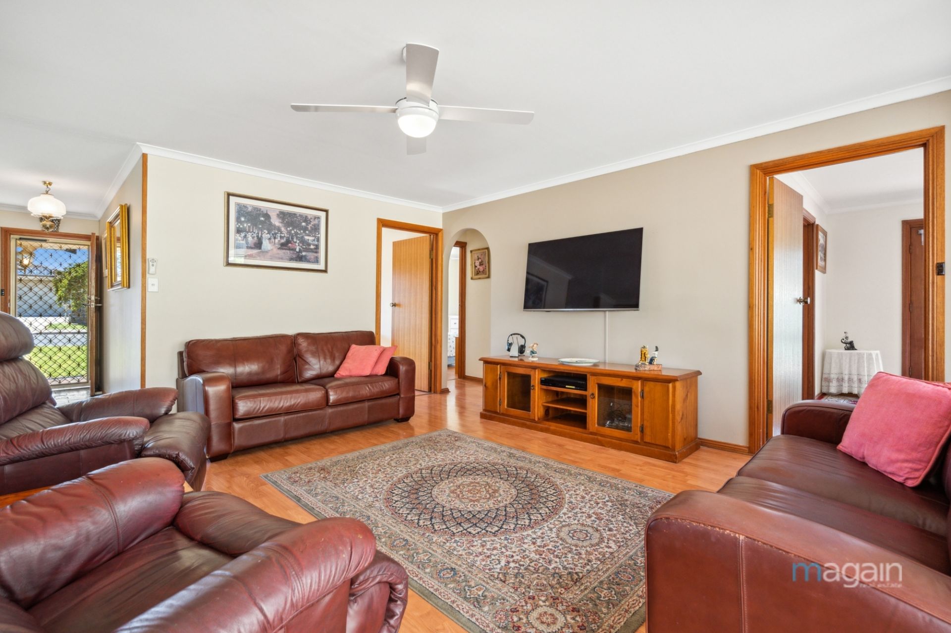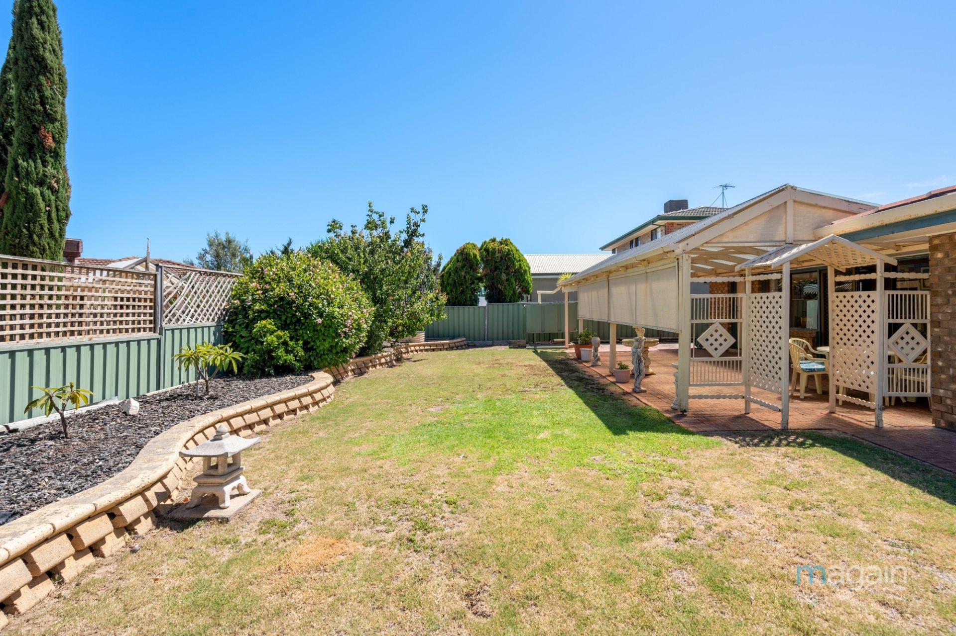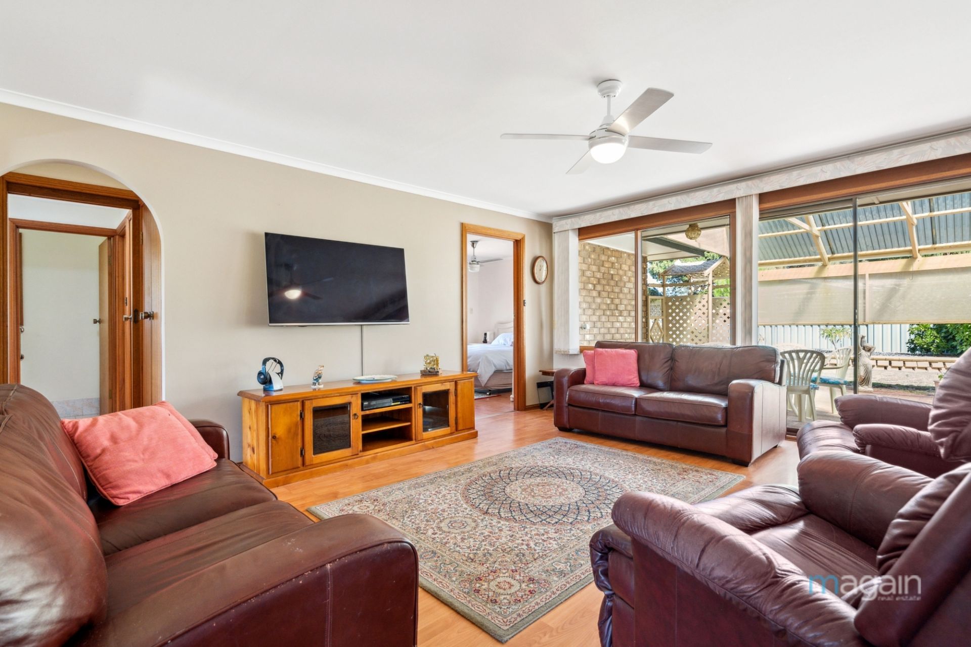 Step outside through glass sliding doors from the central living, and you'll discover an expansive entertaining area that stretches along the back of the home. This space features a pitched roof pergola making it a great place to entertain year round. You'll also find here a large grassed area and a convenient tool shed.