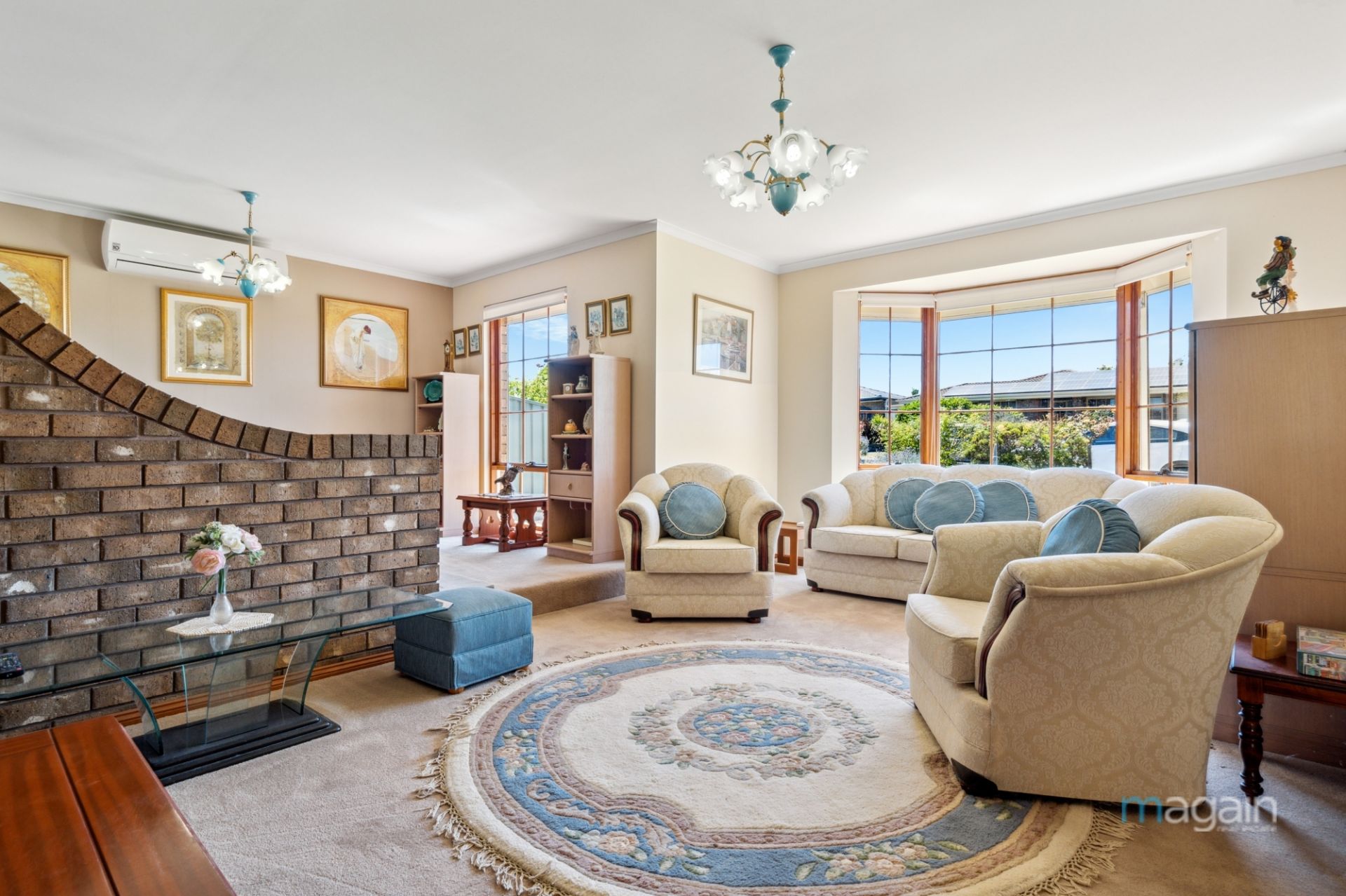 Upon entering, you'll be captivated by the foyer that leads to a sunken formal lounge. Ascend a split level to discover an adjacent formal dining, seamlessly connecting you to the beautifully presented kitchen. This kitchen is a true marvel, boasting quality appliances including a dishwasher and a gas cooktop, plus a breakfast bar that effortlessly connects to a casual meals and family living area.